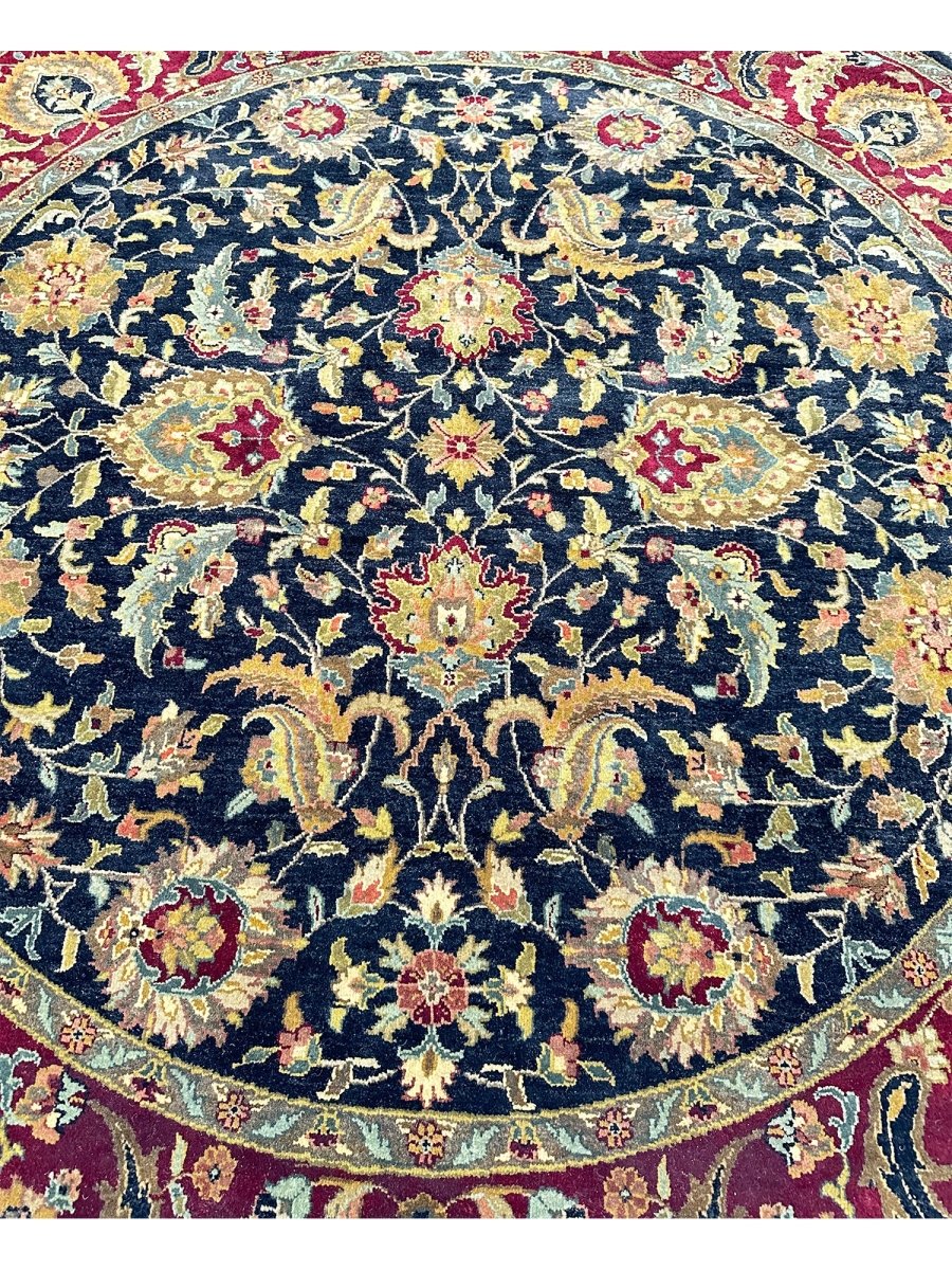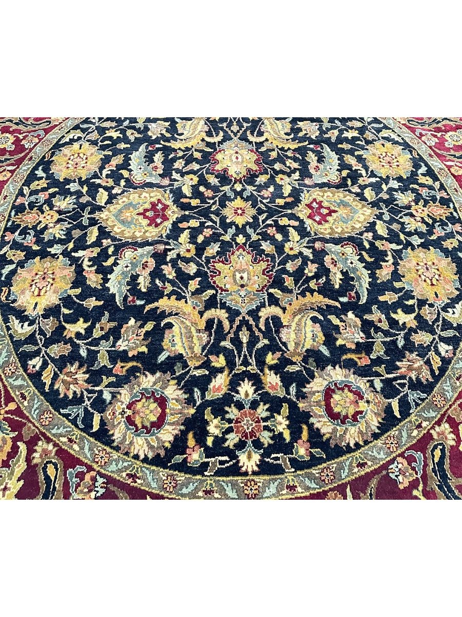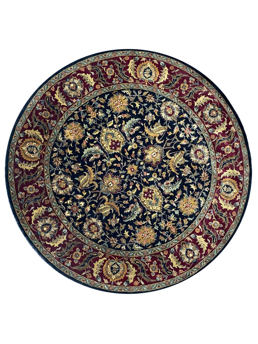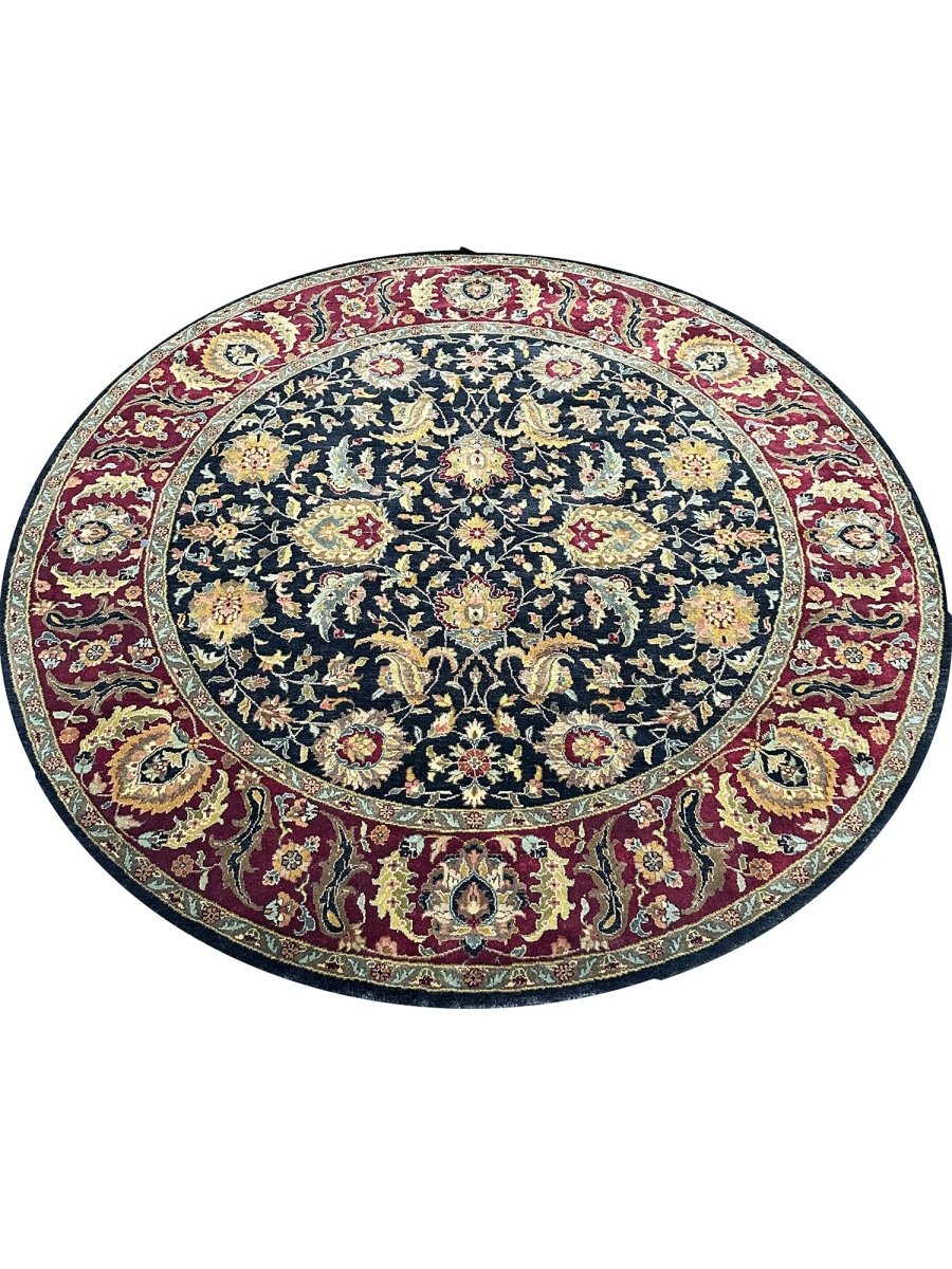Experience the elegance of the 8' Round Persian Style Area Rug, a highlight piece that brings classic sophistication to your home. Hand-knotted from premium wool, this traditional rug features a beautiful floral pattern that adds character to any room. The stunning blend of black, rust, and yellow hues makes it an excellent addition to various decor styles. Not only does it enhance your decor, but it also serves as a striking piece of art. Enjoy free US shipping.