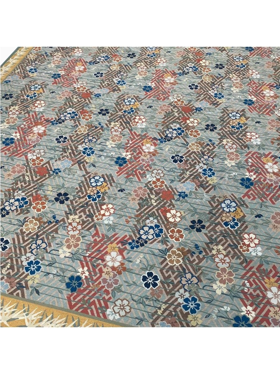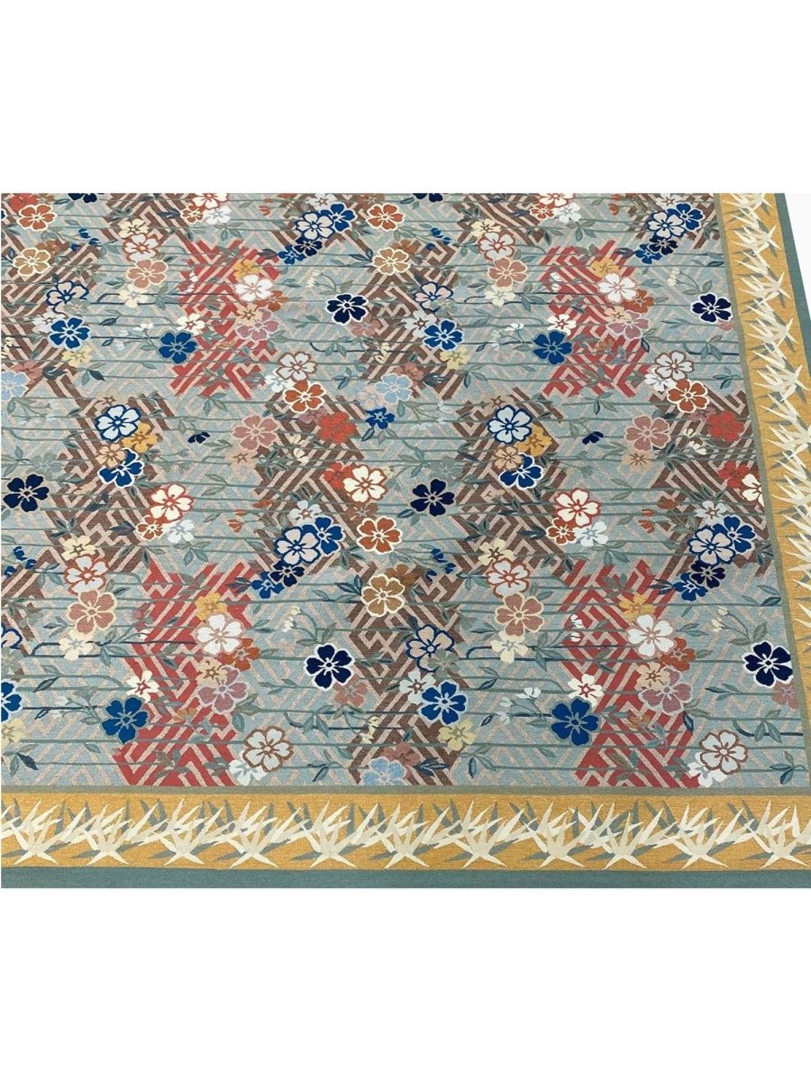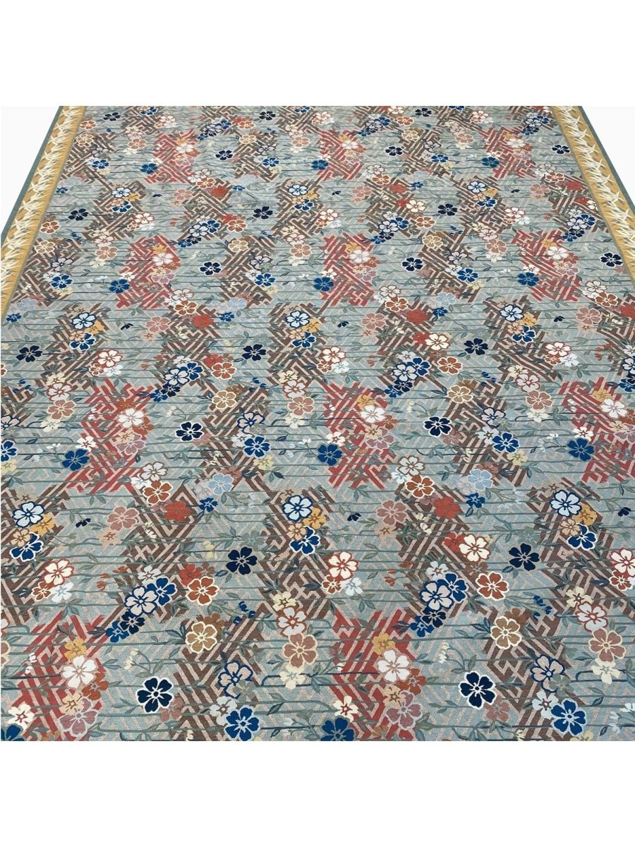 Experience the elegance of the 9x12 Japanese Style Aubusson Rug, a unique piece that brings classic beauty to your home. Hand-knotted from quality wool, this beautiful rug boasts a floral pattern that adds charm to any room. Ideal for grand living rooms, dining rooms, or as a focal point in your entranceway, it makes any space feel cozy and inviting. The stunning combination of blue, red, gold, white, black, green and gray colors make it a great option for any style. This outstanding item not only beautifies your space but also stands as a stunning piece of art. Get free shipping in the US.