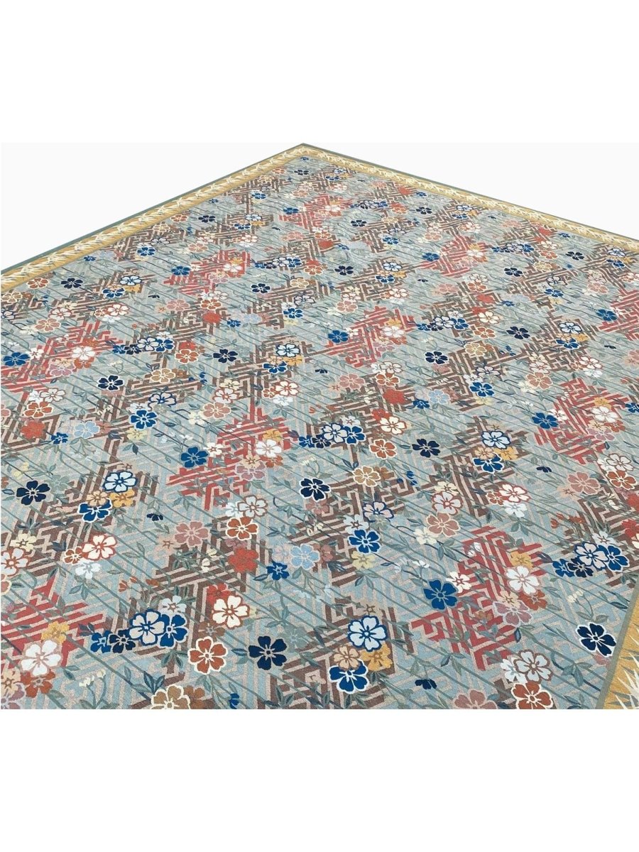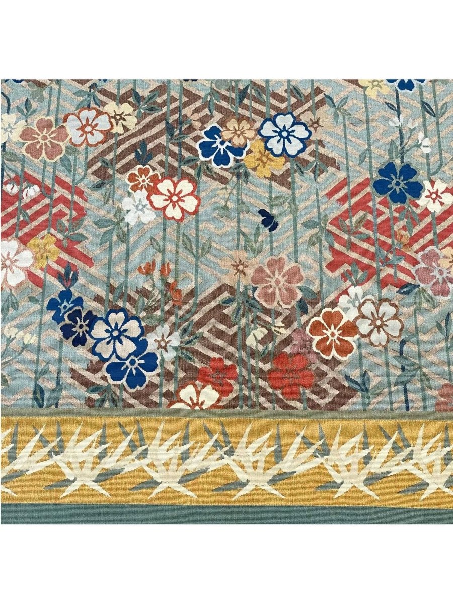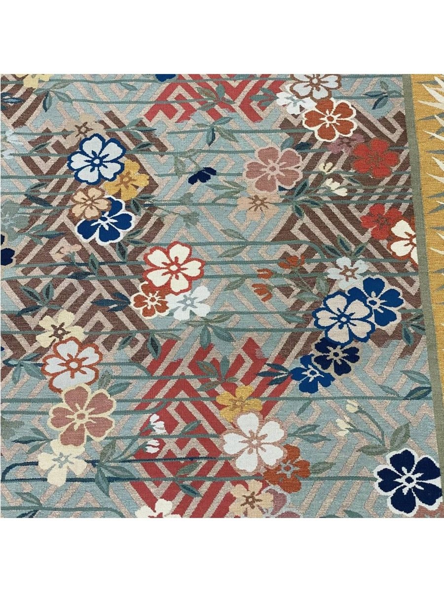 Experience the elegance of the 9x12 Japanese Style Aubusson Rug, a unique piece that brings classic beauty to your home. Hand-knotted from quality wool, this beautiful rug boasts a floral pattern that adds charm to any room. Ideal for grand living rooms, dining rooms, or as a focal point in your entranceway, it makes any space feel cozy and inviting. The stunning combination of blue, red, gold, white, black, green and gray colors make it a great option for any style. This outstanding item not only beautifies your space but also stands as a stunning piece of art. Get free shipping in the US.