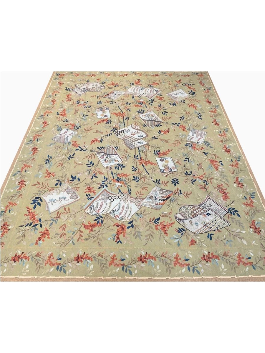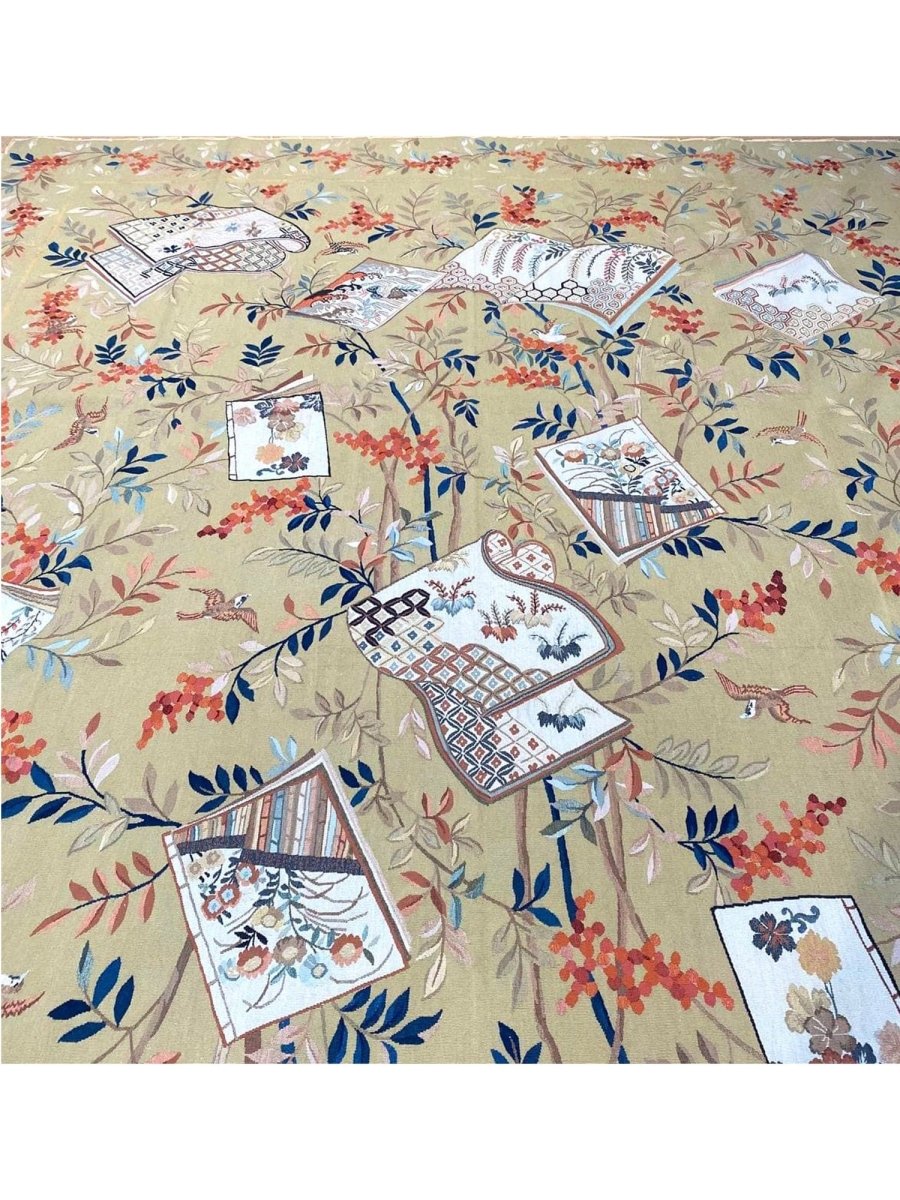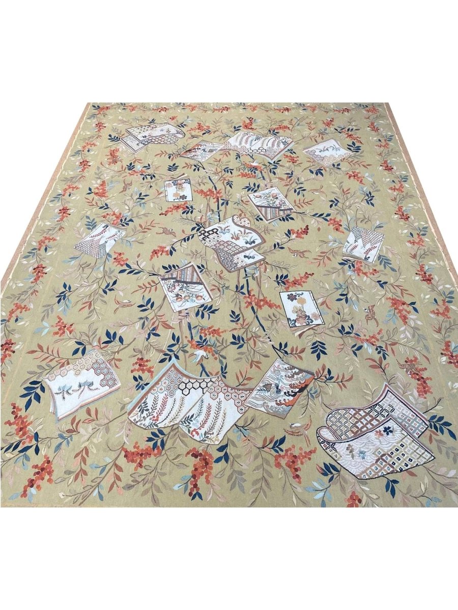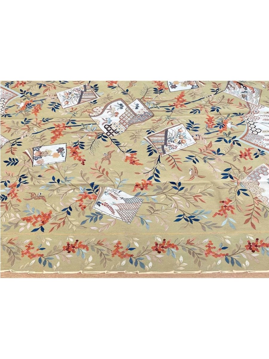 Add a touch of casual style to your home with 9x12 Japanese Style Aubusson Rug, crafted in China. This rug features a captivating geometric pattern, showcasing a simple yet effective design in a camel brown, red, blue, ivory, taupe, and gray palette. Its durable wool construction ensures longevity and easy care, perfect for living rooms, bedrooms, and dining spaces. The clean finish reflects quality craftsmanship and design. This piece effortlessly brightens, adding warmth, texture, and a relaxed feel. A blend of simple design and function, it easily enhances any space. Enjoy the benefit of free shipping across the United States. Each rug offers a distinct look, with subtle variations inherent to its creation.