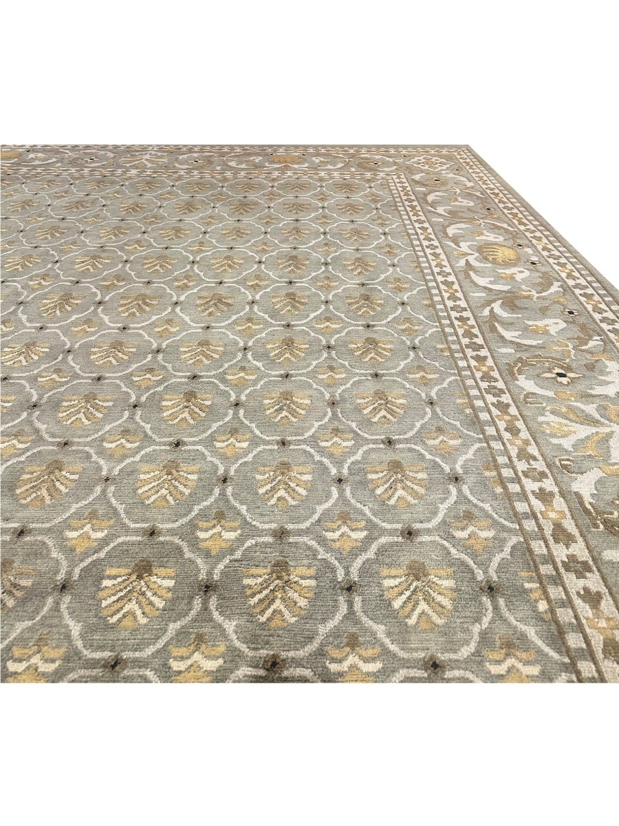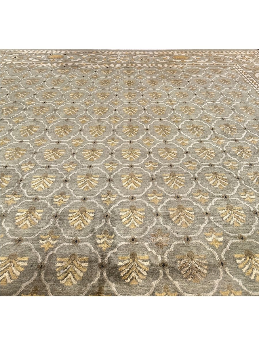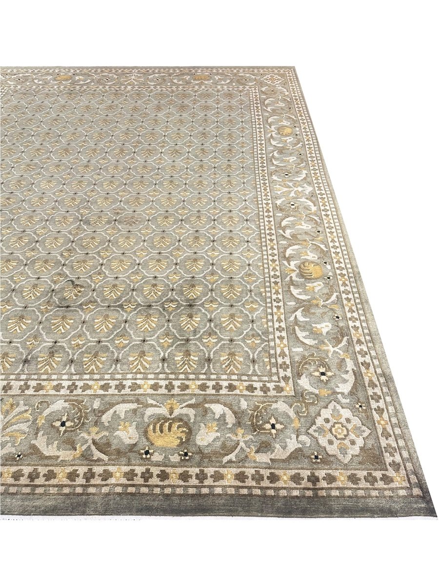 9x12 Olive Green Transitional Tibetan Style Area Rug 110658