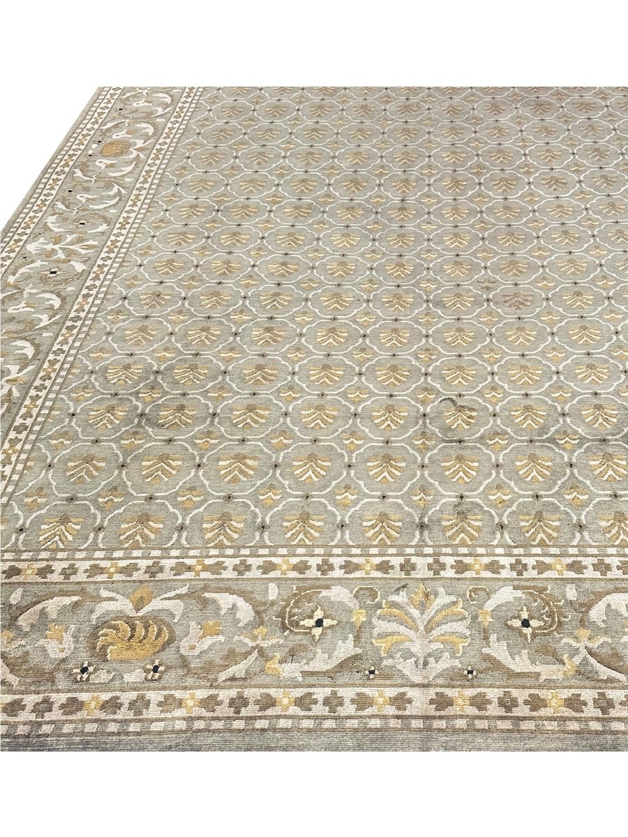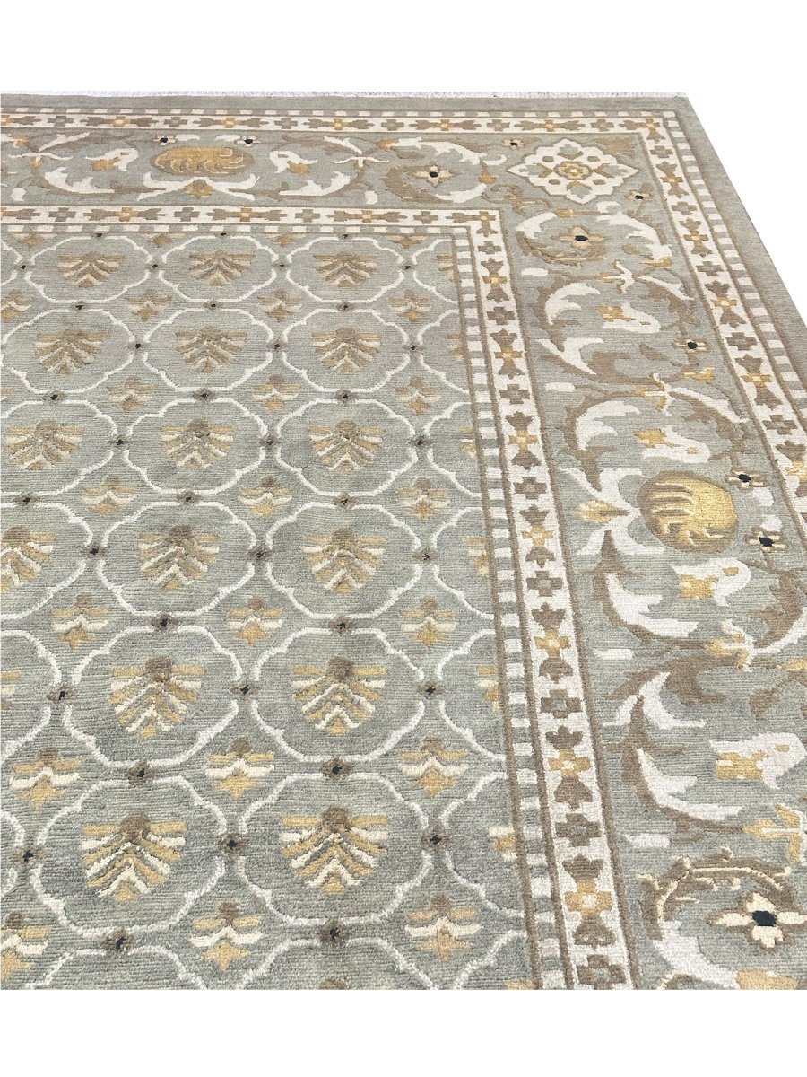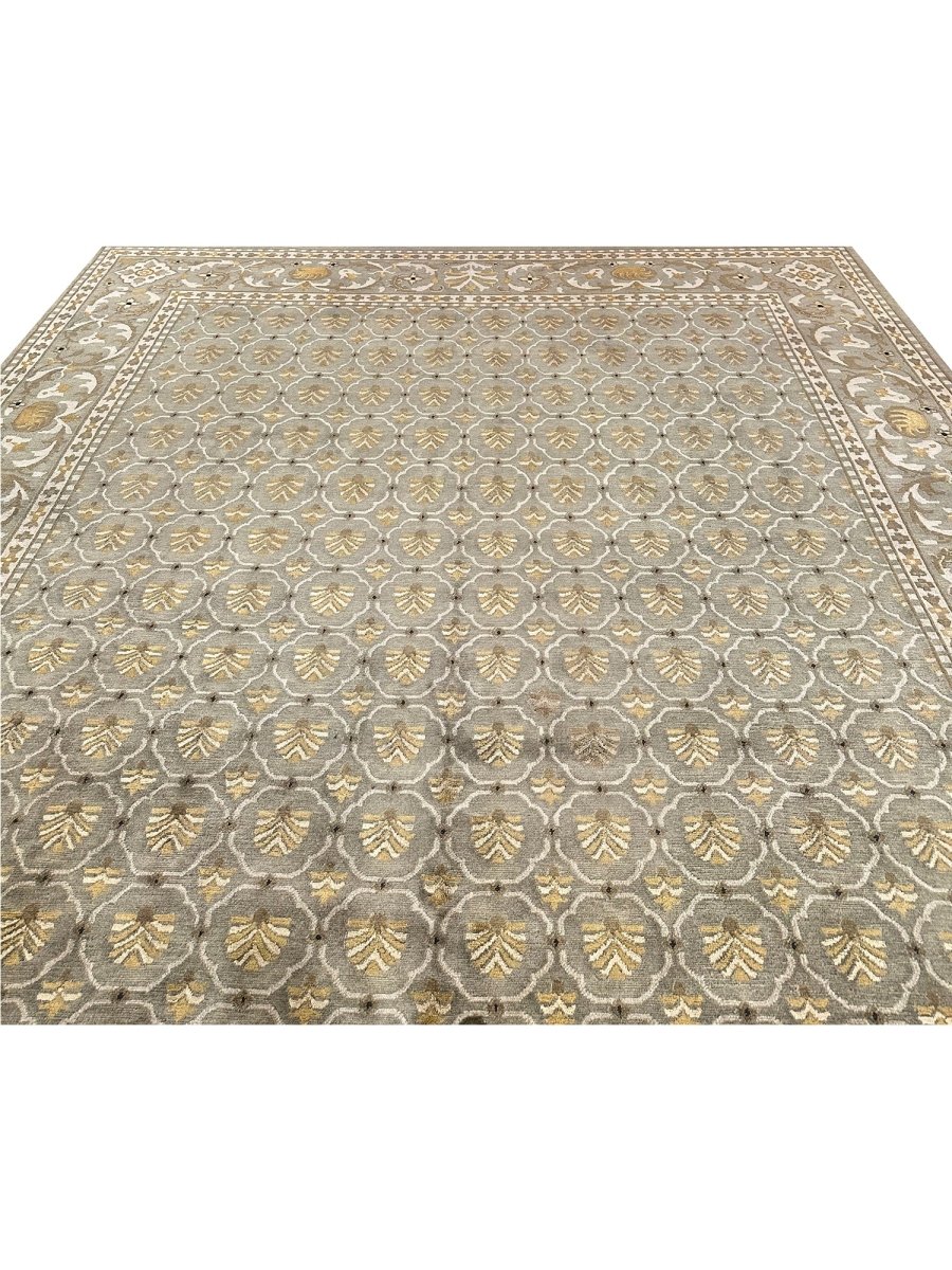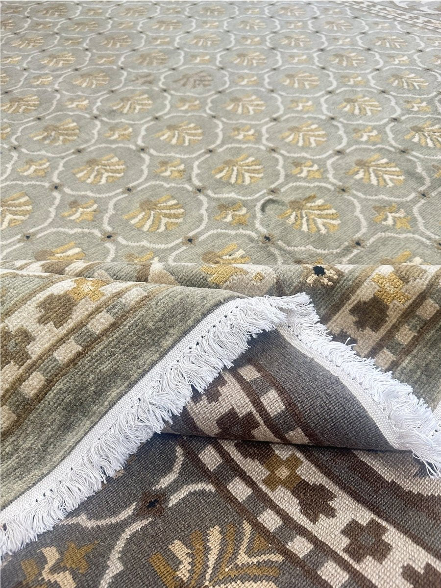 9x12 Olive Green Transitional Tibetan Style Area Rug 110658