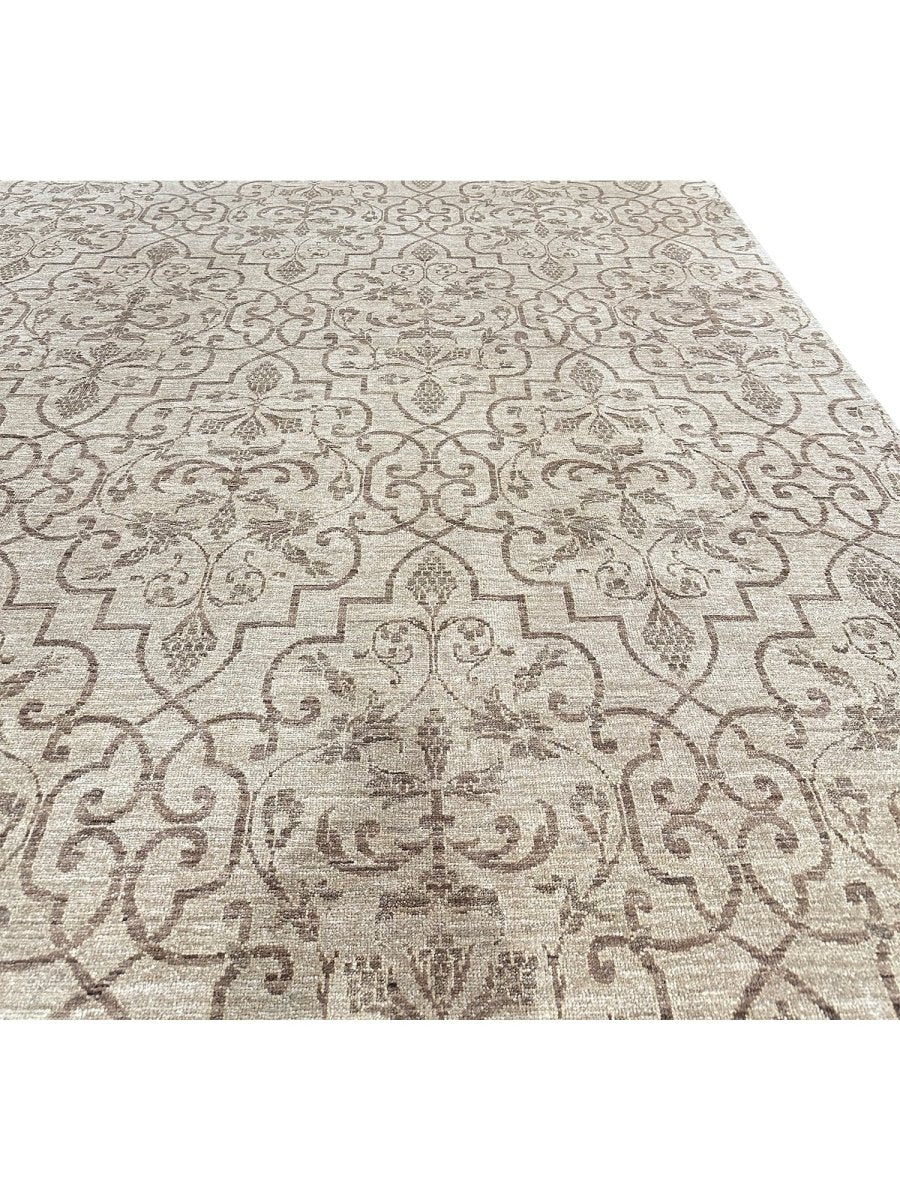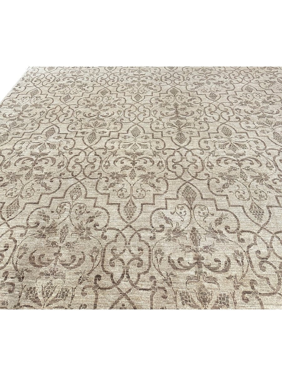 Add warmth and sophistication with the 9x12 Taupe Transitional Area Rug, an original addition to your home that brings classic style and charm. Beautifully hand-knotted from the finest quality wool, this stunning rug features a geometric design that adds character and style to the room. It creates a cozy atmosphere. The striking combination of earthy tones, such as taupe and ivory, makes it a suitable enhancement for any home style. This outstanding piece not only adds great beauty to your decor but also serves as a fine piece of artwork. Enjoy free shipping in the US.