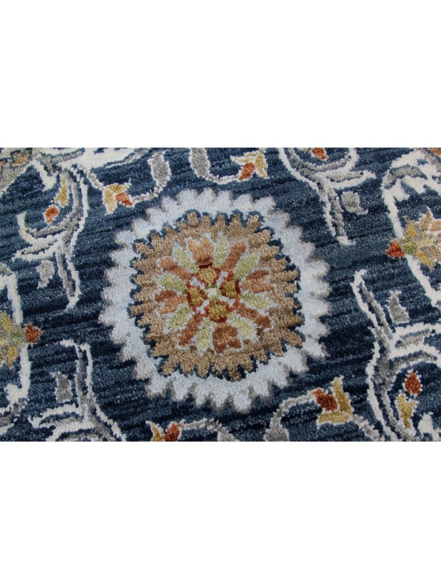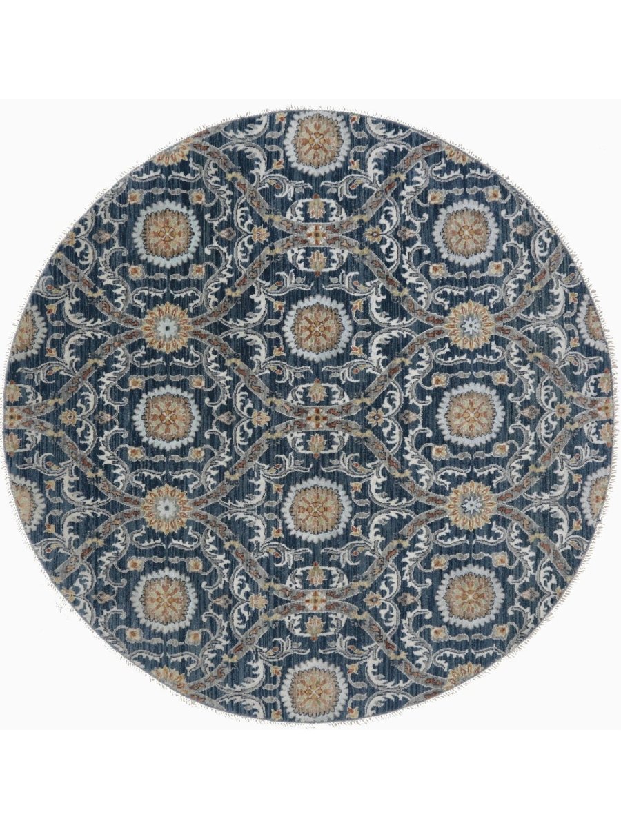 Experience the elegance of the 6' Round Transitional Area Rug, a unique piece that brings beauty to your home. Hand-knotted from quality wool, this beautiful transitional rug boasts a floral pattern that adds charm to any room. Ideal for grand living rooms, dining rooms, or as a focal point in your entranceway, it makes any space feel cozy and inviting. The stunning combination of gray, greenish-blue, orange, brown, and ivory colors make it a great option for any style. This outstanding item not only beautifies your space but also stands as a stunning piece of art. Get free shipping in the US.