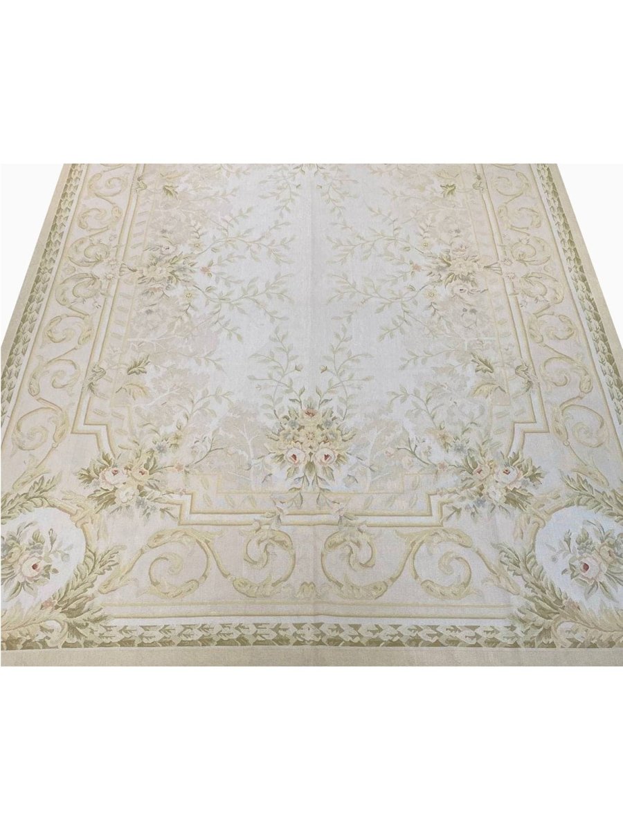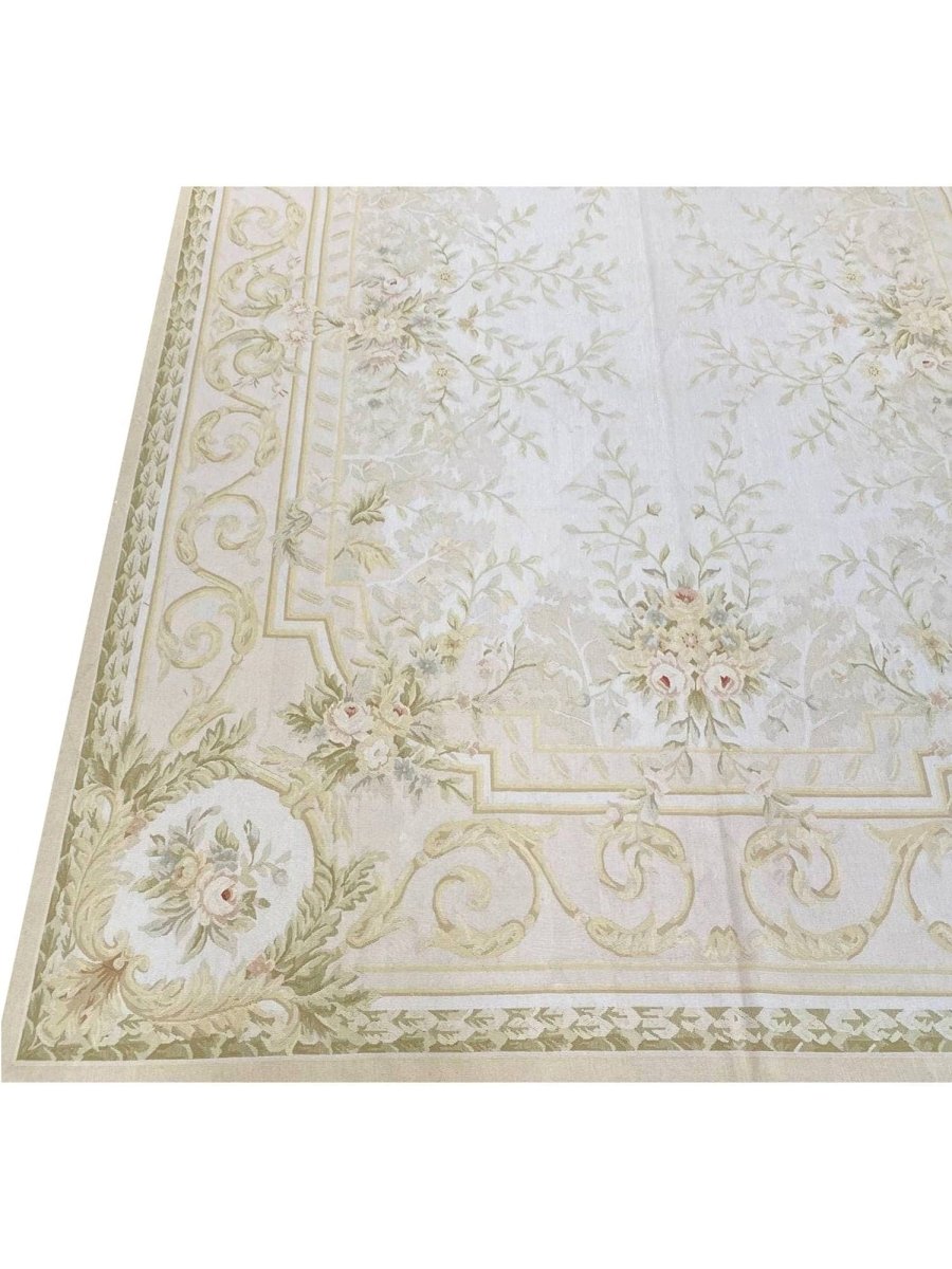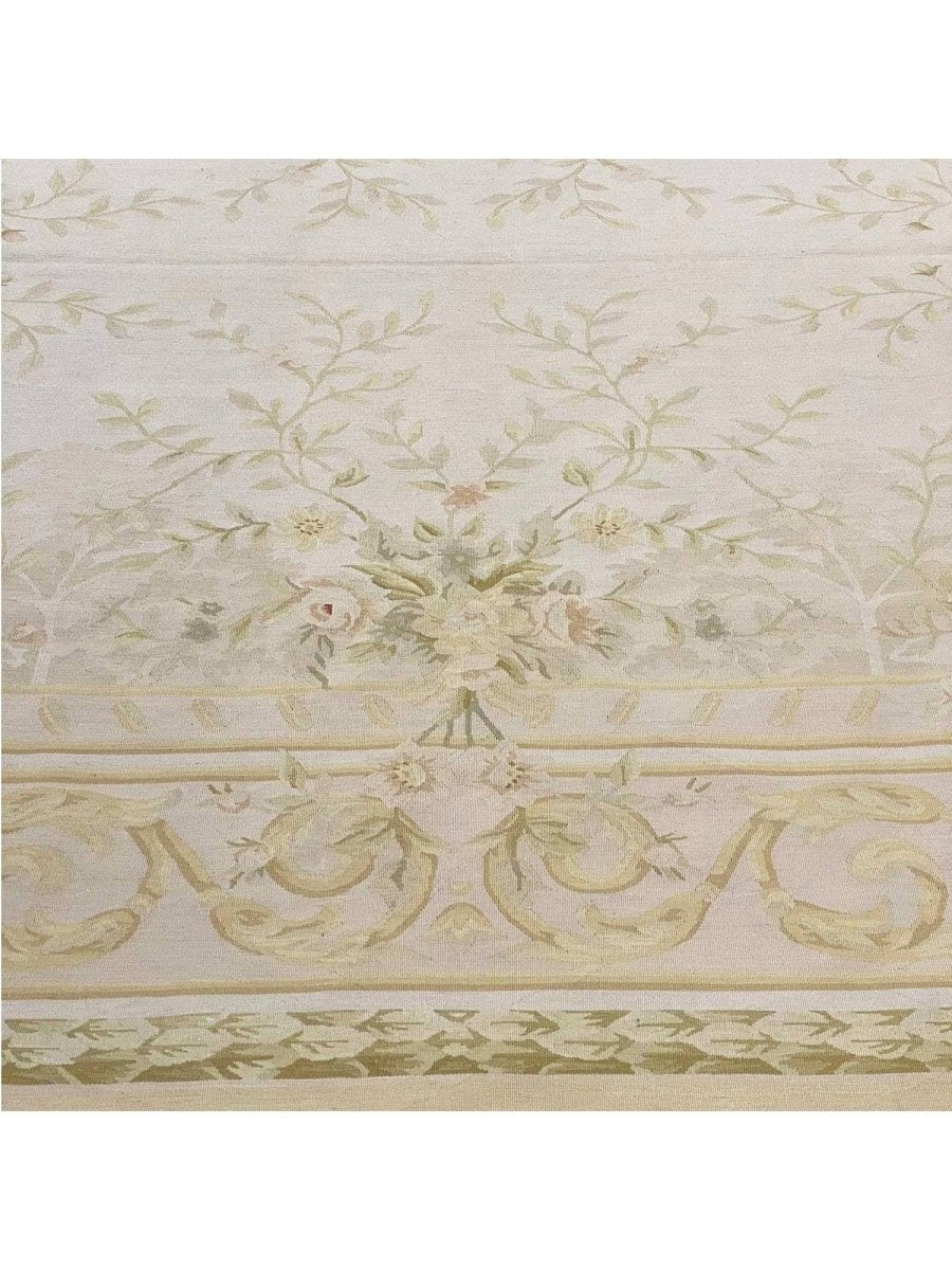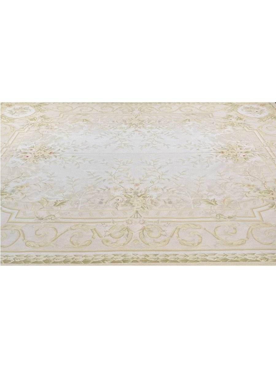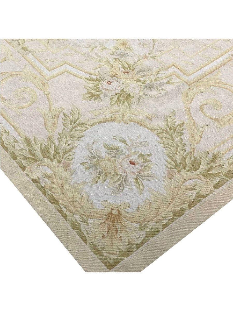 Discover the allure of this 9x12 French Style Aubusson Rug, a unique accent that adds classic style to your house. This gorgeous rug, which is hand-knotted from premium wool, has a floral design that gives personality to any room. It produces a cozy and welcoming ambiance and is ideal for bedrooms, living rooms, dining halls, or as a focal point in your foyer. Its amazing combination of soft beige, gold, sky blue, green, and brown tones make it a great option for a variety of styles. This outstanding sculpture acts as a stunning piece of art in addition to enhancing your decor. Take advantage of free US delivery.
