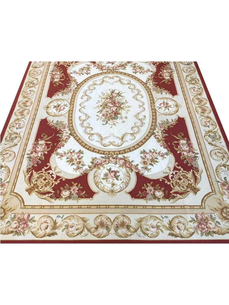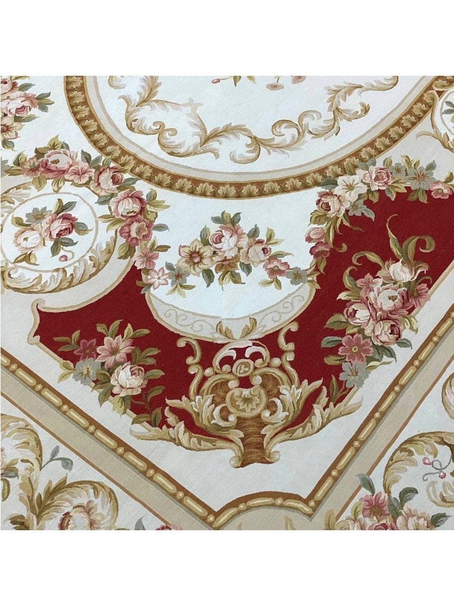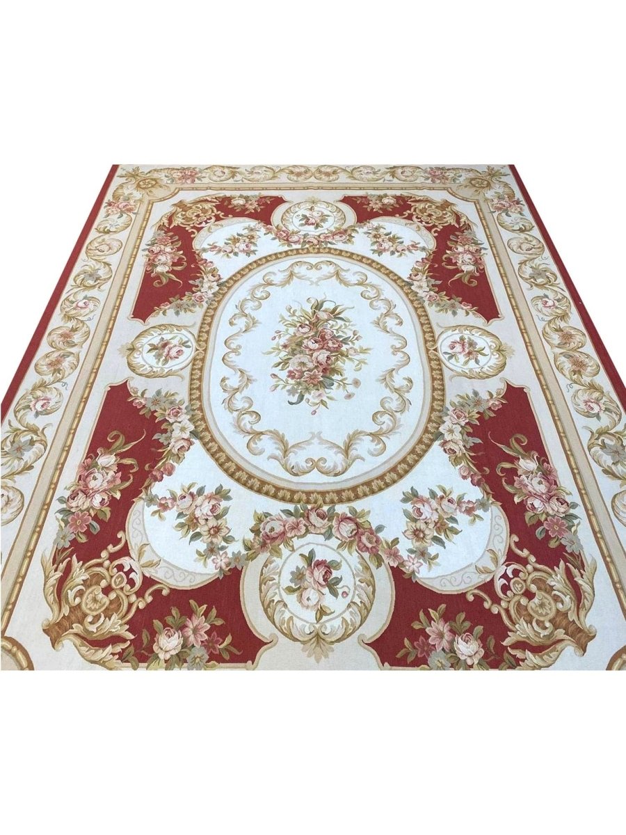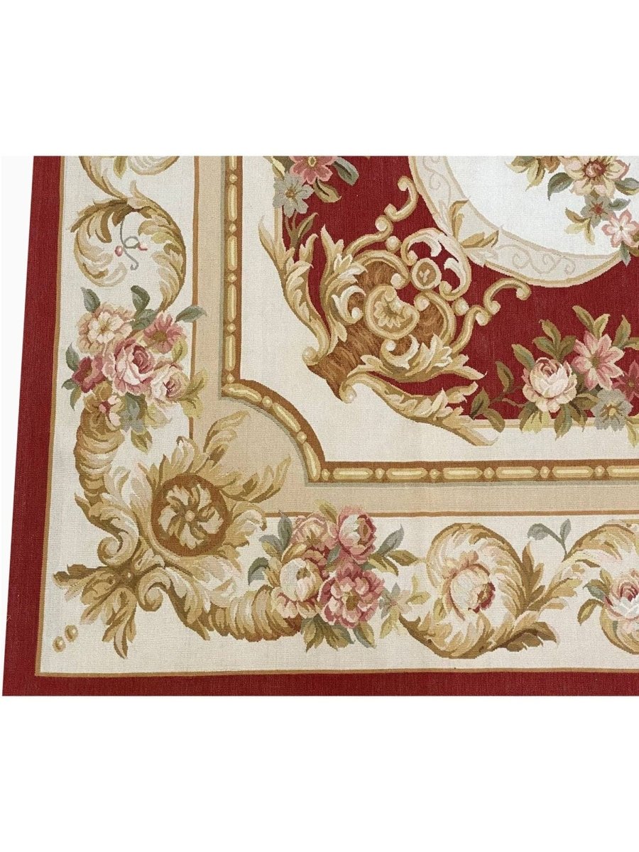 The 9x12 French Style Aubusson Rug is a unique treasure that embodies the rich history of Chinese weaving and will transform your living area. Made from high-quality wool, this gorgeous rug features a medallion design that blends in perfectly with any type of interior design. It provides a friendly atmosphere and is perfect for large dining rooms, comfortable living spaces, or as a chic addition in your workplace. It is a multipurpose addition to your house because of the striking blend of soft ivory, gold, burgundy, green, brown, and pink hues that offer depth and character. This amazing carpeting is a stunning work of art that elevates your living area and goes beyond simple decoration. Take advantage of free US delivery.