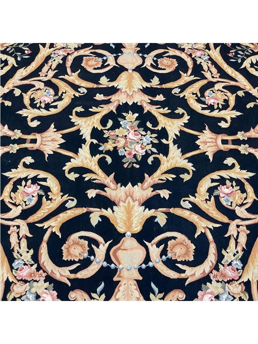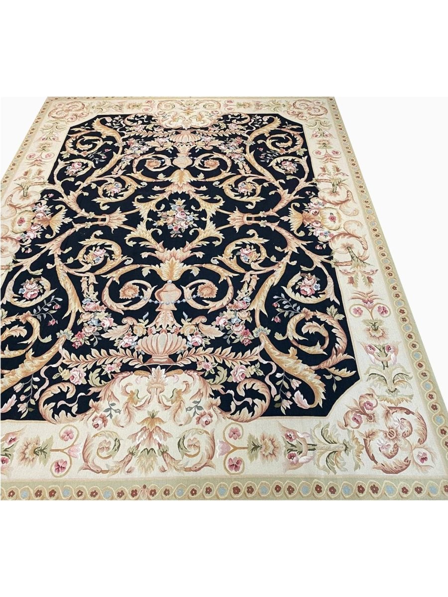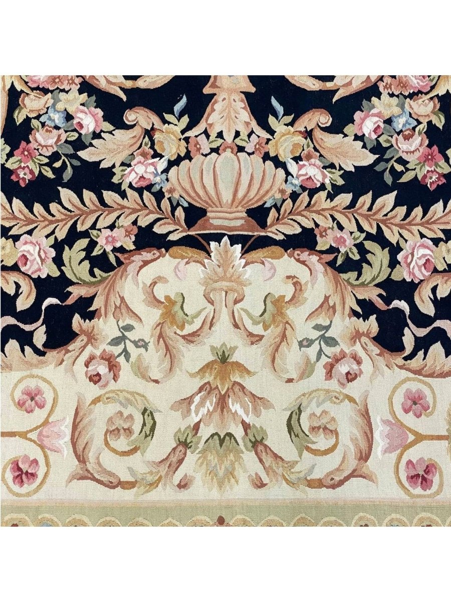 The 9x12 French Style Aubusson Rug is a unique treasure that embodies the rich history of Chinese weaving and will transform your living area. Made from high-quality wool, this gorgeous rug features a medallion design that blends in perfectly with any type of interior design. It provides a friendly atmosphere and is perfect for large dining rooms, comfortable living spaces, or as a chic addition in your workplace. It is a multipurpose addition to your house because of the striking blend of soft beige, brown, black, pink, blue, and green hues that offer depth and character. This amazing carpeting is a stunning work of art that elevates your living area and goes beyond simple decoration. Take advantage of free US delivery.