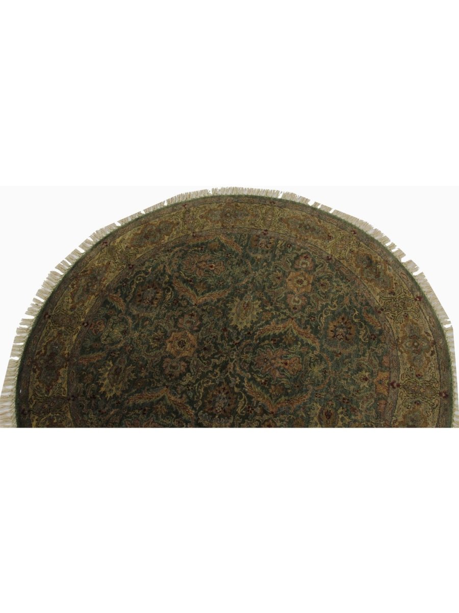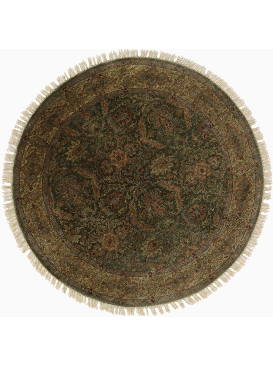 Elevate your space with this one-of-a-kind 4x4 Round Indian Agra Area Rug, a beautiful nod to old Agra and Persian traditions. Hand-knotted from pure wool, it showcases a refined floral traditional pattern. The harmonious mix of tan, green, and brown creates a calm, grounding effect. A charming piece that never goes out of style. Free shipping in the US.