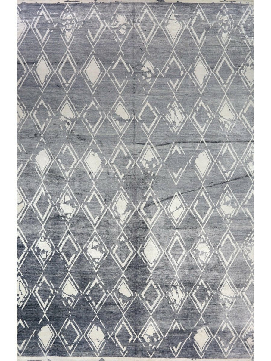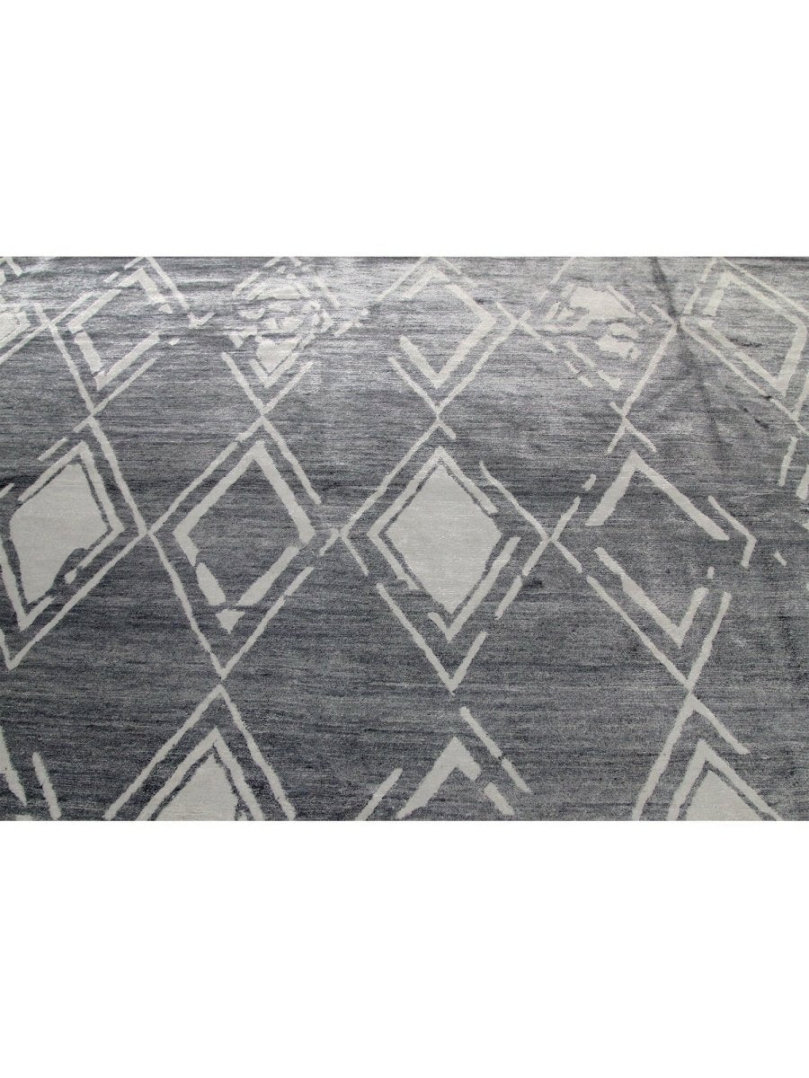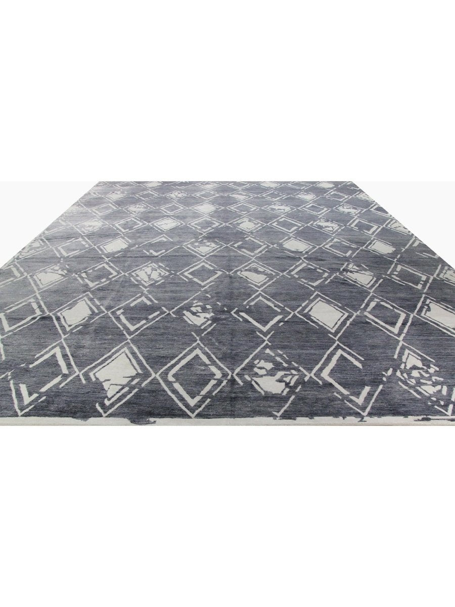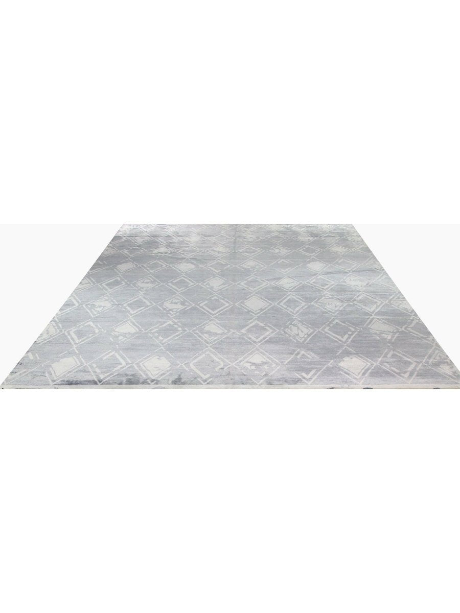 Immerse your space in the sophisticated allure of this magnificent 12x18 Contemporary Area Rug. Hand-knotted by skilled artisans in India, this new piece showcases a captivating allover geometric pattern that brings a refined and inviting atmosphere to any room. Crafted from a luxurious blend of premium wool and bamboo silk, this rug offers a sumptuous underfoot feel and exceptional durability. The colors, including subtle charcoal gray and cream tones, create a harmonious and calming effect that effortlessly complements diverse decor styles.