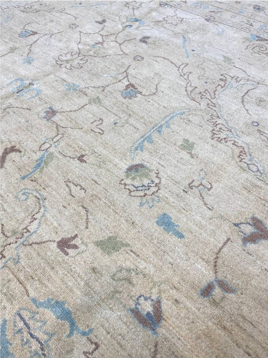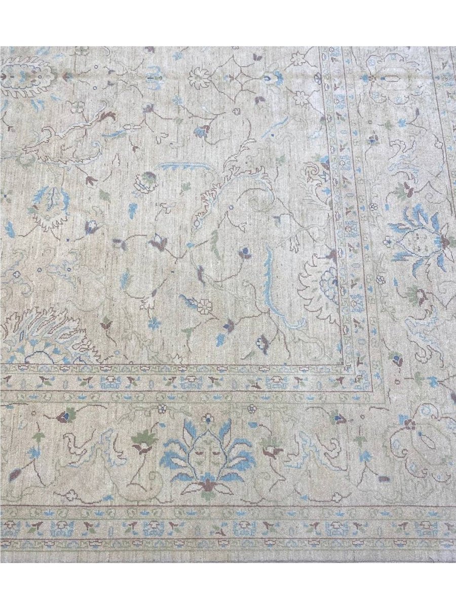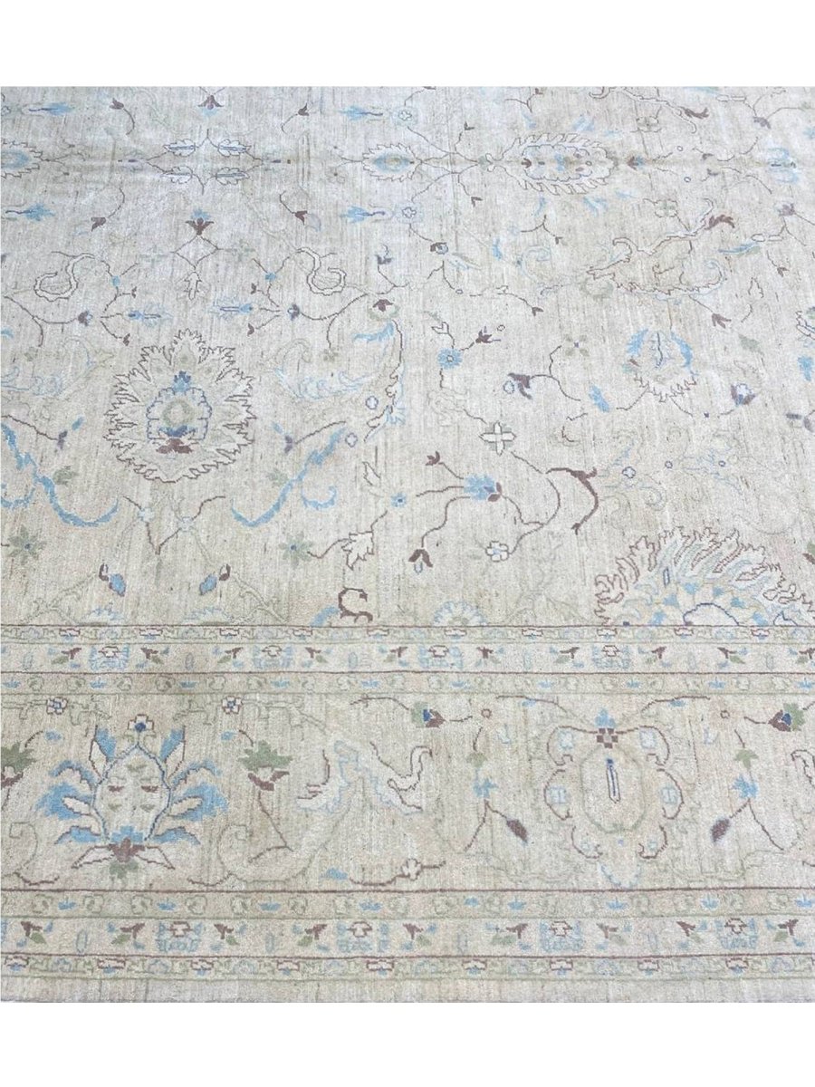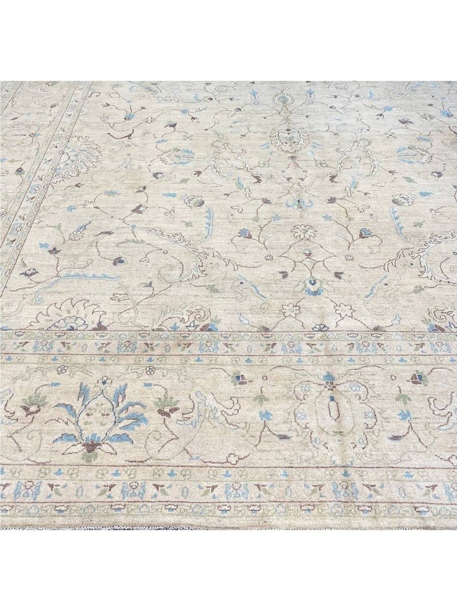 Experience the elegance of the 12x18 Pakistani Area Rug, a unique piece that brings classic beauty to your home. Hand-knotted from quality wool, this beautiful rug boasts a floral pattern that adds charm to any room. Ideal for grand living rooms, dining rooms, or as a focal point in your entranceway, it makes any space feel cozy and inviting. The stunning combination of blue, light and dark brown, and green colors make it a great option for any style. This outstanding item not only beautifies your space but also stands as a stunning piece of art. Get free shipping in the US.
