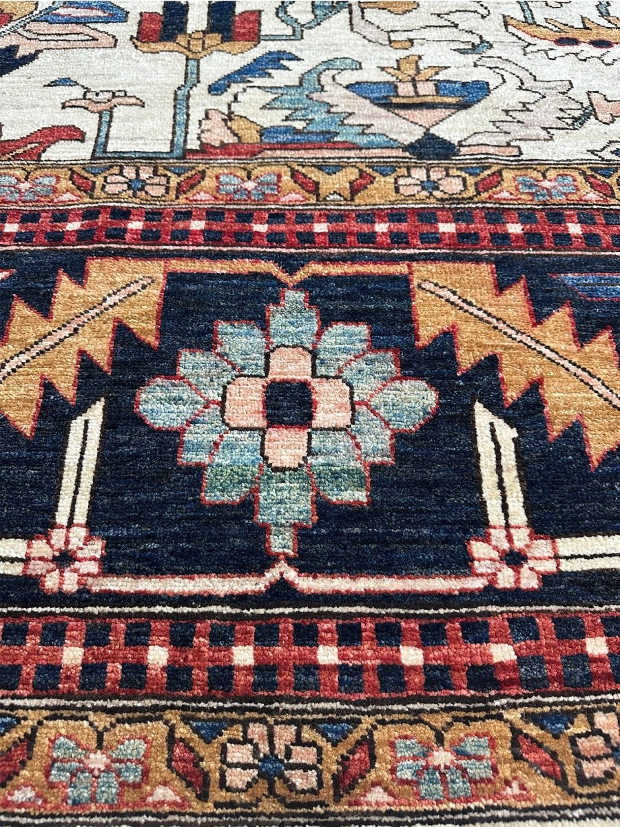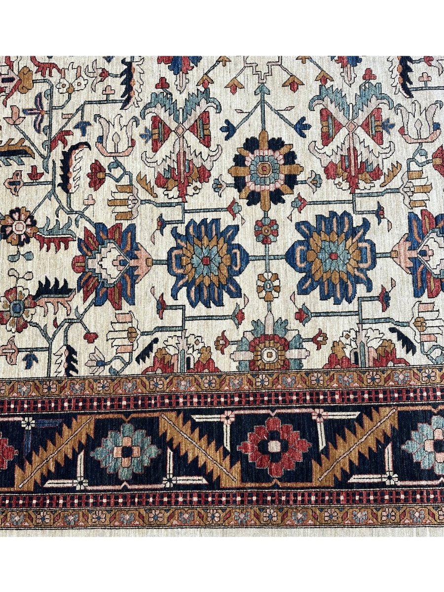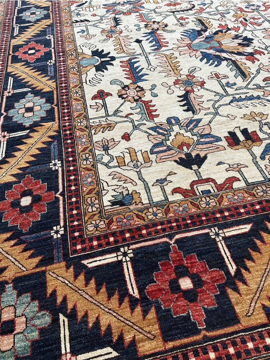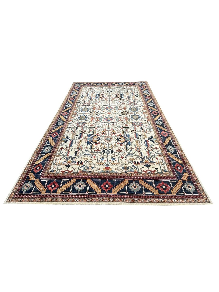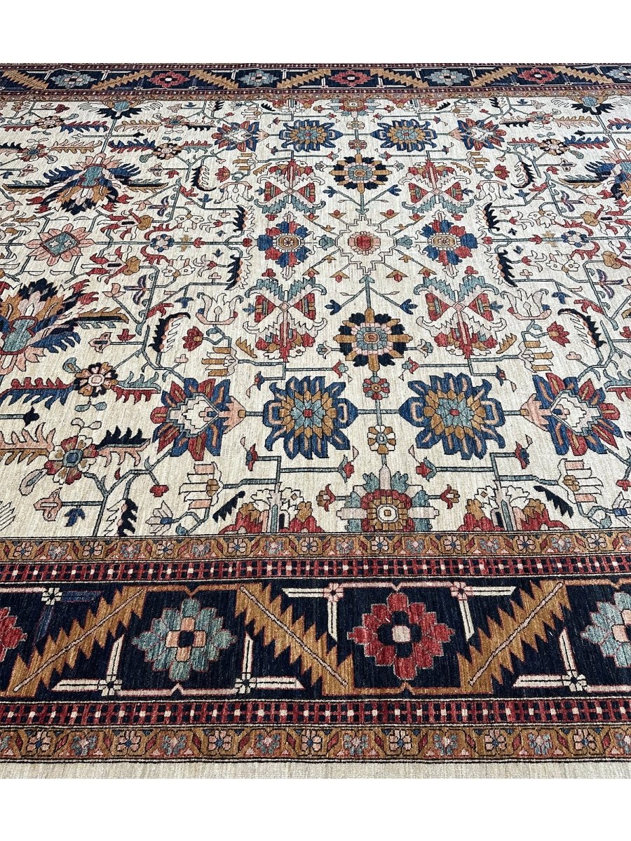 Immerse your space in the magnificent grandeur of this 12x18 Persian Serapi Style rug. This awe-inspiring piece, hand-knotted by skilled artisans in Pakistan, captures the esteemed aesthetics of classic Serapi designs. The rug features an intricate geometric pattern, a hallmark of traditional artistry, beautifully rendered in a rich color palette including classic blue, red, green, and cream, set against an elegant field. Its vast size makes it a truly commanding presence crafted from durable wool, this rug promises both enduring beauty and luxurious comfort, destined to be a cherished heirloom for generations to come. Shop now to avail the benefit of quick delivery to your doorstep.