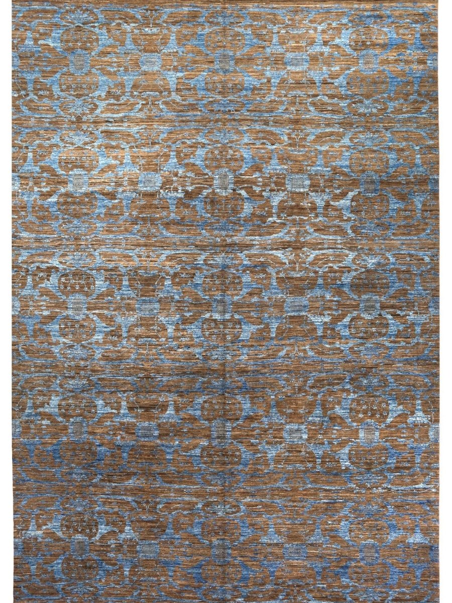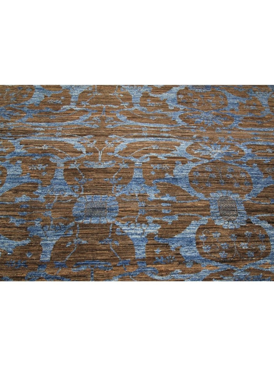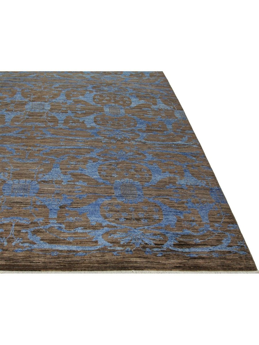 Immerse your space in the serene elegance of this magnificent 12x18 Transitional Oushak Area Rug. Hand-knotted by skilled artisans in India from premium wool, this new rug offers a soft underfoot feel coupled with exceptional durability. The captivating geometric pattern, rendered in soothing tones of light blue, brown, and beige, creates a harmonious and inviting visual appeal that effortlessly enhances any room. Its expansive size makes it an ideal addition for grand living rooms, providing comfort and elegance to spacious dining areas, or bringing a serene ambiance to a large bedroom. This versatile rug seamlessly integrates into various decor styles, adding a touch of refined artistry to your home. This hand-knotted rug is a true testament to the skilled artistry of Indian weaving, promising to be a cherished element that elevates the aesthetic and comfort of your home.