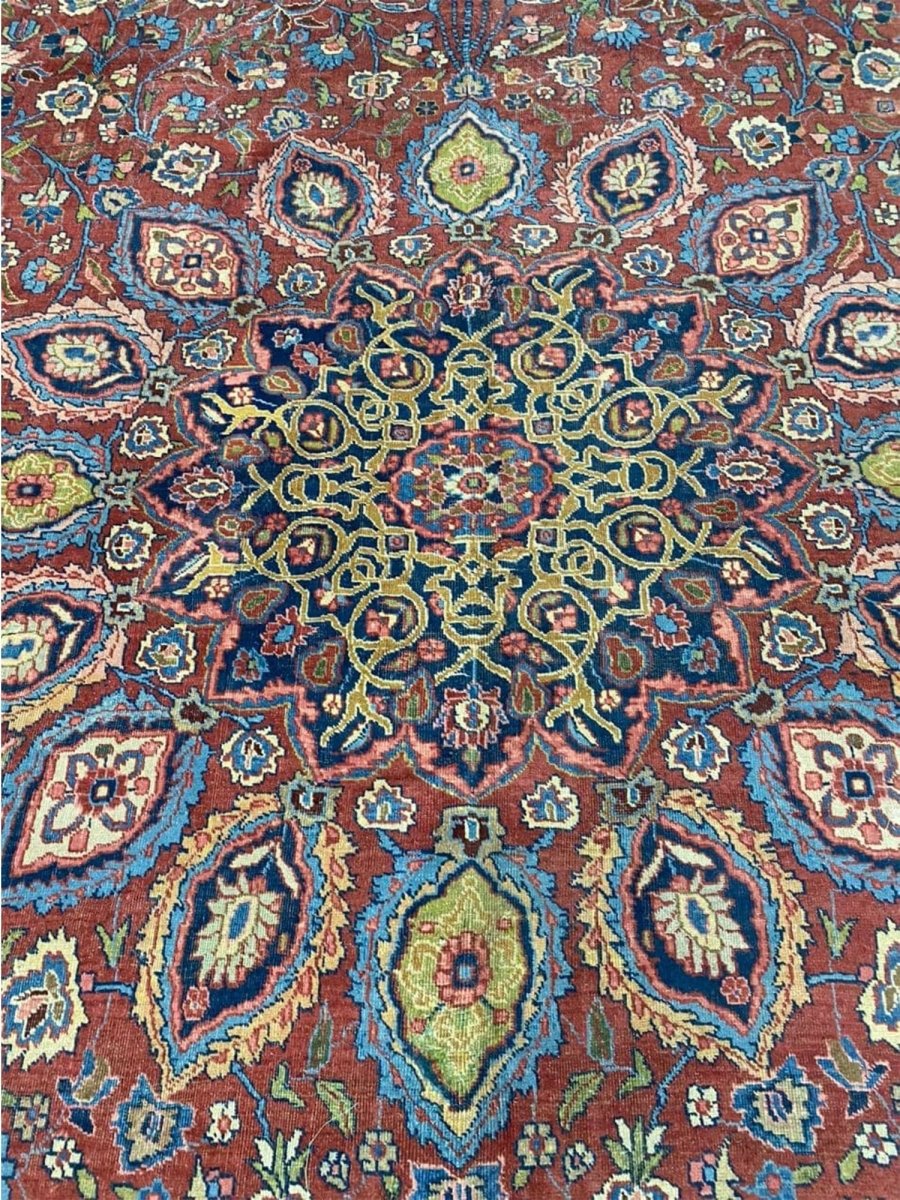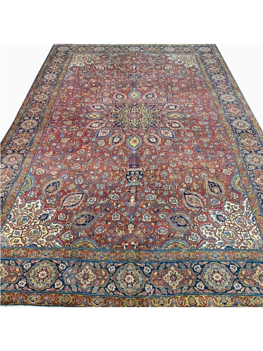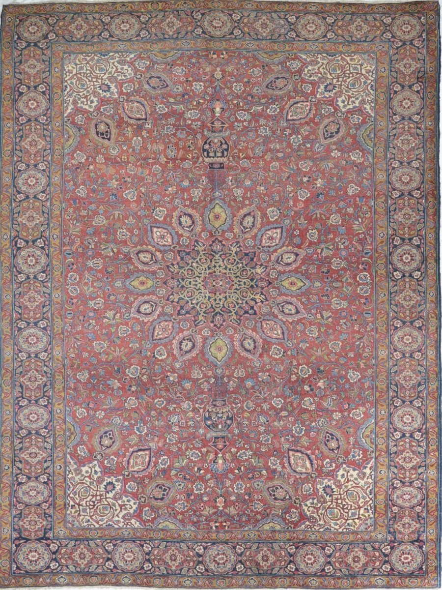 Add a touch of casual style to your home with this 13x19 Antique Persian Tabriz Area Rug, crafted in Persia. This rug features a captivating medallion pattern, showcasing a simple yet effective design in a red, blue, beige, green, and pink palette. Its durable wool construction ensures longevity and easy care, perfect for living rooms, bedrooms, and dining spaces. The clean finish reflects quality craftsmanship and design. This piece effortlessly brightens, adding warmth, texture, and a relaxed feel. A blend of simple design and function, it easily enhances any space. Enjoy the benefit of free shipping across the United States. Each rug offers a distinct look, with subtle variations inherent to its creation.