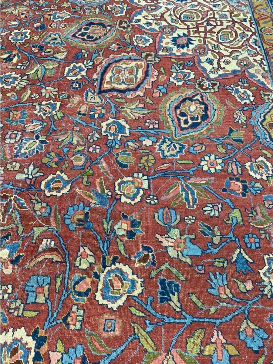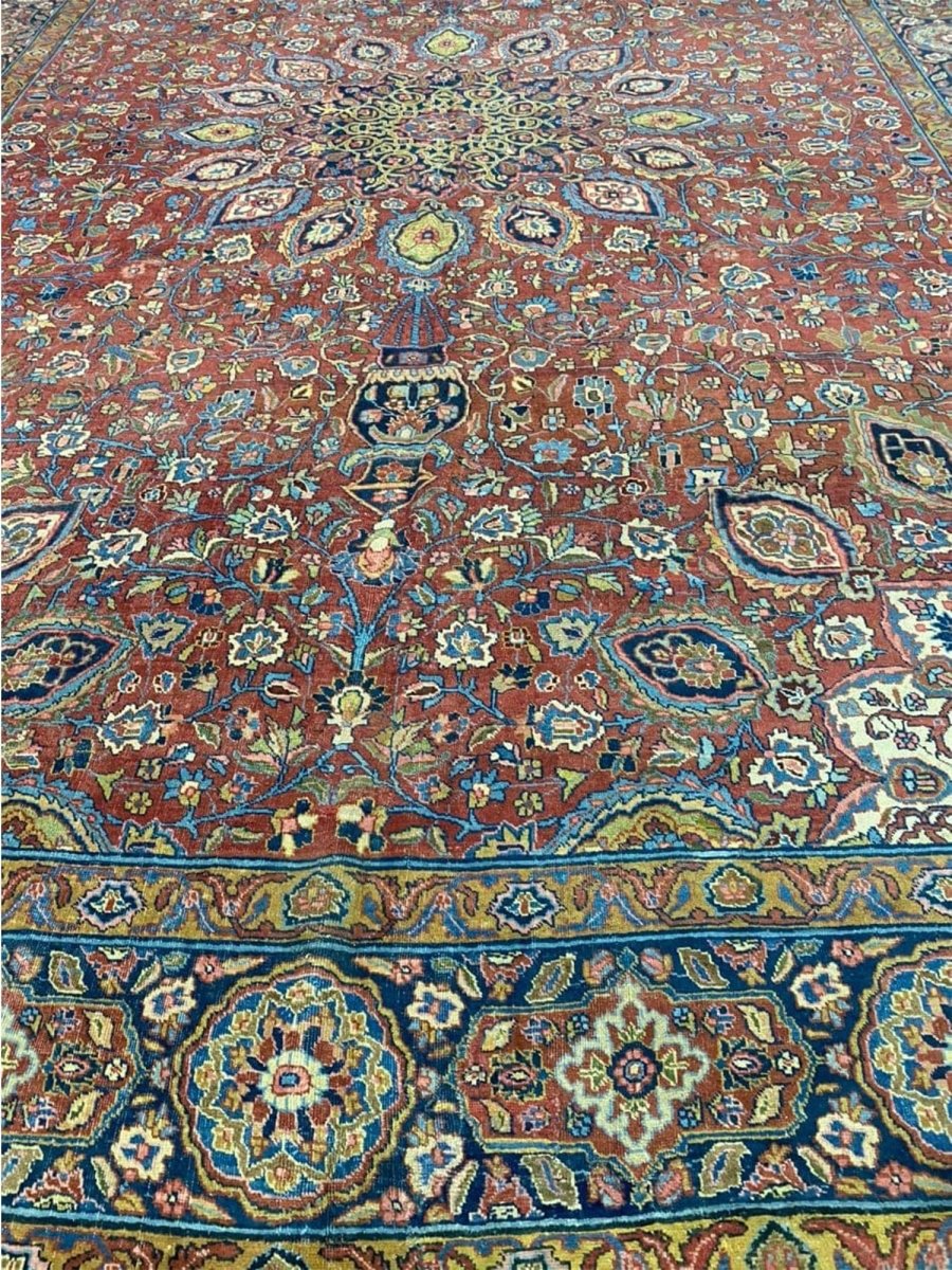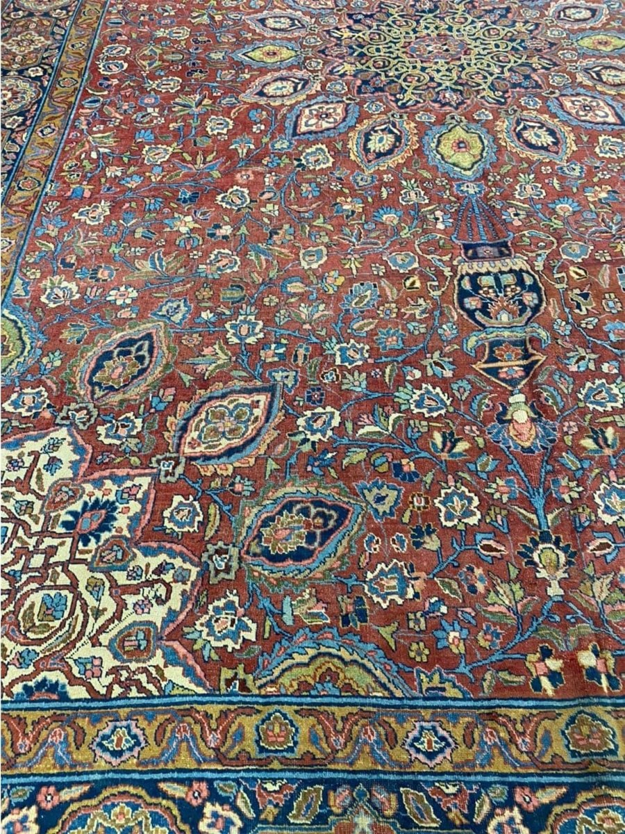 Add a touch of casual style to your home with this 13x19 Antique Persian Tabriz Area Rug, crafted in Persia. This rug features a captivating medallion pattern, showcasing a simple yet effective design in a red, blue, beige, green, and pink palette. Its durable wool construction ensures longevity and easy care, perfect for living rooms, bedrooms, and dining spaces. The clean finish reflects quality craftsmanship and design. This piece effortlessly brightens, adding warmth, texture, and a relaxed feel. A blend of simple design and function, it easily enhances any space. Enjoy the benefit of free shipping across the United States. Each rug offers a distinct look, with subtle variations inherent to its creation.