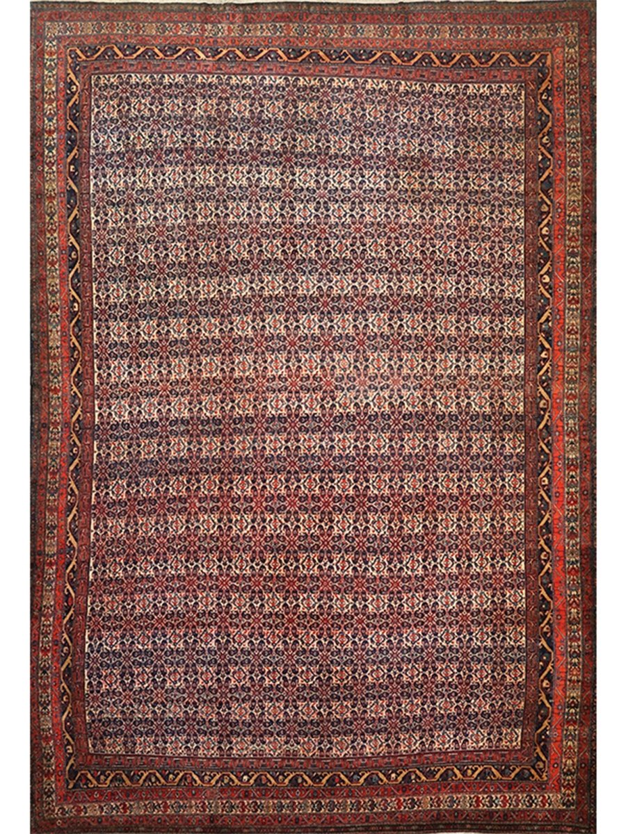The 13x20 Antique Persian Area Rug is a unique treasure that embodies the rich history of Persian weaving and will transform your decor. This traditional gorgeous rug, which is made of high-quality wool, features a geometric design that blends in perfectly with any type of decor. It provides a friendly atmosphere and is perfect for large dining rooms, comfortable living spaces, or as a chic addition in your workplace. It is a multipurpose addition to your house because of the striking blend of warm tones featuring rust, gray, orange, and peach that offer depth and character. Take advantage of free US delivery.