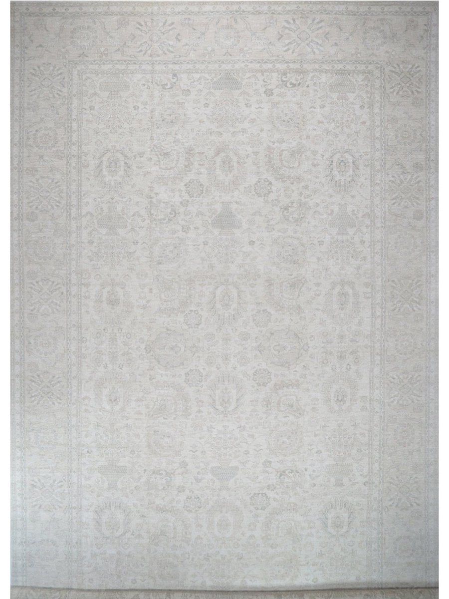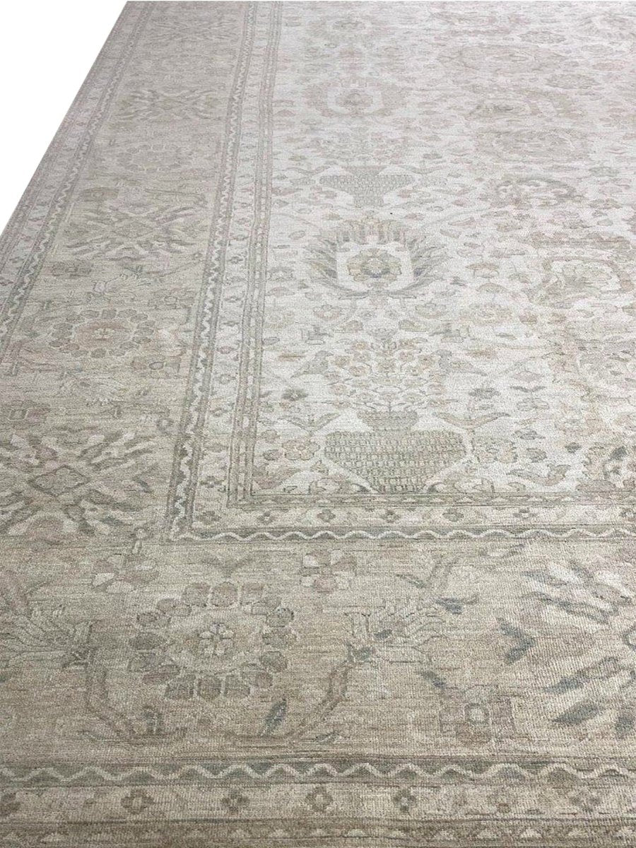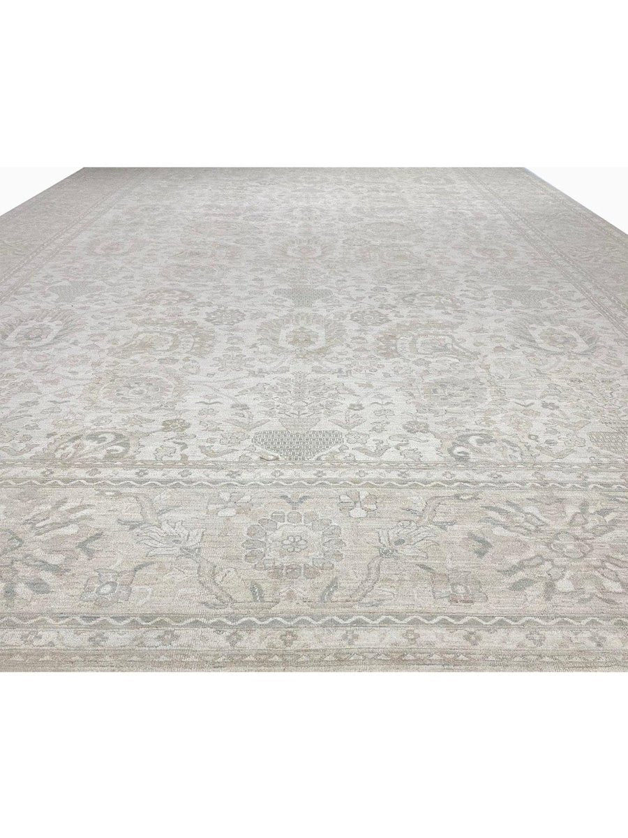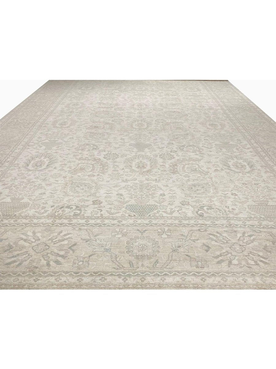 Discover the beauty of this 16x25 Persian Sultanabad Style Area Rug. Handwoven in Pakistan from wool, this rug showcases skilled artistry. Its generous size makes it an excellent choice for filling large spaces like living rooms and dining rooms, adding a touch of classic style to your decor. The detailed pattern, which includes floral designs, gives it a sophisticated feel. The color palette features a foundation of soft beige, accented by delicate shades of gray within the floral details and borders. These light tones work together to create an elegant and airy ambiance. Made from durable wool, this rug is more than just a floor covering; it's a work of art that will enhance your home decor for years. Enjoy the lasting charm of a handwoven rug, plus free shipping within the United States.