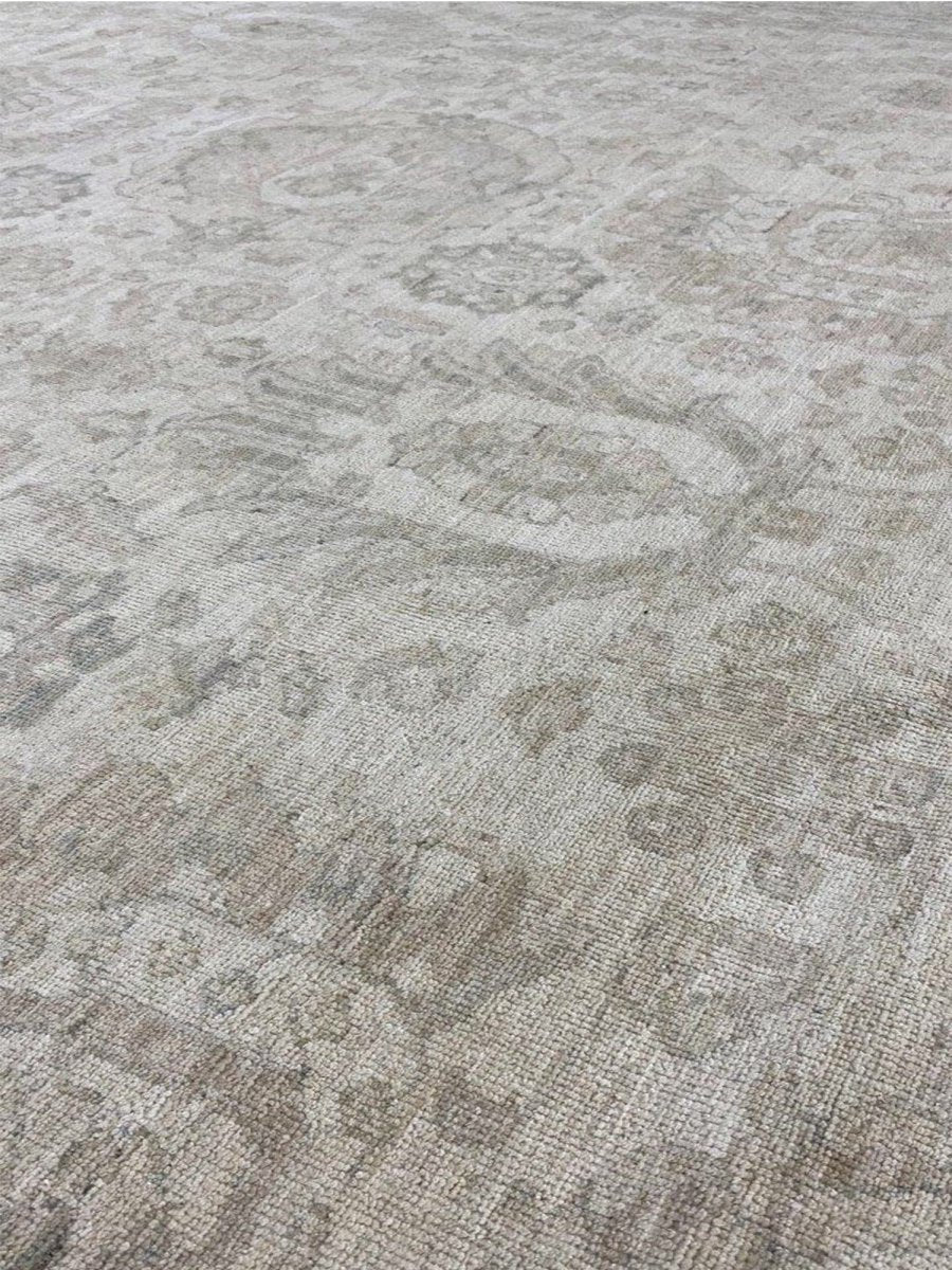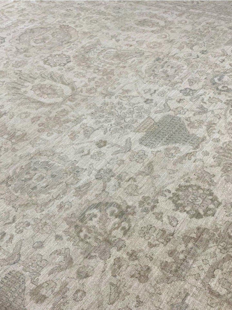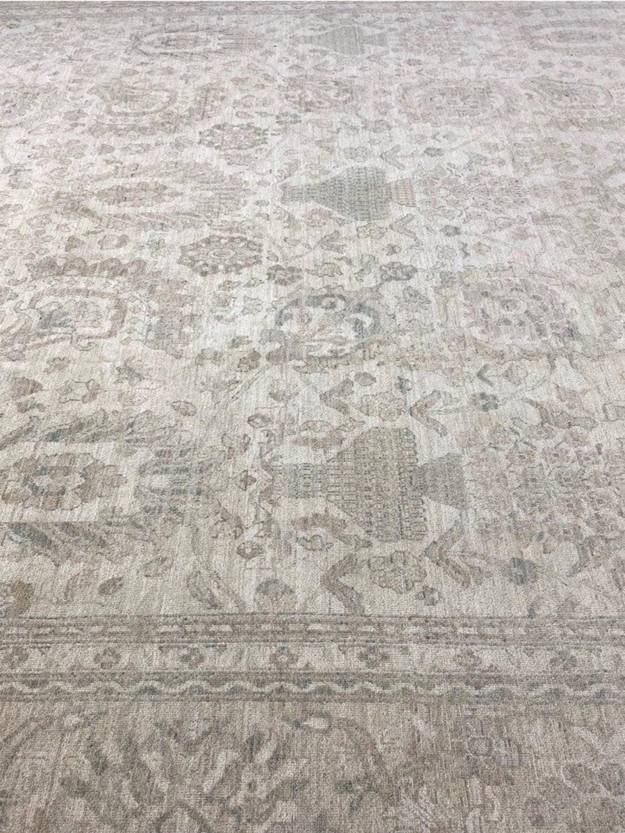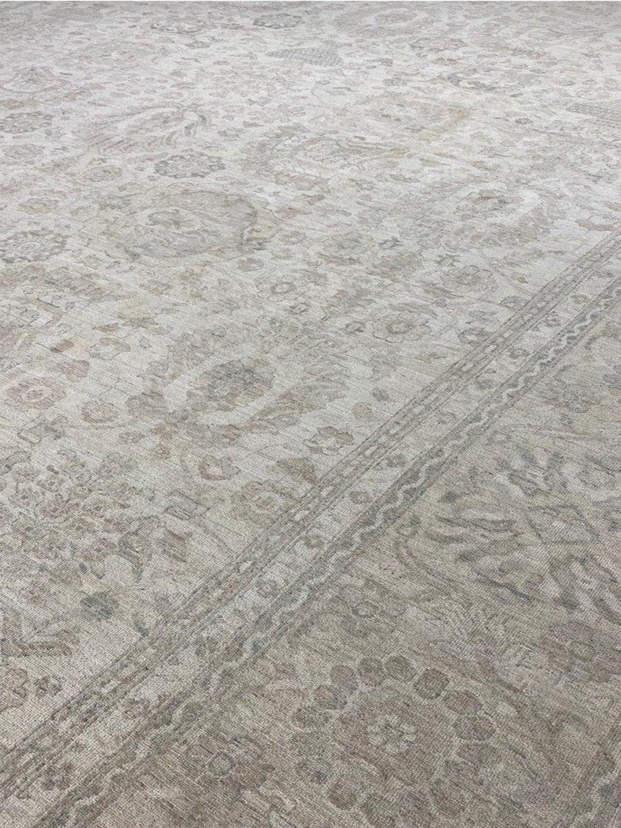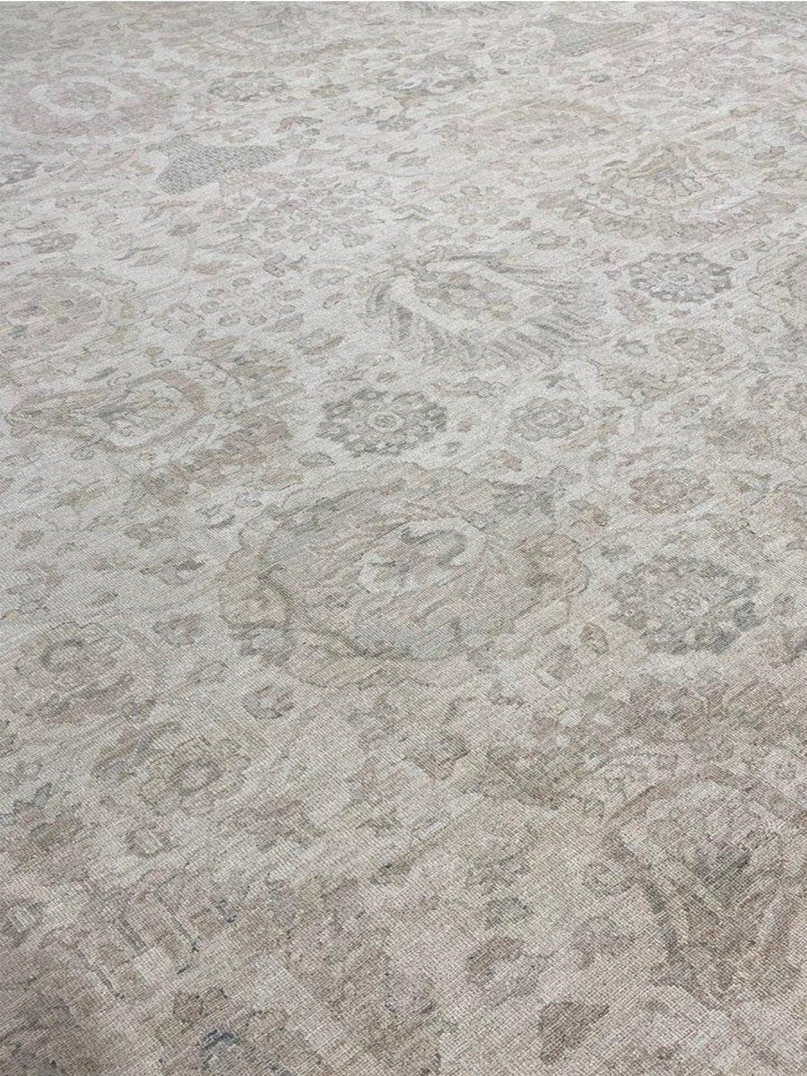 Discover the beauty of this 16x25 Persian Sultanabad Style Area Rug. Handwoven in Pakistan from wool, this rug showcases skilled artistry. Its generous size makes it an excellent choice for filling large spaces like living rooms and dining rooms, adding a touch of classic style to your decor. The detailed pattern, which includes floral designs, gives it a sophisticated feel. The color palette features a foundation of soft beige, accented by delicate shades of gray within the floral details and borders. These light tones work together to create an elegant and airy ambiance. Made from durable wool, this rug is more than just a floor covering; it's a work of art that will enhance your home decor for years. Enjoy the lasting charm of a handwoven rug, plus free shipping within the United States.