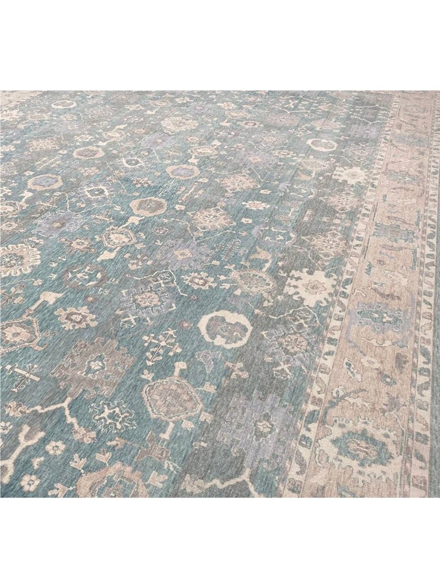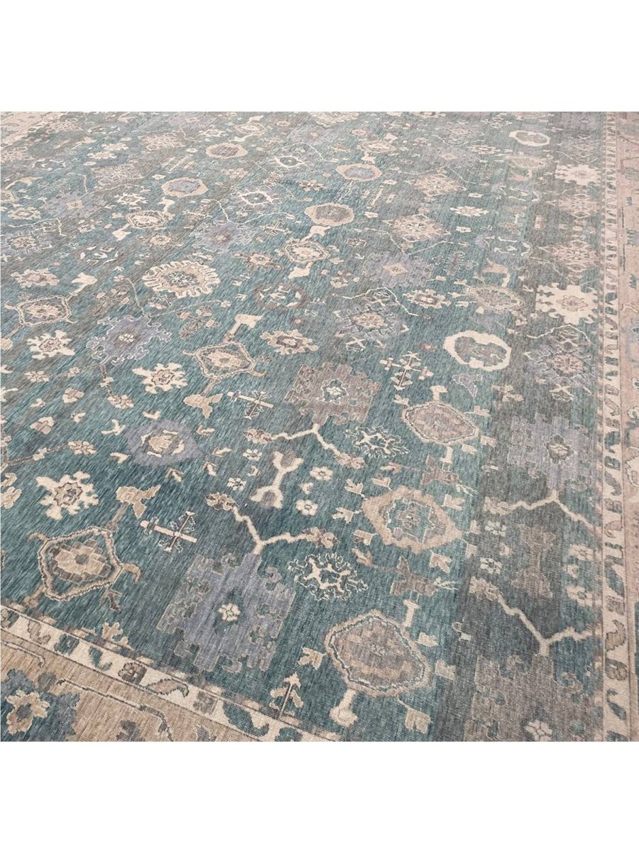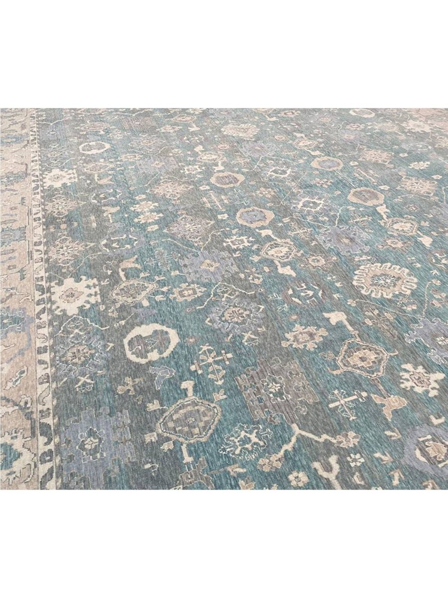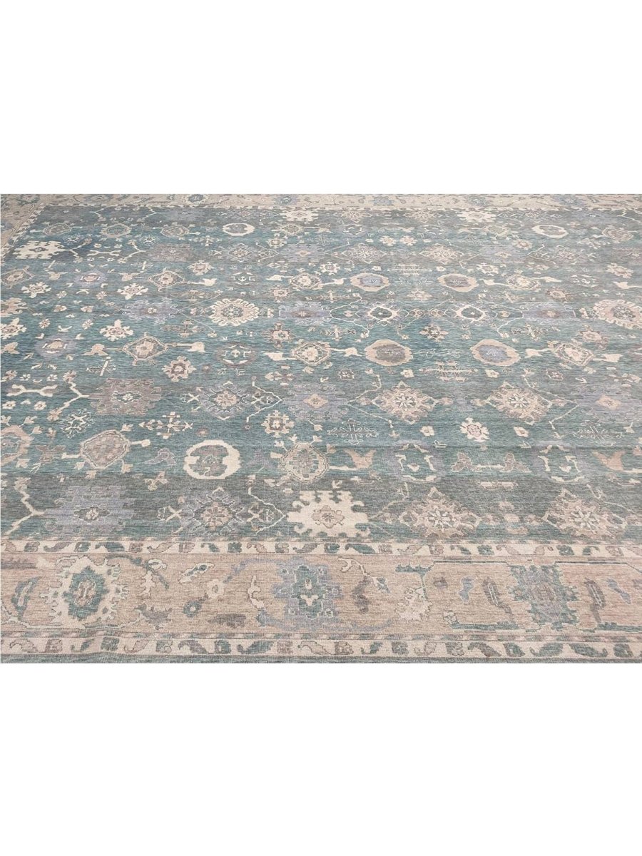 Experience the elegance of the 13x19 Turkish Oushak Area Rug, a unique piece that brings traditional beauty to your home. Hand-knotted from quality wool, this beautiful rug boasts a geometric pattern that adds charm to any room. It makes any space feel cozy and inviting. The stunning combination of beige, tan, charcoal, and blue colors make it a great option for any style. This outstanding item not only beautifies your space but also stands as a stunning piece of art. Get free shipping in the US.