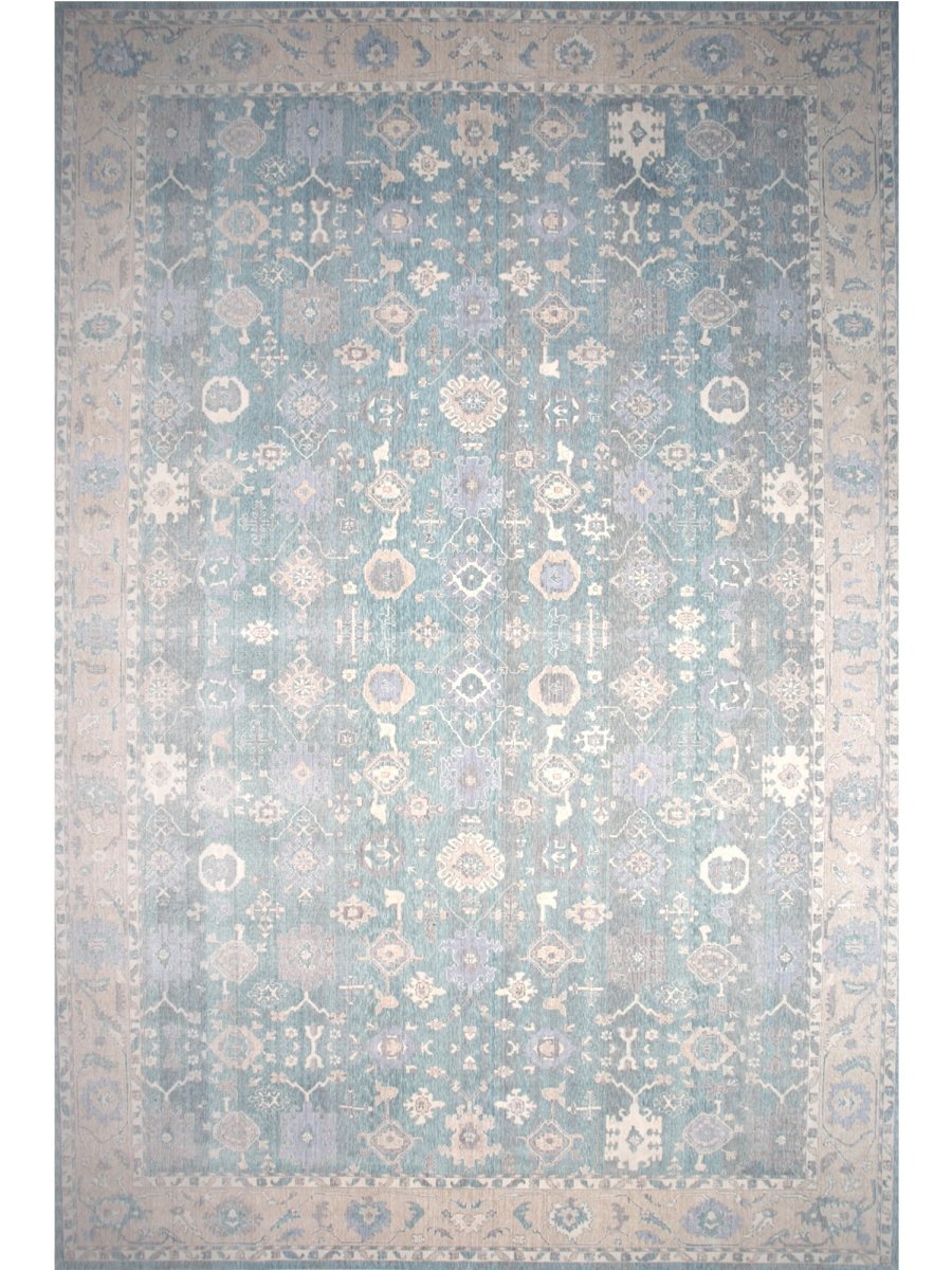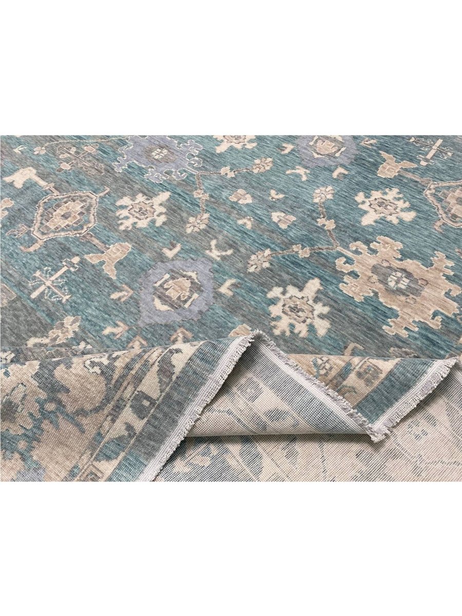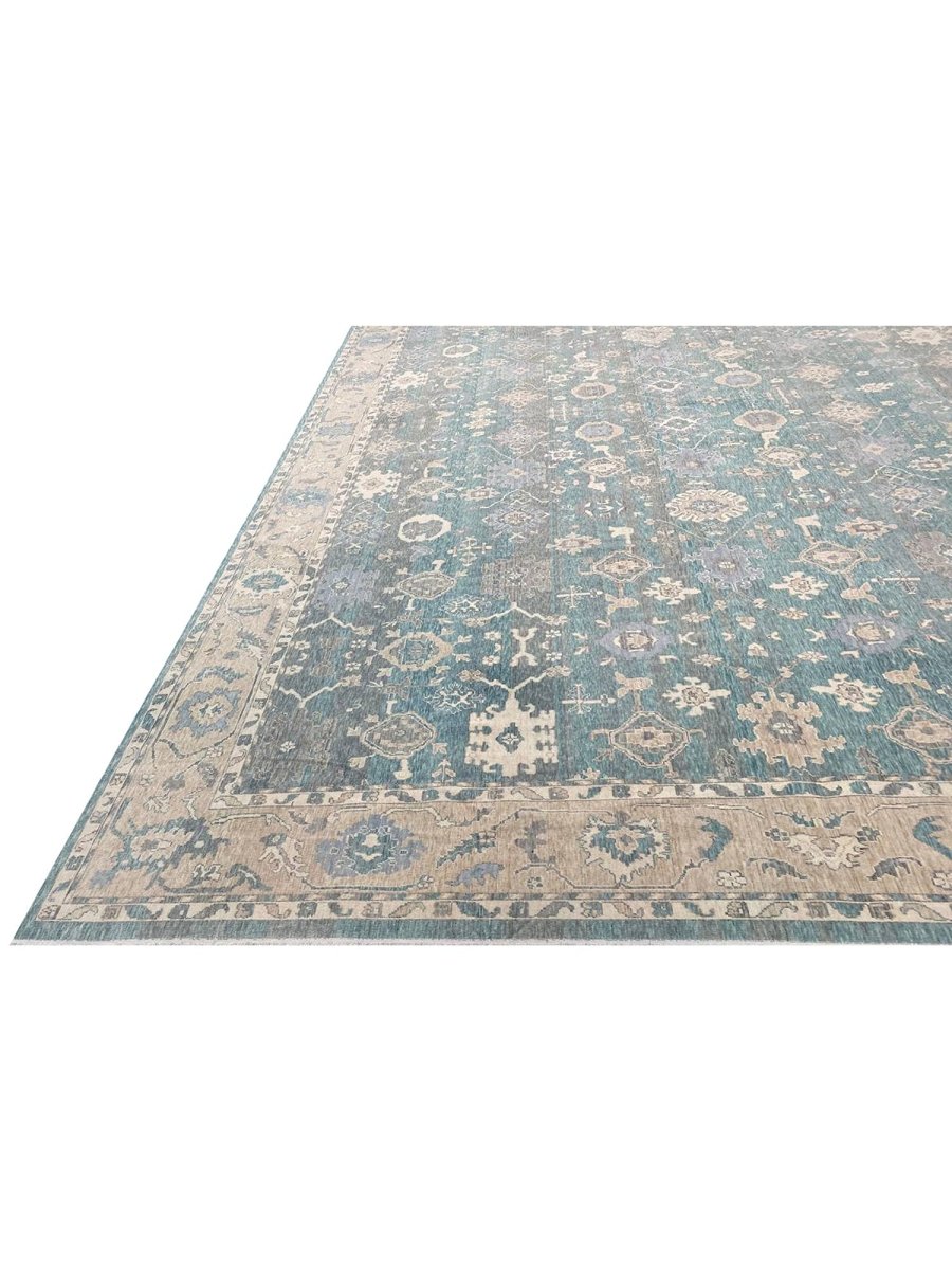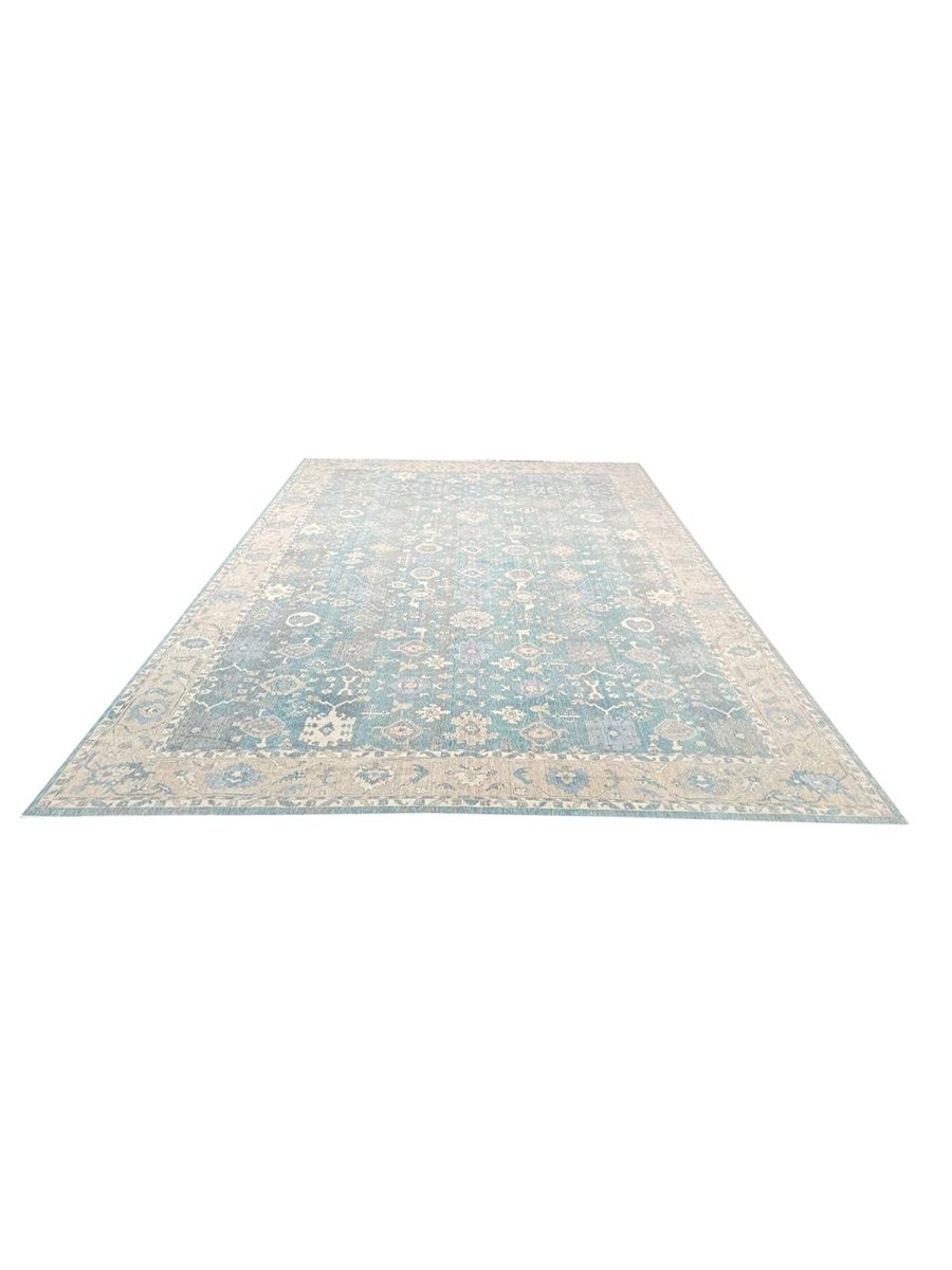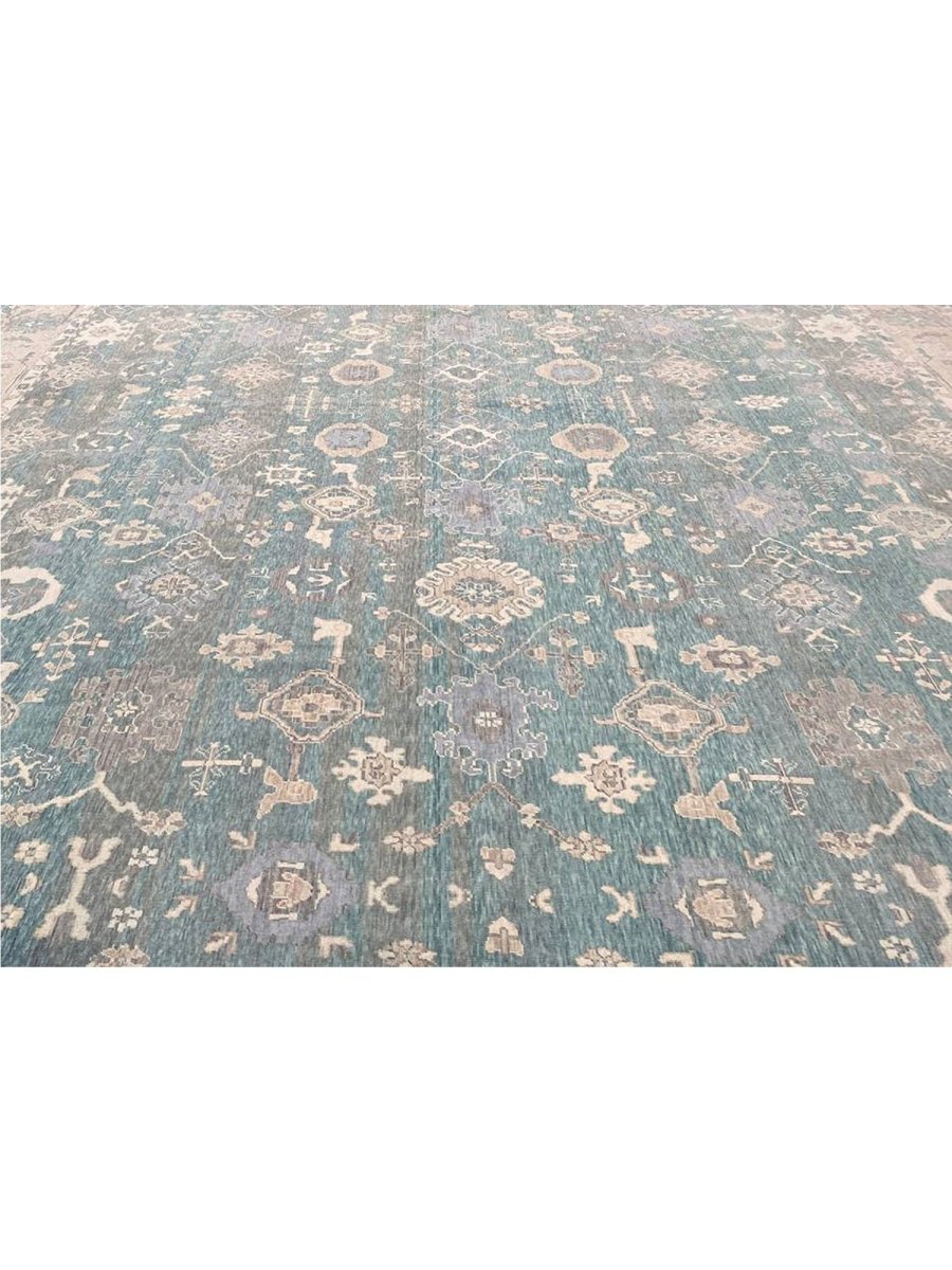 Experience the elegance of the 13x19 Turkish Oushak Area Rug, a unique piece that brings traditional beauty to your home. Hand-knotted from quality wool, this beautiful rug boasts a geometric pattern that adds charm to any room. It makes any space feel cozy and inviting. The stunning combination of beige, tan, charcoal, and blue colors make it a great option for any style. This outstanding item not only beautifies your space but also stands as a stunning piece of art. Get free shipping in the US.