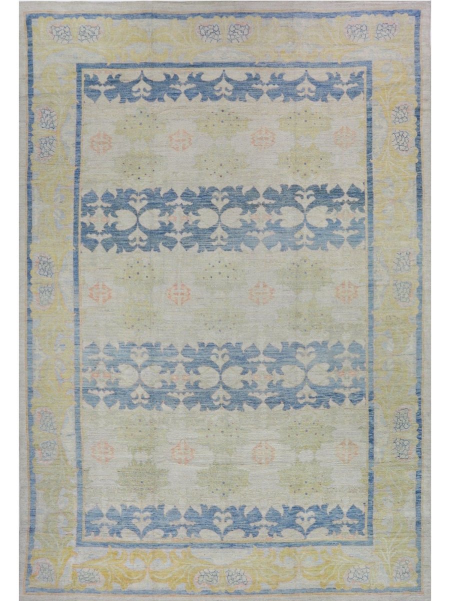 This 13x20 Persian area rug is a beautiful piece that brings charm and tradition into any room. Hand-knotted with care, it features a soft floral pattern that flows gently across the field. The primary colors are calming beige and blue, giving the rug a peaceful and elegant feel. Each detail is carefully woven using fine wool, offering both comfort and long-lasting quality.