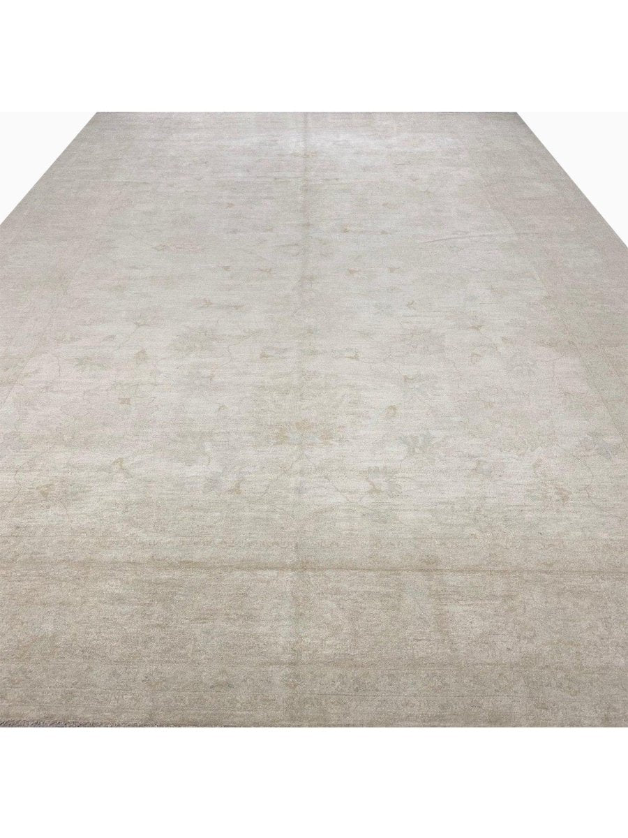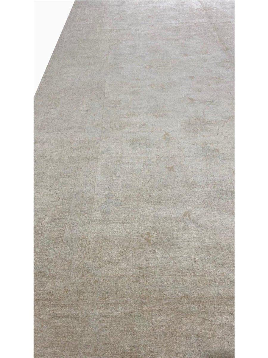 Enhance your home with the serene beauty of this 12x18 Oushak Style Area Rug. Handwoven in Pakistan, this rug captures the essence of traditional designs with its stunning all-over geometric pattern. The color palette features a soft, light beige background and gray, creating a calming and versatile foundation that complements various decor styles. Subtle accents of muted color are woven throughout the geometric motifs and borders, adding depth and complexity. Crafted from premium wool, this area rug offers a soft texture and lasting quality, perfect for anchoring large rooms such as spacious living rooms, dining rooms, or bedrooms. Its 12x18 size creates a focal point and brings timeless elegance to your space.