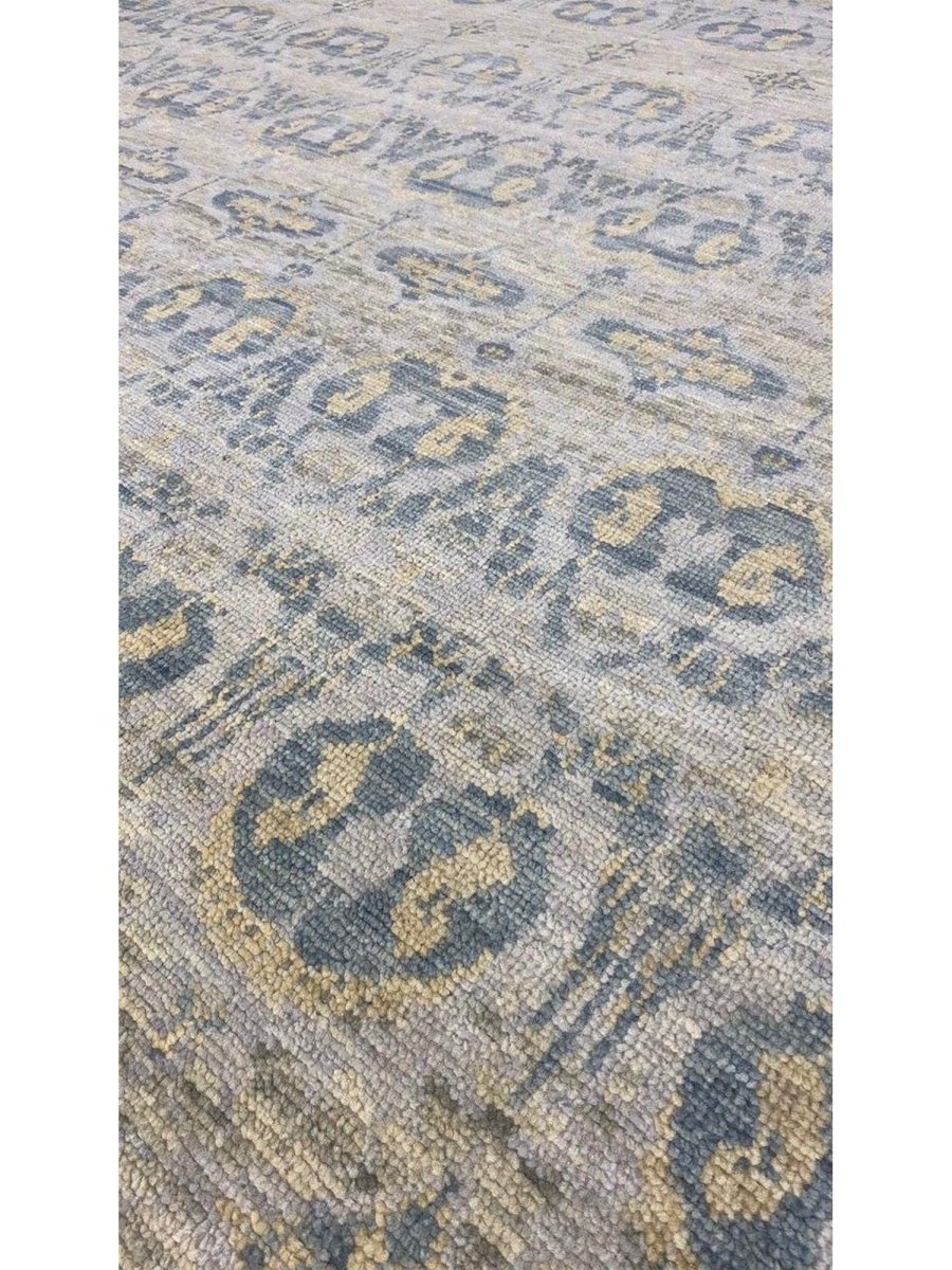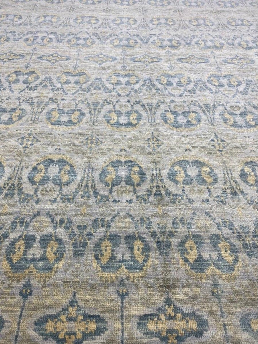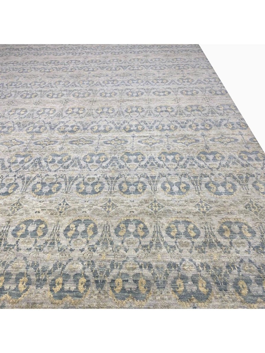 This rug is an exceptional choice for anchoring a vast living room, bringing a peaceful and cohesive foundation to an open-plan dining area, or creating a refined and tranquil ambiance in a large bedroom. Its subtle geometric design and gentle color palette ensure it will serve as a versatile and enduring piece, offering both enduring quality and a sophisticated visual appeal to your home.