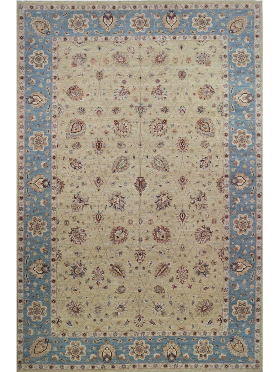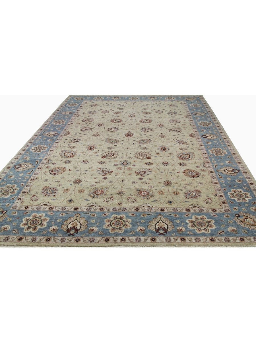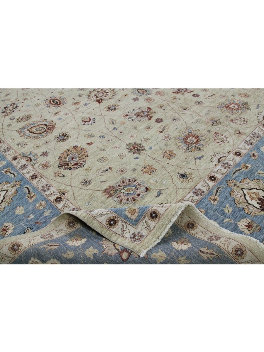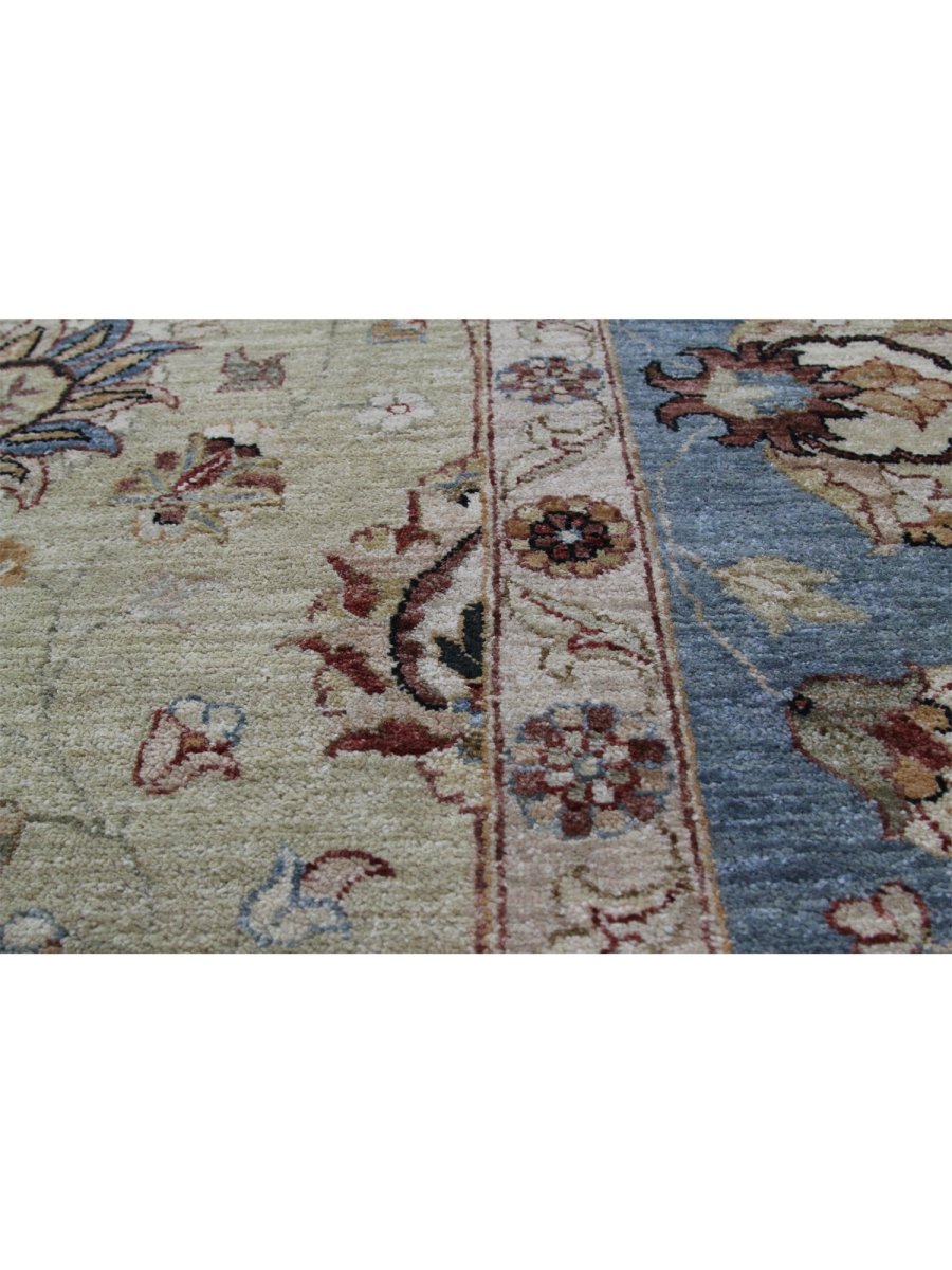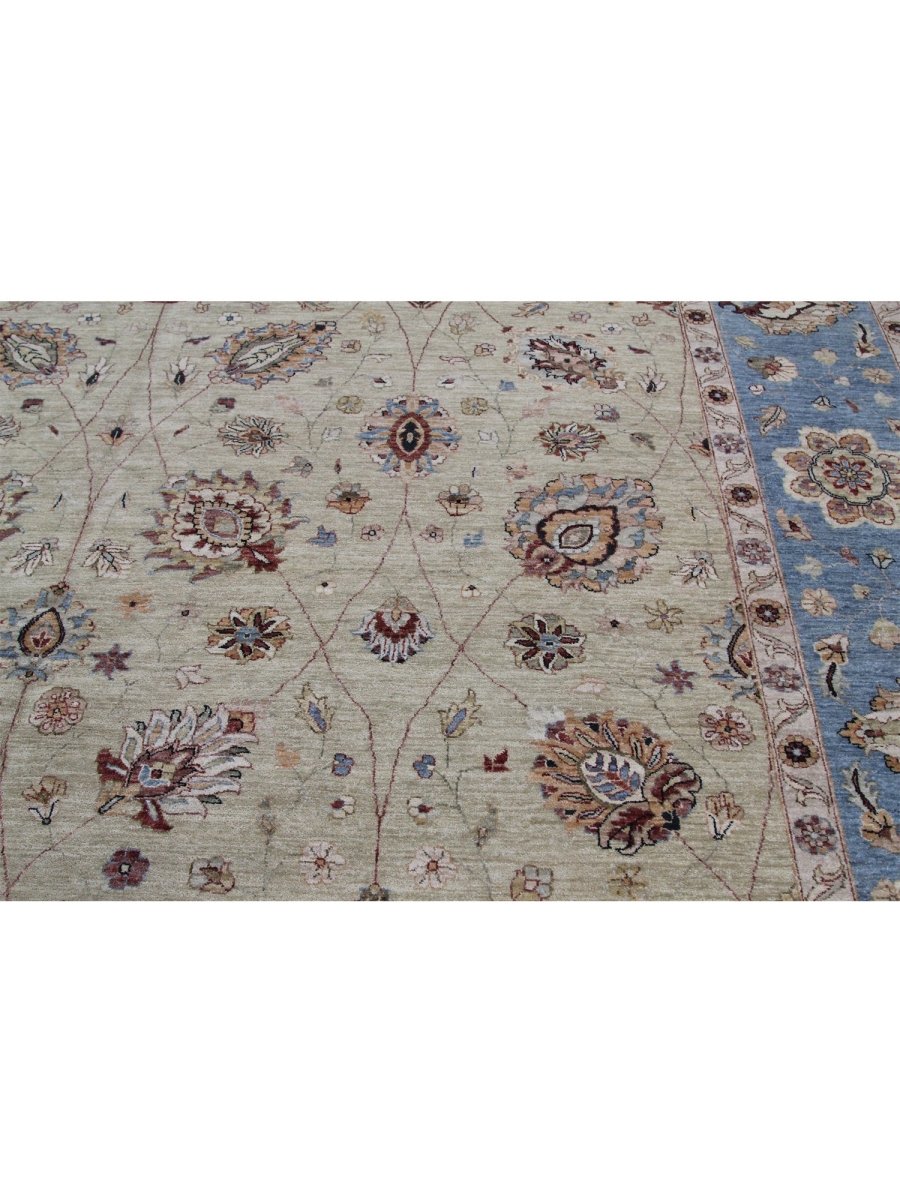 The 12x18 Handwoven Indian Agra Area Rug is a unique treasure that embodies the rich history of Indian weaving and will transform your living area. Made from high-quality wool, this gorgeous traditional rug features a floral design that blends in perfectly with any type of interior design. It provides a friendly atmosphere and is perfect for large living spaces. It is a multipurpose addition to your house because of the striking blend of beige, brown, and blue hues that offer depth and character. This amazing carpeting is a stunning work of art that elevates your living area and goes beyond simple decoration. Take advantage of free US delivery.