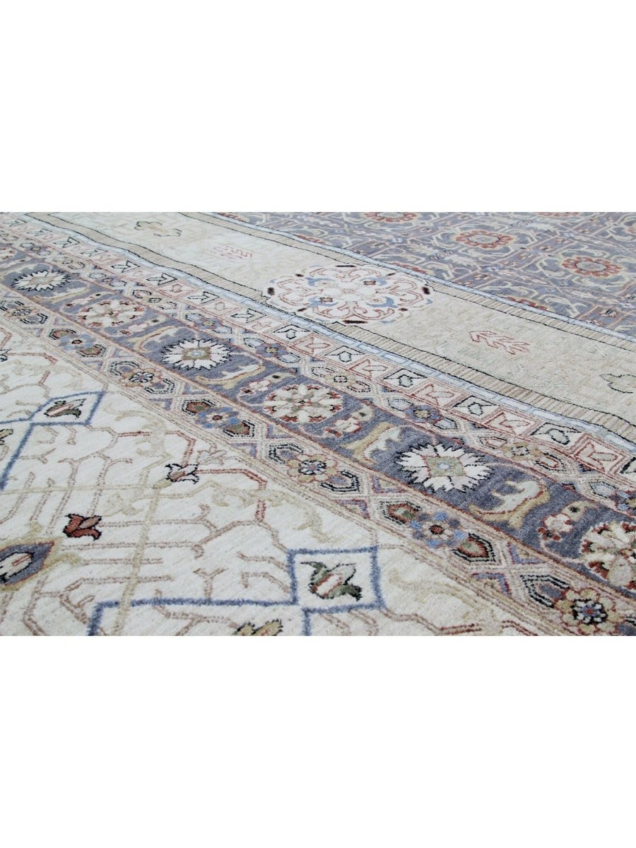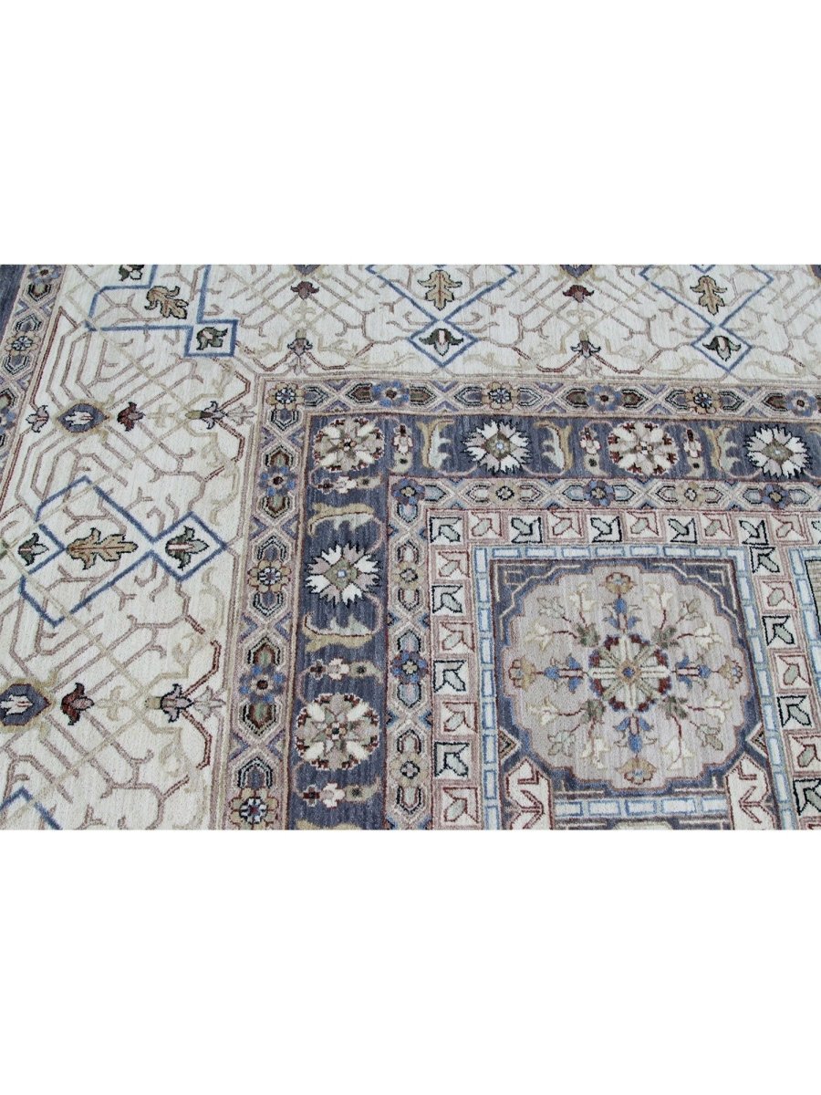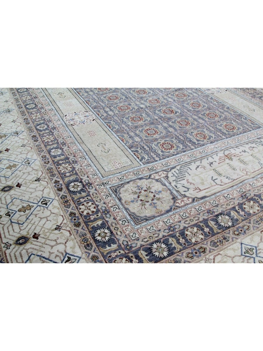 Handmade in India, this 12x15 Mamlouk Style Area Rug showcases intricate artistry and timeless craftsmanship. Crafted from a luxurious blend of high-quality wool and bamboo silk, it offers a soft texture with a durable weave, ensuring lasting beauty and performance. The surface features a captivating geometric pattern complemented by delicate floral motifs, adding depth and visual interest. A refined palette of muted tones including deep gray-blue, light gray, ivory, and subtle red accents creates a balanced and sophisticated look. Thoughtfully crafted by skilled artisans, this rug reflects heritage, precision, and attention to detail, making it a distinctive yet versatile decorative piece. Enjoy the convenience of free shipping across the United States.
