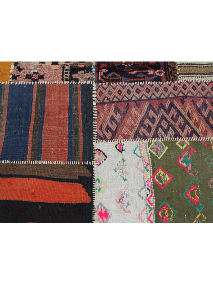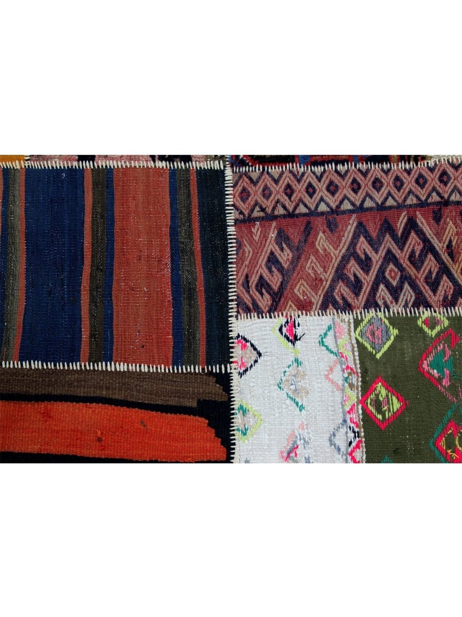 This 3x8 Persian patchwork runner blends red, pink, blue, brown, beige, orange, green, and black tones into a visually dynamic composition. The intricate patchwork is crafted from timeless Persian rug fragments, incorporating of geometric pattern. Each piece is carefully hand-stitched, emphasizing its artisanal craftsmanship and ensuring durability. The runner’s elongated design adding warmth and character to any setting. Its rich color palette and diverse patterns create a captivating visual contrast, making it a standout accent in any home. Whether placed in a cozy corridor or a spacious foyer, this rug enhances the ambiance with its timeless charm and unique heritage.