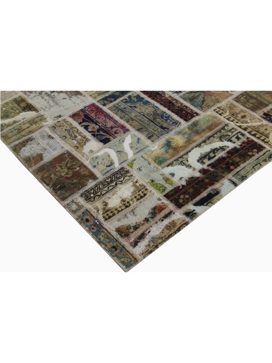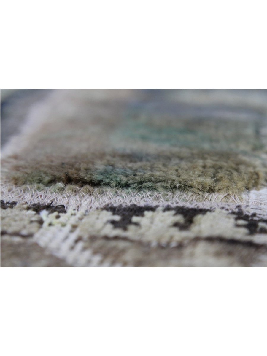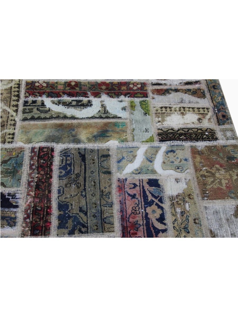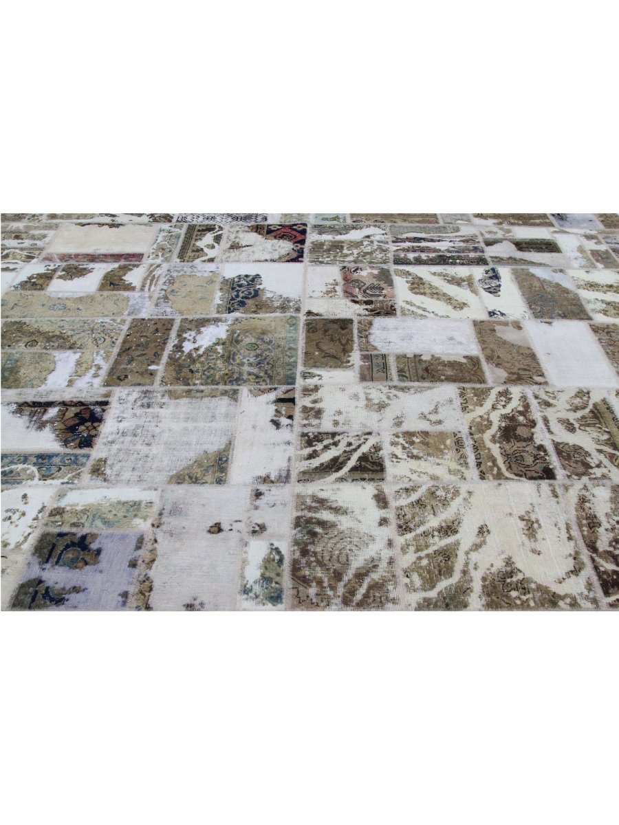 This 11x15 Persian patchwork rug accurately represents vintage charm and expert craftsmanship. It is hand-knotted from high-quality wool and boasts an intricate geometric pattern with a distressed finish. A one-of-a-kind statement piece, this rug enhances any interior with its unique design. The blend of beige, tan, brown, and rust makes it a perfect choice for grand living rooms, luxurious bedrooms, or elegant office spaces. Designed for both durability and style, this rug is an ideal investment. Free shipping in the US.