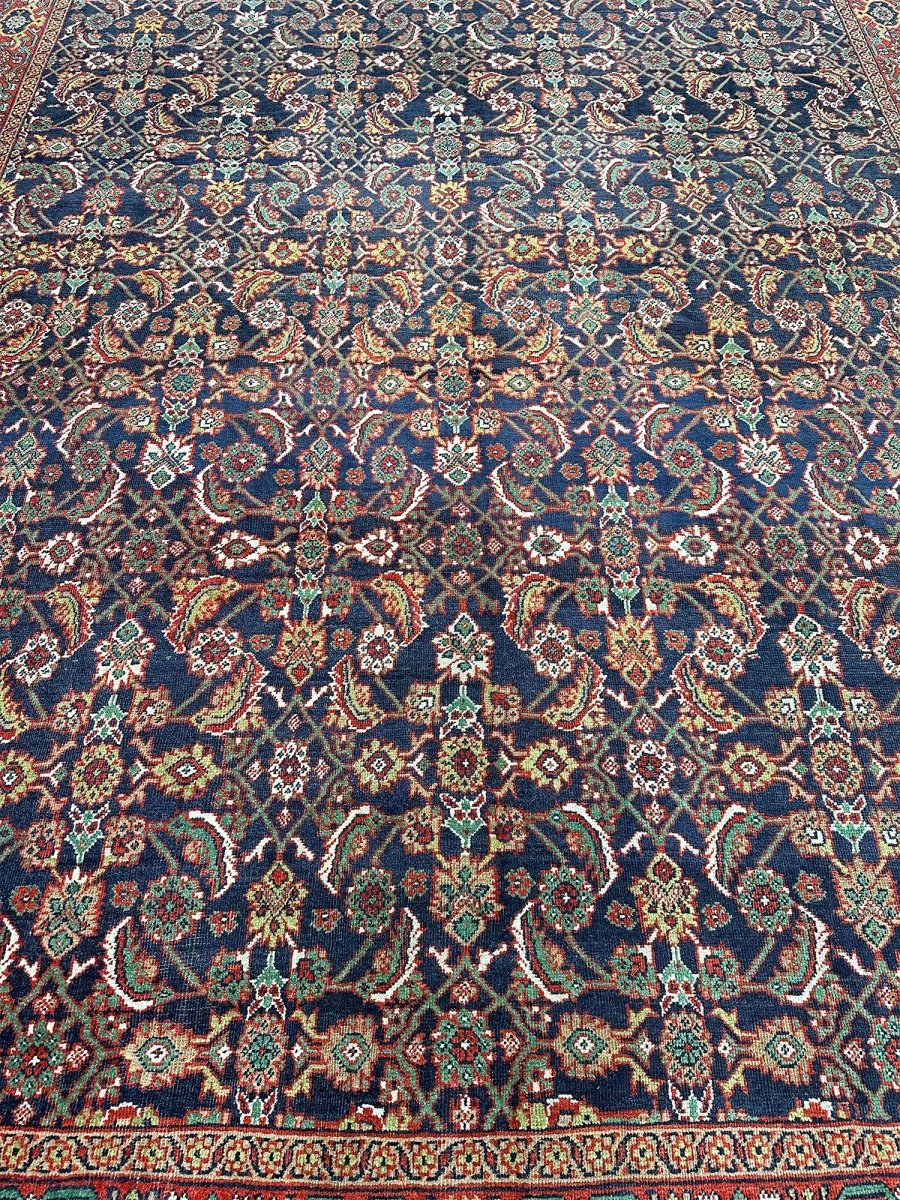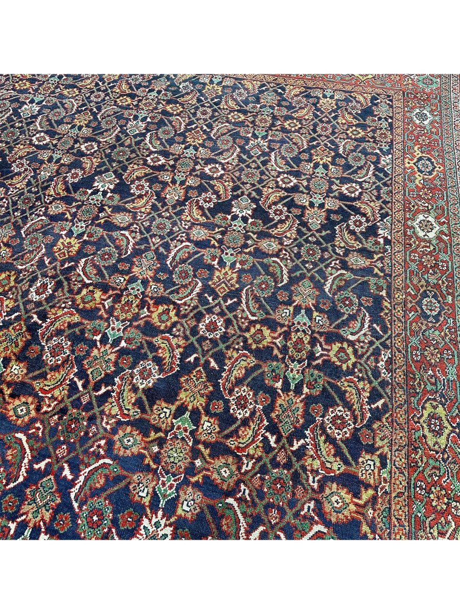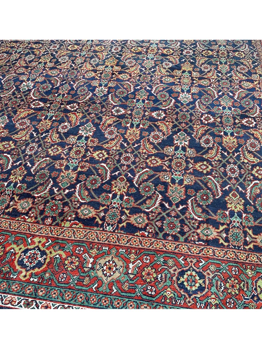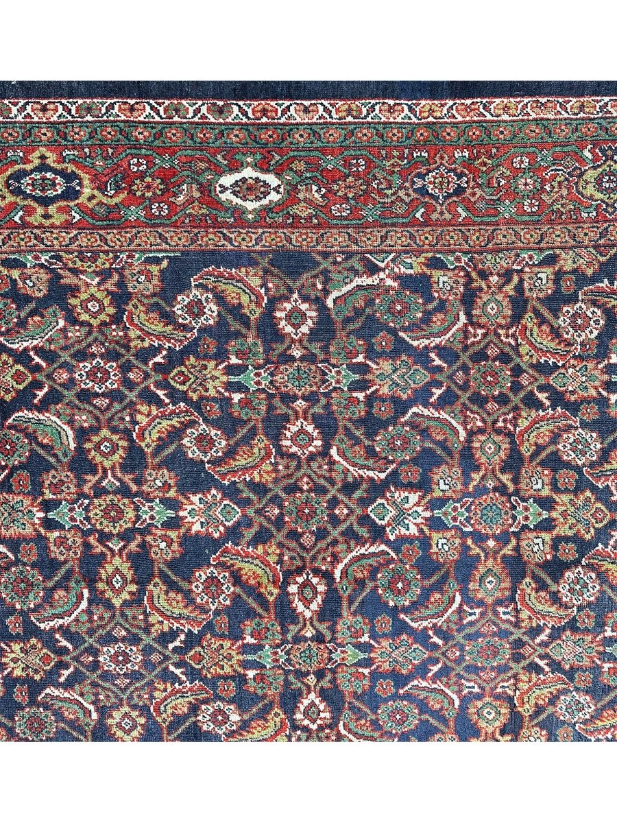 Bring timeless character to your home with this stunning 10x13 Antique Persian Mahal area rug. Hand-knotted by skilled artisans in Persia, this rug showcases a beautifully detailed geometric pattern that blends classic structure with stylized, traditional motifs.