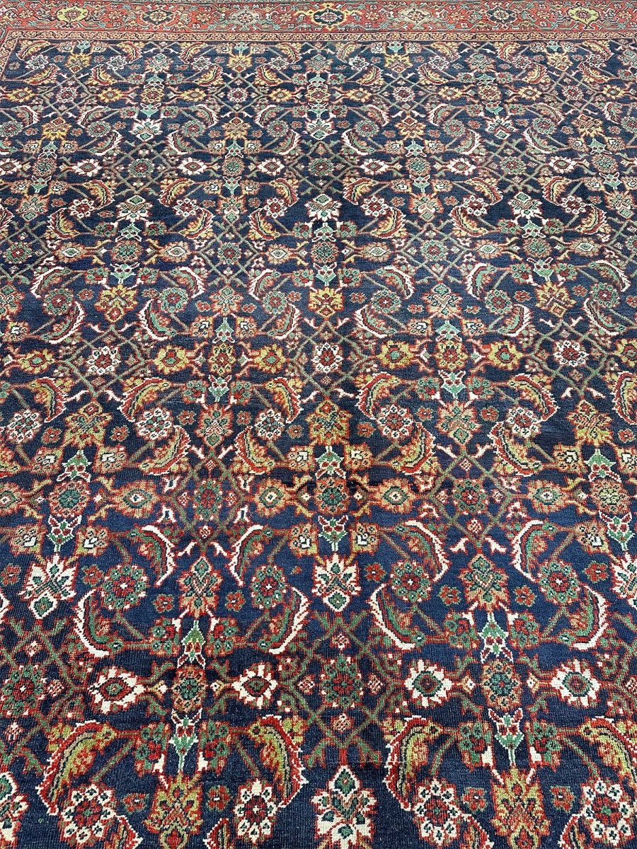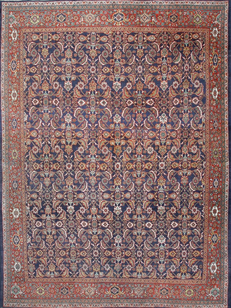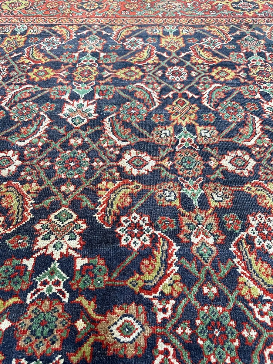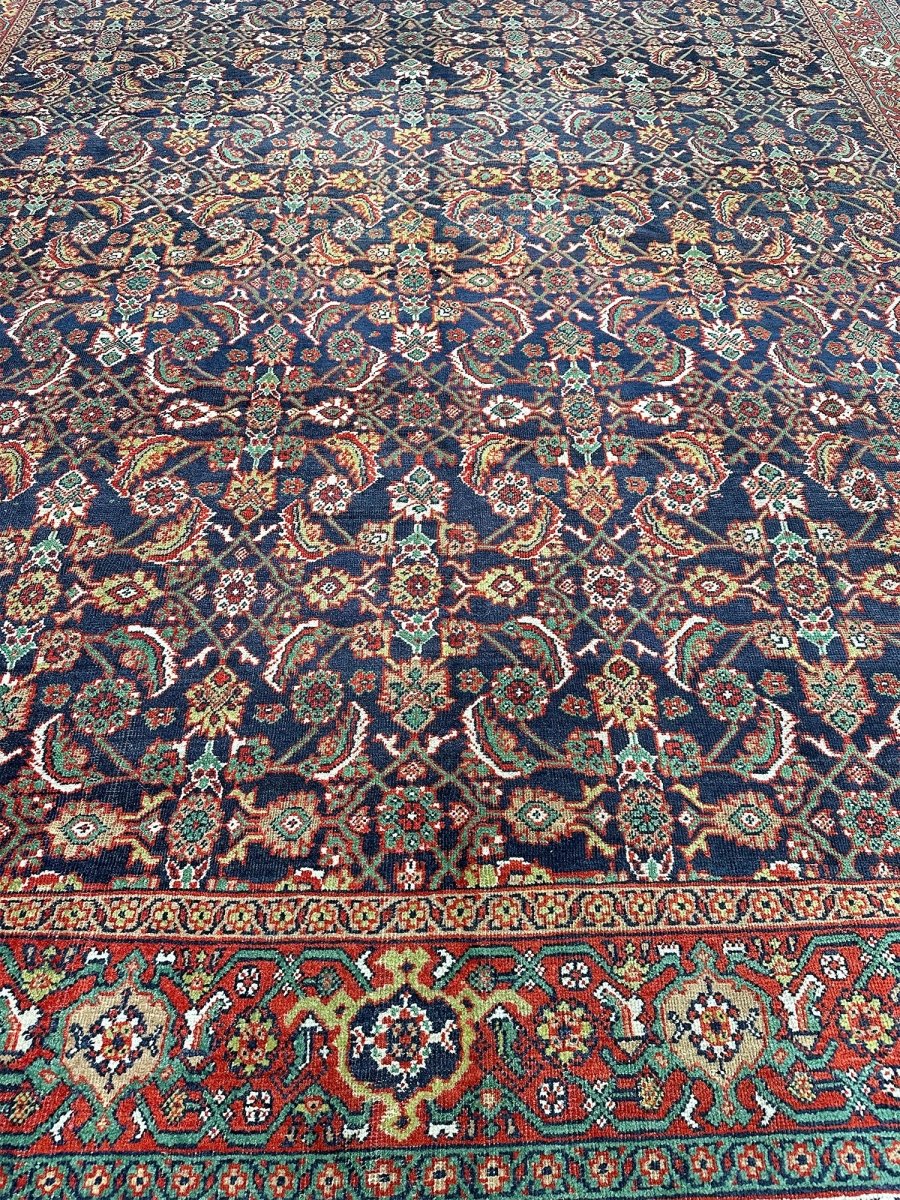 Bring timeless character to your home with this stunning 10x13 Antique Persian Mahal area rug. Hand-knotted by skilled artisans in Persia, this rug showcases a beautifully detailed geometric pattern that blends classic structure with stylized, traditional motifs.