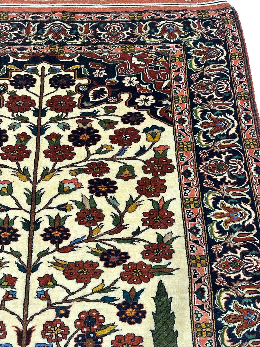 Relive the excellence of Persian weaving style on the 4'x6' Persian Tabriz Area Rug, which is made in Persia and really stands for the artisanship and sophistication that the Tabriz rugs have become known for. The rug bears floral patterns made in a rich color of ivory, rust, with some black and a touch of green to give a really dignified sense of professional sophistication into an ageless aesthetic. Hand-knotted from the best wool, this rug gives a soft touch along with high durability and natural resiliency to wear. This unique item offers free delivery all around the US.