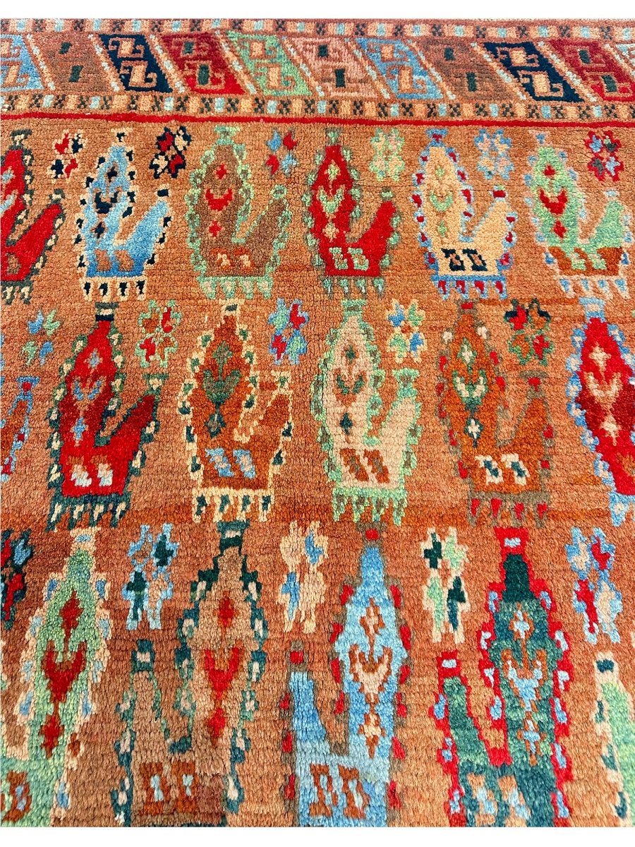 Enhance your living space with the 5x7 Old Persian Tabriz Area Rug, a truly one-of-a-kind piece that adds elegance and charm to your home. Hand-knotted from high-quality wool, this stunning traditional rug features a beautiful geometric pattern that brings sophistication to any room. Perfect for large dining rooms, cozy bedrooms, or as a stylish accent in your office, it creates a warm and inviting atmosphere. The lovely combination of rust, brown, peach, red, and green hues make it a versatile addition to your decor. This exceptional rug not only enhances your space but also serves as a captivating work of art. Enjoy free shipping in the US.