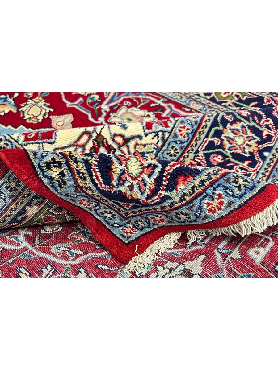 Elevate your space with the seamless design of a 5x7 hand-knotted Persian sarough area rug. Hand-knotted with elite wool in Persia, elaborated with a medallion design that will bring sparkle to every interior, and colored in vibrant red and blue. A complete package of warmth, comfort, and sophistication, rich with cultural and traditional aesthetics. Enjoy free delivery all around the US.