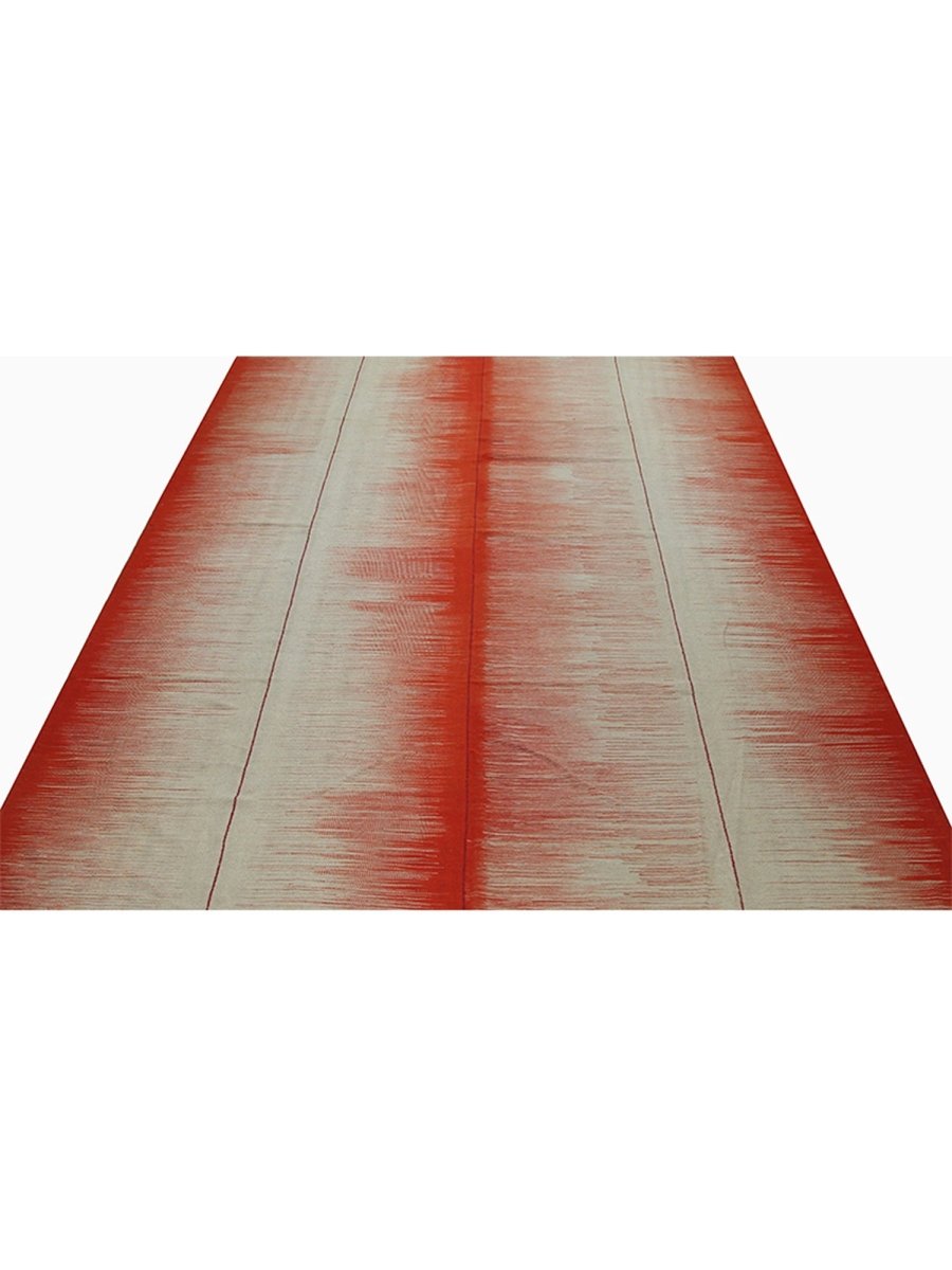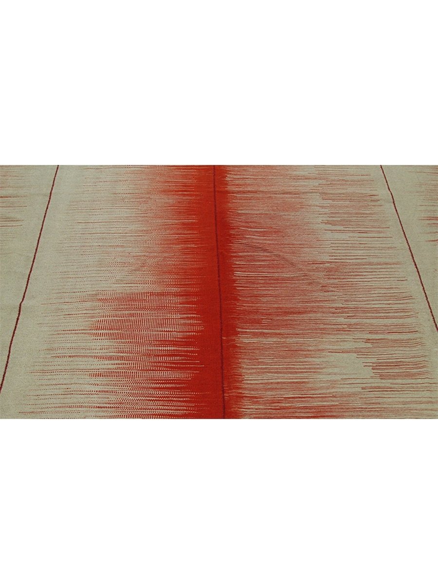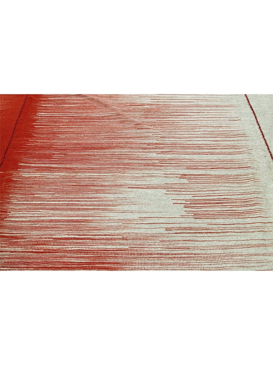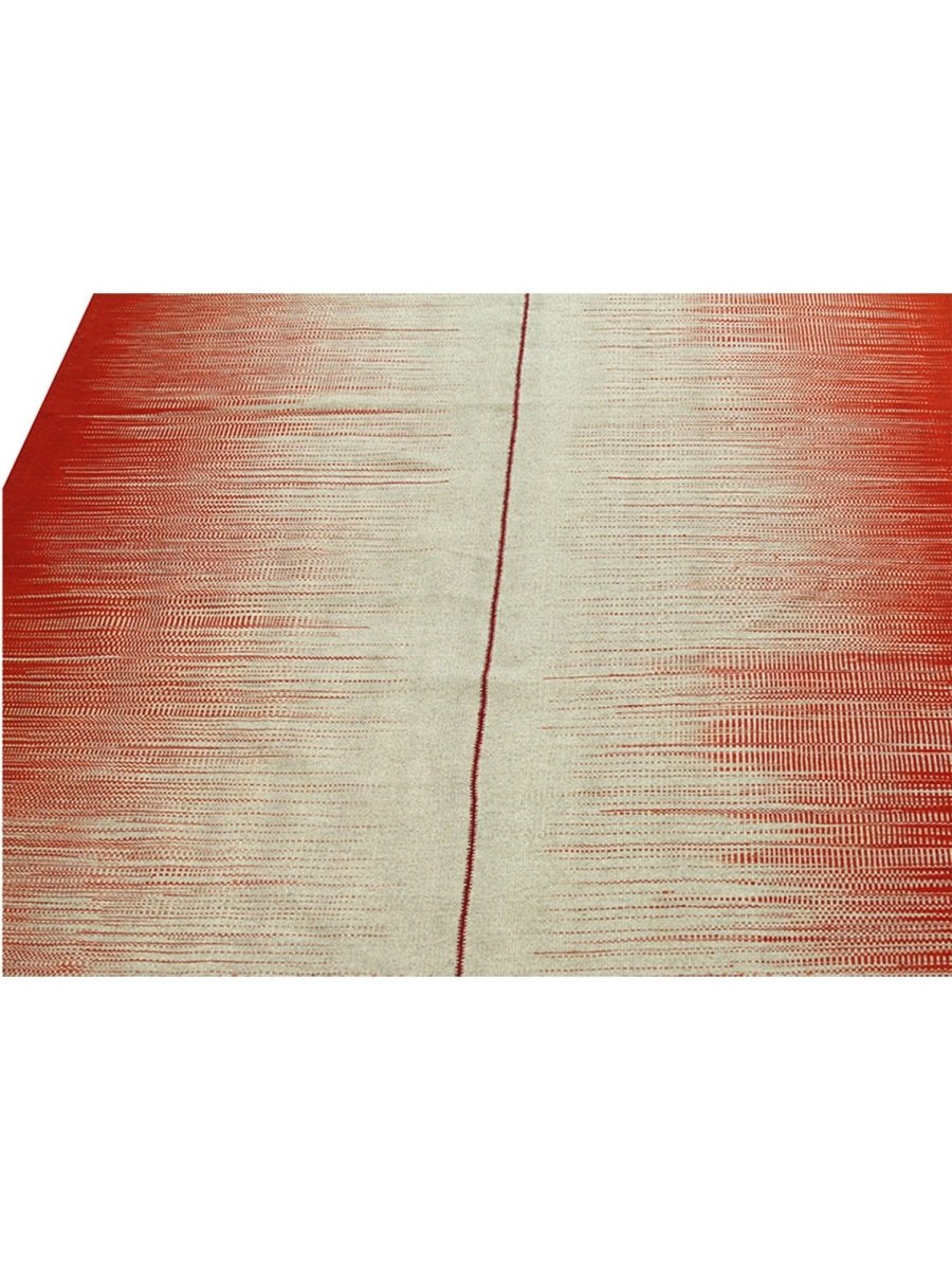 This new Persian-origin 10x13 Kilim area rug showcases expert handwoven craftsmanship. Made from durable wool, its flat-weave construction ensures a lightweight yet sturdy texture. The bold striped design features alternating bands of deep red and soft beige, blending seamlessly with subtle linear textures that add depth and dimension. The striking contrast of colors enhances its visual appeal, making it an eye-catching addition to any space. This rug brings warmth and character. Its versatile pattern complements a range of decor styles, while the breathable wool material offers comfort underfoot. Designed for both style and functionality, this rug is an excellent choice for those seeking durability and beauty in one piece.