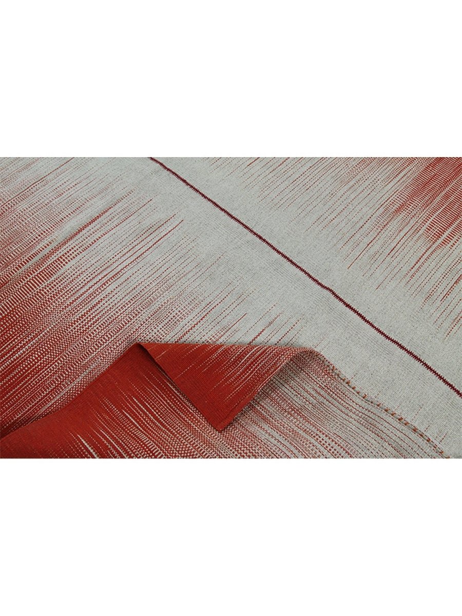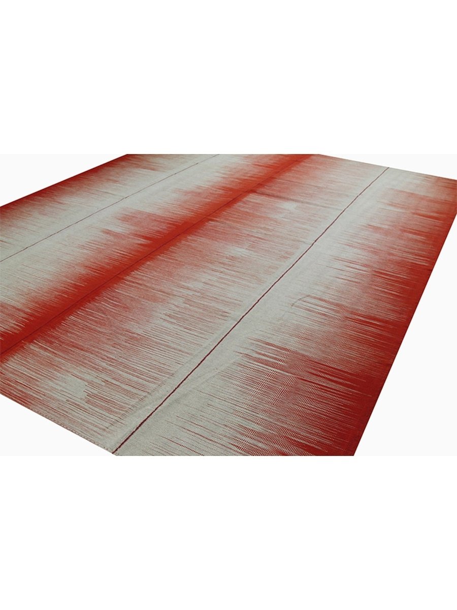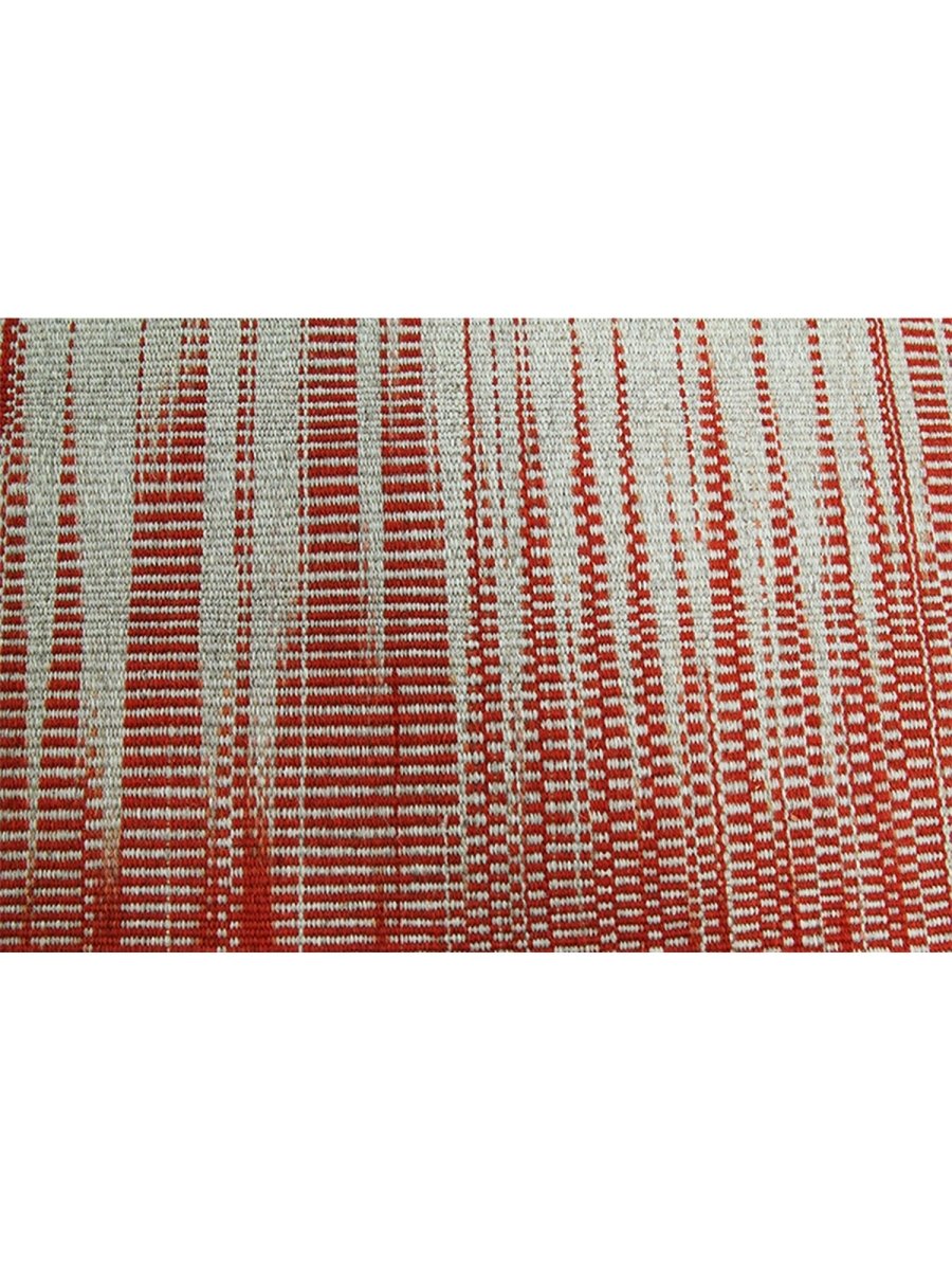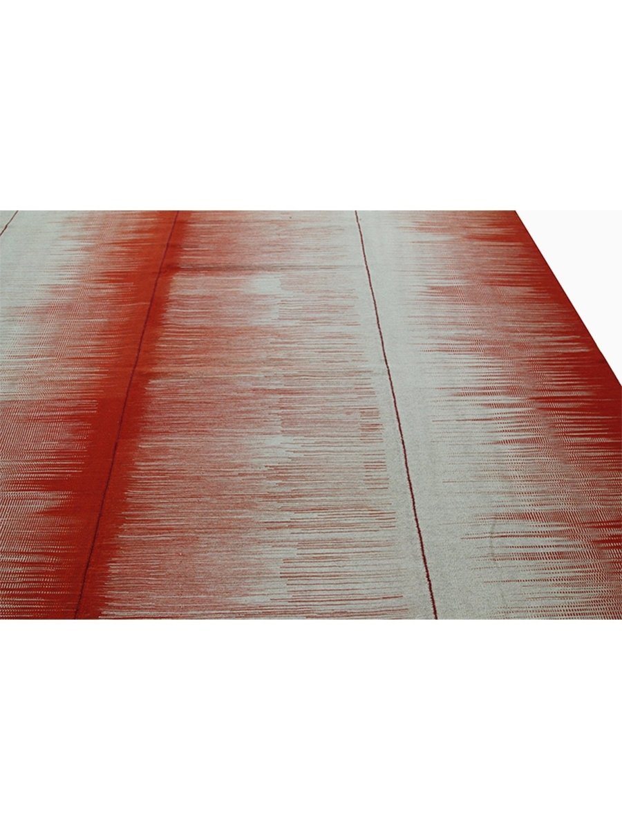 This new Persian-origin 10x13 Kilim area rug showcases expert handwoven craftsmanship. Made from durable wool, its flat-weave construction ensures a lightweight yet sturdy texture. The bold striped design features alternating bands of deep red and soft beige, blending seamlessly with subtle linear textures that add depth and dimension. The striking contrast of colors enhances its visual appeal, making it an eye-catching addition to any space. This rug brings warmth and character. Its versatile pattern complements a range of decor styles, while the breathable wool material offers comfort underfoot. Designed for both style and functionality, this rug is an excellent choice for those seeking durability and beauty in one piece.