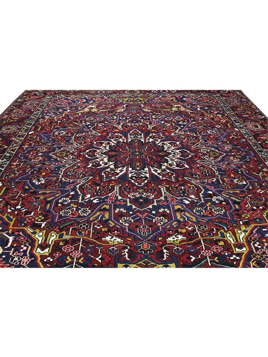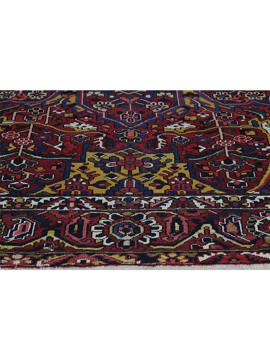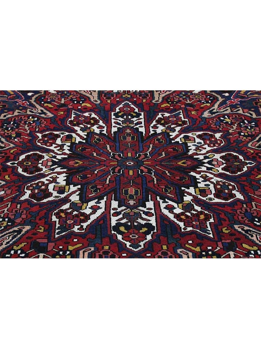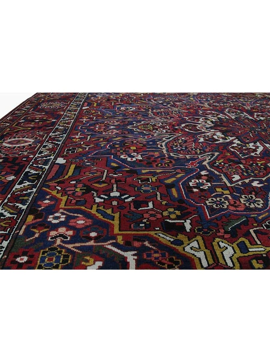 This 11x14 Old Persian Bakhtiari rug is a striking example of traditional Persian craftsmanship. Featuring a bold central medallion, the rug is richly adorned with intricate floral and geometric motifs that radiate outward into a dense, symmetrical field. Hand-knotted from high-quality wool, it offers durability and a luxurious feel underfoot.