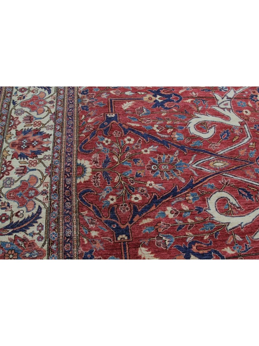 Designed in Pakistan, this 12x15 Heriz Style area rug brings timeless elegance to your space. Crafted from high-quality wool, it possesses a soft texture and durable weave, making it a beautiful, long-lasting addition to the home. It features a captivating geometric pattern across the surface. The rug displays vibrant tones, including deep red, deep blue, and beige, creating a refined, balanced look. Its generous size makes this area rug perfect for anchoring spacious living rooms, dining areas, and bedrooms, adding warmth and character. This craftsmanship reflects heritage skill and detail, making it a subtle, standout piece. With free shipping across the United States, this wool rug is an inviting addition to your decor.