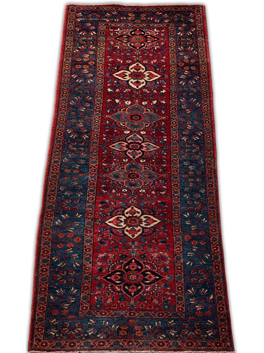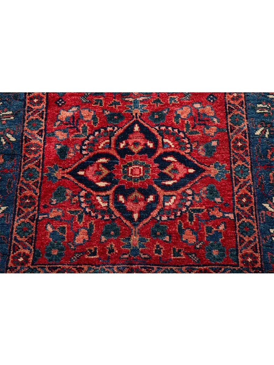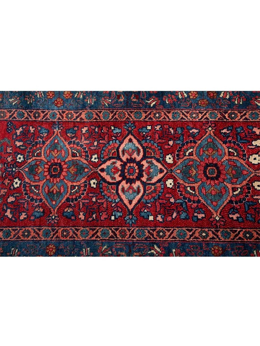 Elevate your space with this impressive 3x10 Old Persian Heriz Runner Rug, expertly hand-knotted in Persia. The intricate layout includes delicate motifs, vines, and palmettes, creating a sense of traditional beauty and artistry. The field is presented in a beautiful rich tone, providing a serene backdrop that highlights the detailed design. A striking border, rich in red, frames the rug, providing a warm contrast and completing the traditional look. The pattern details are highlighted in complementary colors, such as red, deep blue, and pink adding depth and visual interest. This runner is perfect for hallways, entryways, and narrow spaces creating a luxurious foundation and defining the area with timeless style. Enjoy the convenience of free US shipping.