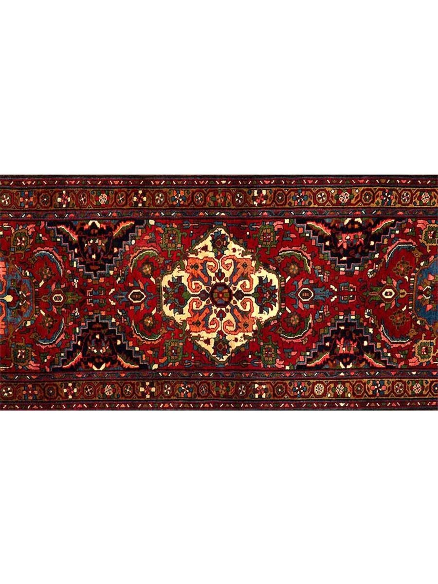 Discover the rich history and intricate beauty of this 3x11 Old Persian Bakhtiari Runner Rug. Hand-knotted in Persia, this traditional rug features a captivating medallion pattern that fills the entire field with repeating stylized motifs, possibly a repetitive design. The color palette is warm and inviting, with a field in beige, and the all-over pattern rendered in red, blue, pink and ivory. Crafted from fine wool, this rug offers both exceptional durability and a comfortable texture underfoot. The medallion design creates a sense of continuous pattern and traditional charm, perfect for adding warmth and style to a hallway, entryway or any other narrow space. Enjoy the convenience of free US shipping.