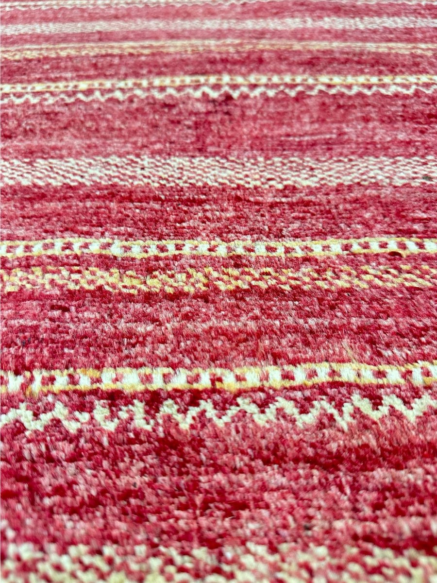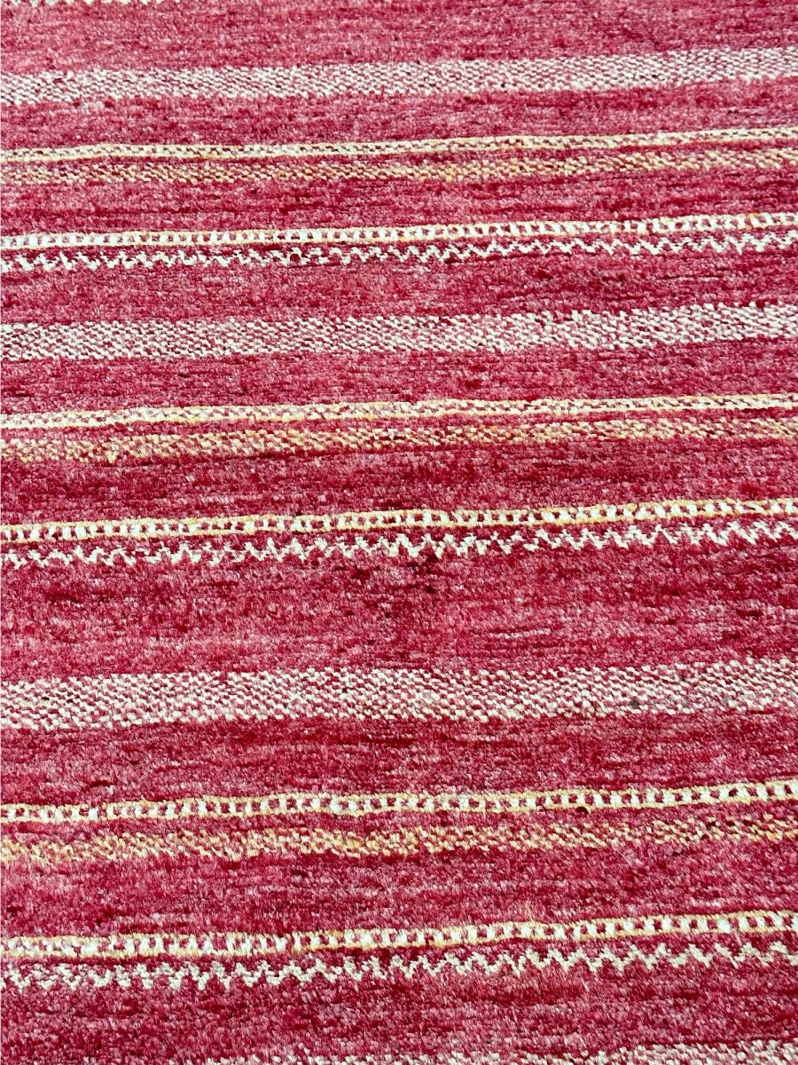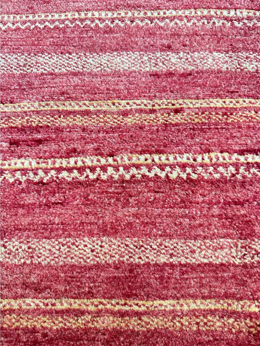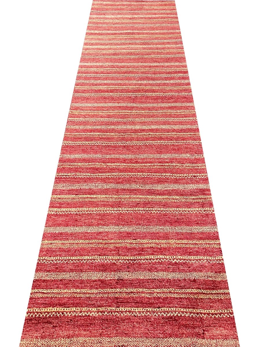 The 3x11 Modern Runner Rug is a unique treasure that embodies the rich history of Pakistani weaving. Made from high-quality wool, this gorgeous rug features a striped design that blends with any type of interior design. It is perfect for hallways, next to beds, and kitchen runners. The soft color palette and intricate patterns create a warm and inviting atmosphere. It is a multipurpose addition to your home, with a stunning blend of red and gold hues, offering depth and character. Take advantage of free US delivery.