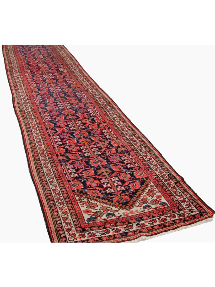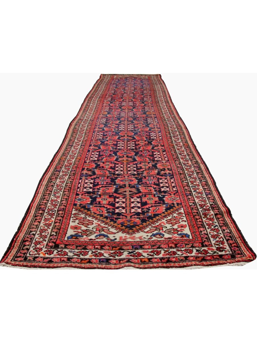 Introduce style to your hallway or long space with this impressive 3x17 Antique Persian Malayer Runner, expertly crafted in Persia. This area rug features a captivating geometric pattern that repeats along its substantial length, creating a sense of movement and visual interest. The deep red field provides a strong foundation for the design, beautifully contrasted by a vibrant beige border. Details within the pattern are highlighted with touches of red, beige, and hints of blue. This traditional rug is best suited for narrow corridors, stair landings, or beside a long dining table, adding both comfort and defining the space. Add a bold statement and warm texture to your home with this eye-catching rug. Enjoy the convenience of free US shipping.