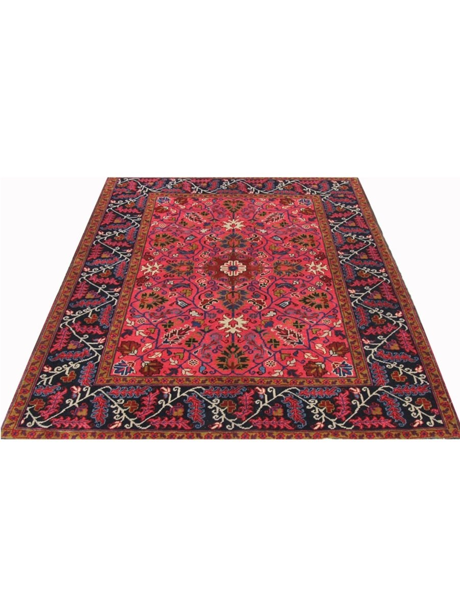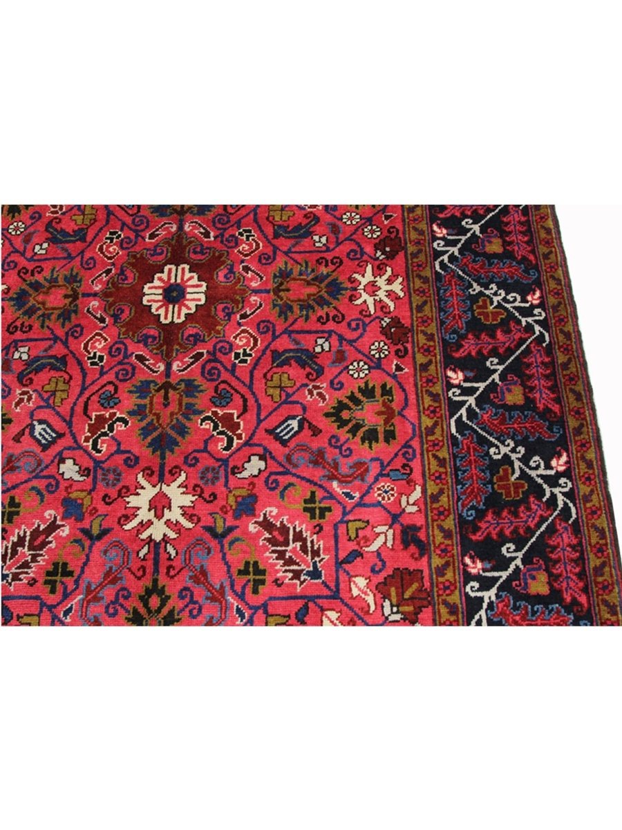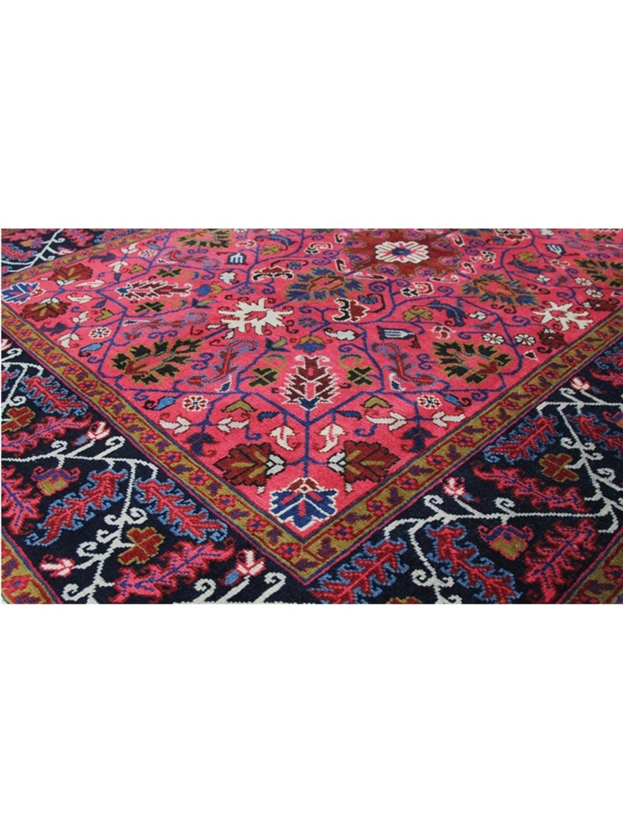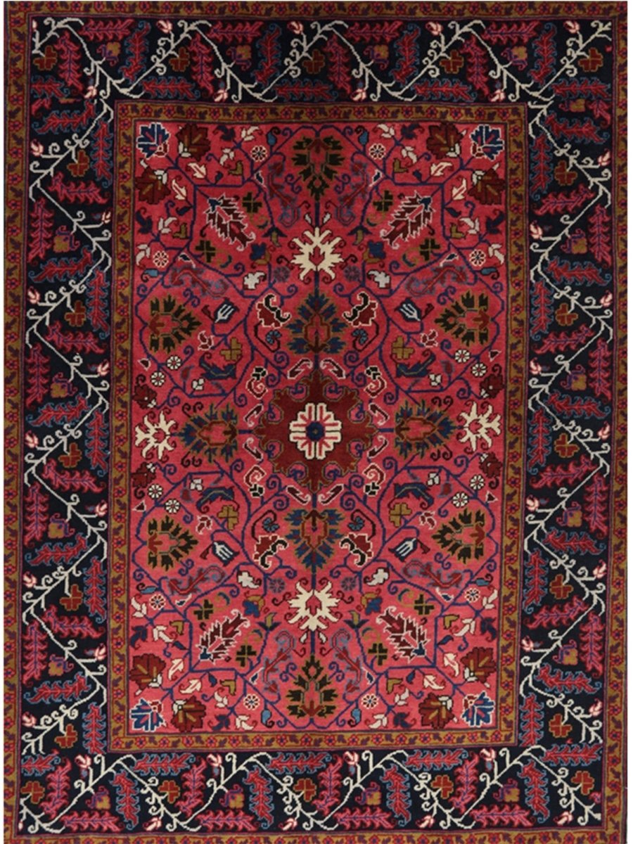 This 5x6 Old Persian Heriz Area Rug is a bold and timeless piece that brings tradition and beauty to any space. Its striking central medallion sits on a deep red field, surrounded by intricate floral motifs and angular vine patterns. The rich color palette includes navy blue, ivory, forest green, soft pink, and warm brown, giving it depth and character. Hand-knotted by skilled artisans, this rug reflects the craftsmanship and heritage of Persian weaving. The strong geometric layout is both classic and eye-catching, making it a perfect fit for a variety of settings. Whether placed in a living room, study, or bedroom, it adds warmth, elegance, and personality. Made of durable wool, this rug is built to last and includes free shipping within the US for your convenience.