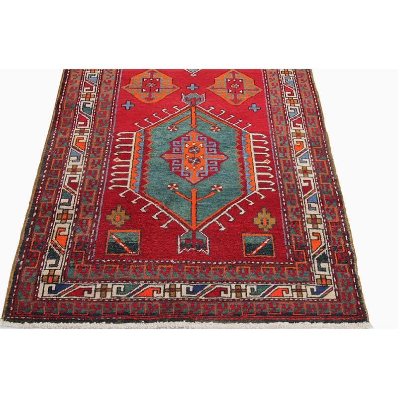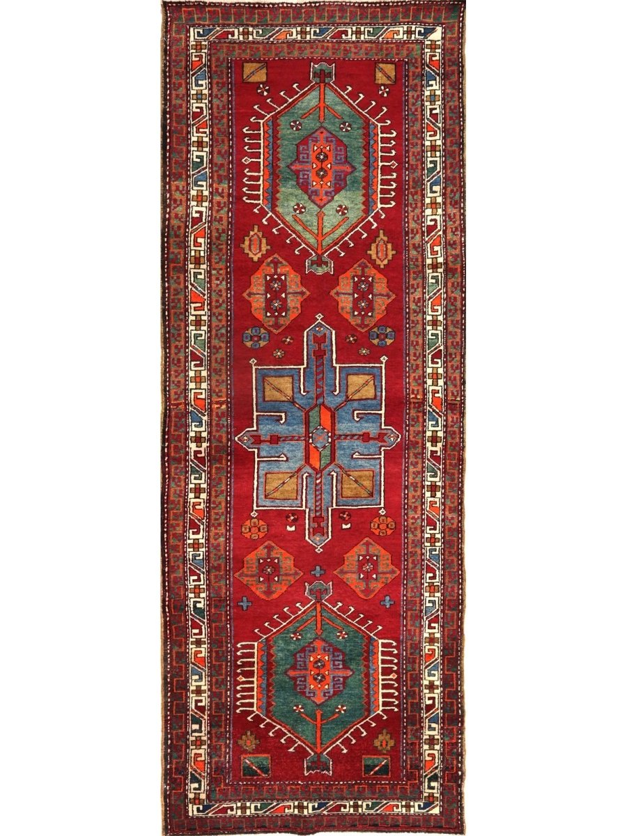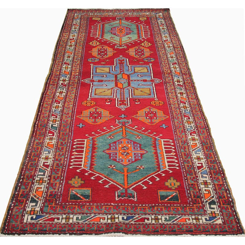 Experience luxury with this unique 4x10 Old Persian Heriz Runner Rug, reflecting traditional workmanship through its exquisite geometric pattern in rich red, beige, blue, and stunning orange. Hand-knotted from premium wool, this rug is ideal for enhancing your hallways, entryways, or kitchens. Its traditional embellishments create a cozy and welcoming ambiance, making it a perfect choice for any home. More than just a floor covering, this new rug showcases the rich legacy of Indian creativity. Enjoy free delivery on this gorgeous item within the United States!