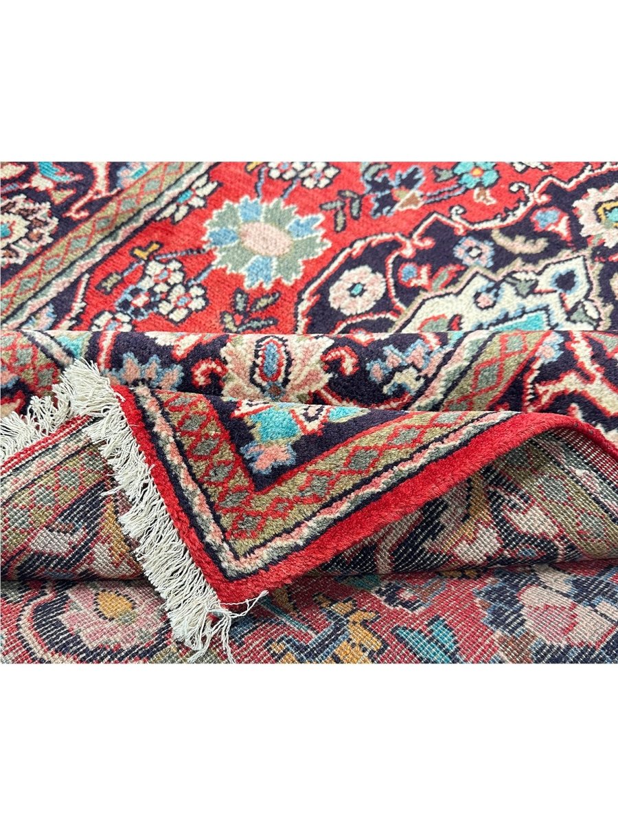 4x6 Persian Hamedan area rug, a sophisticated piece, perfect balance of cultural artistry with modern touches. This rug is from Persia, made using traditional hand-knotting technique, with a light medallion pattern and a blue & red colorway. This wool rug is made from top-quality wool and not only feels soft, but is a tough material that will withstand wear for generations. Get the benefit of our complimentary shipping across the US.