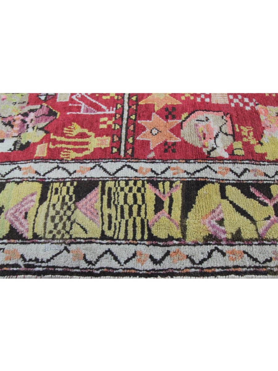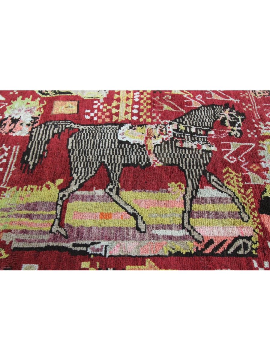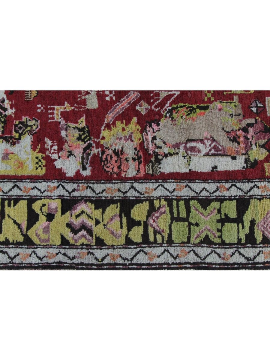 This 4x9 Antique Russian Runner Rug, hand-knotted from premium wool adds a unique touch to your hallway or entryway. Featuring an eye-catching animal pattern in vibrant red, deep black, warm yellow, soft beige, and rich brown, it brings a blend of artistic flair and traditional craftsmanship. The plush texture offers comfort underfoot, while its durable construction ensures it withstands everyday wear. Perfect for adding character and warmth to both eclectic and classic interiors. Enjoy free shipping within the US for a hassle-free purchase.