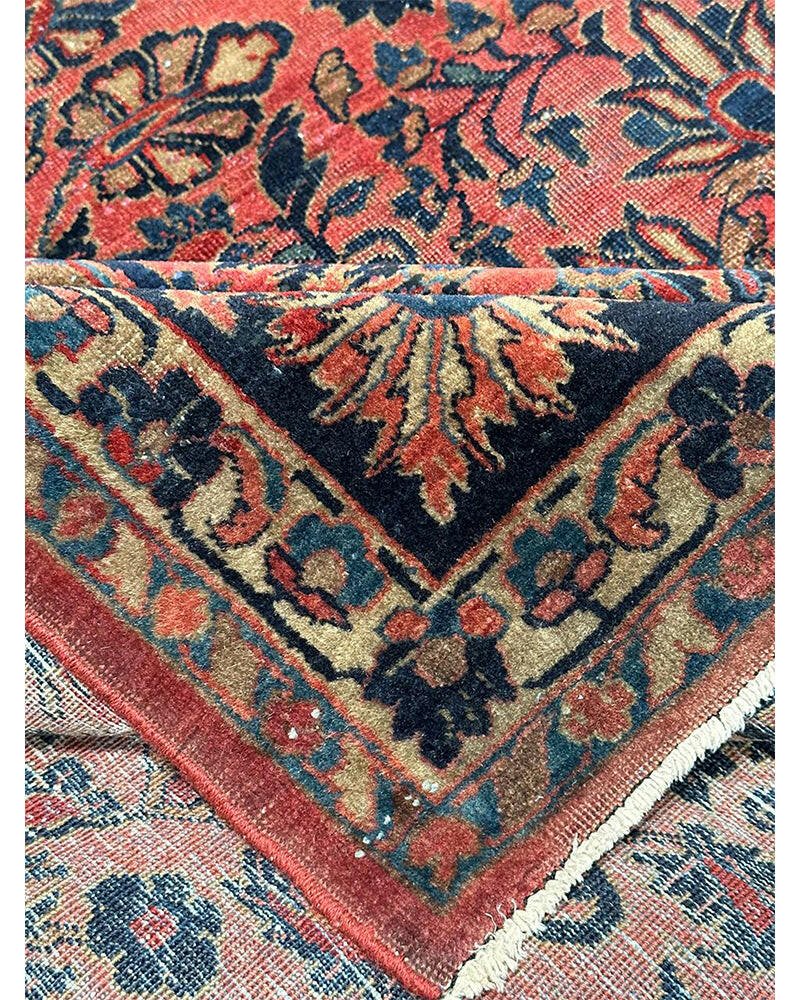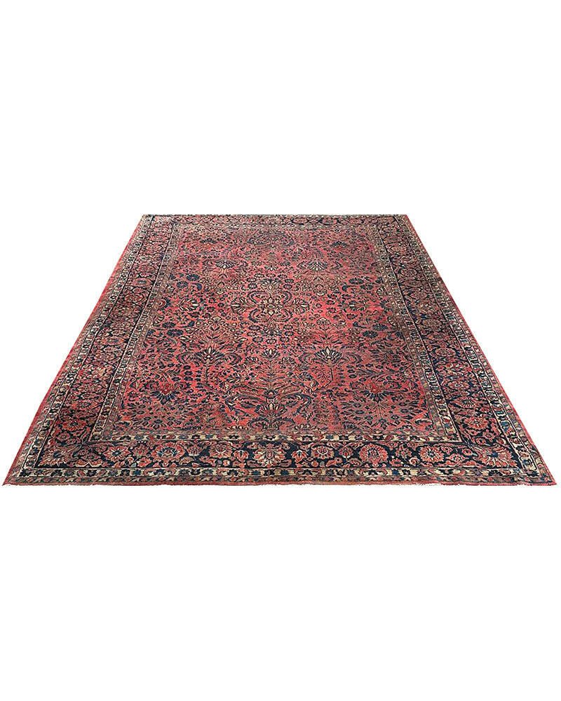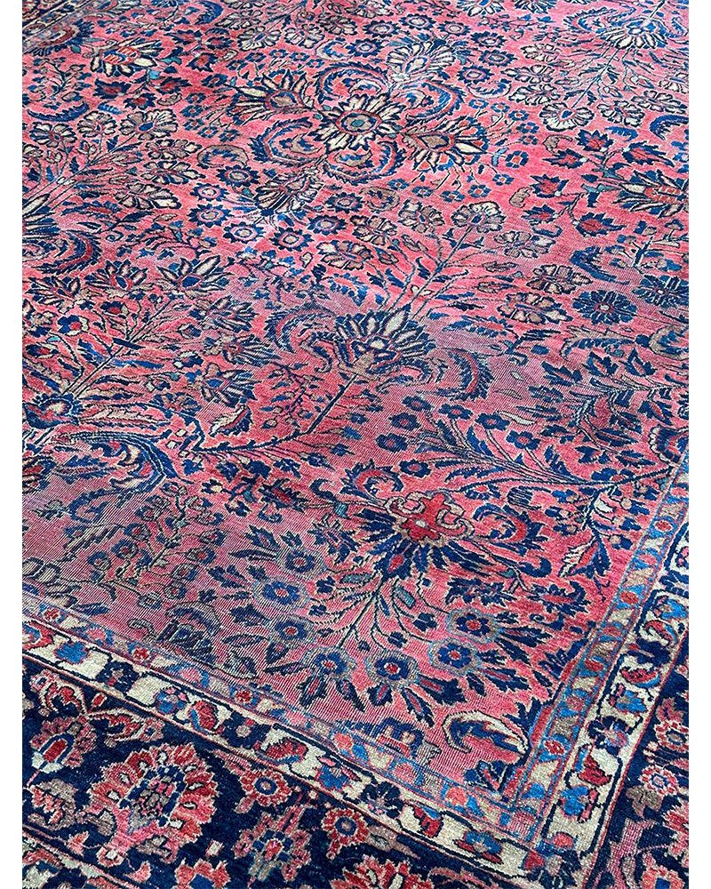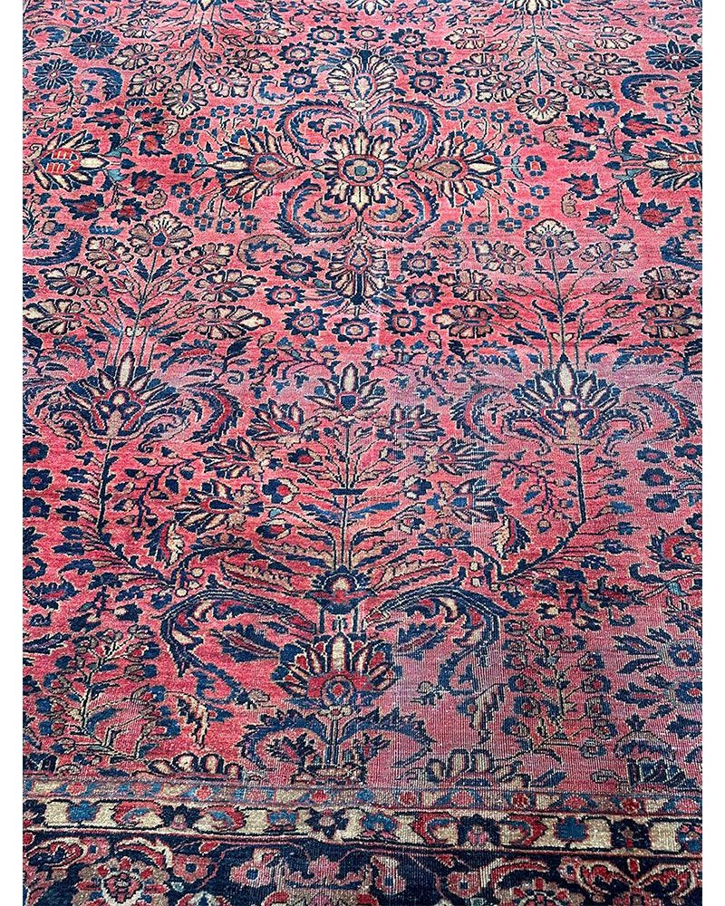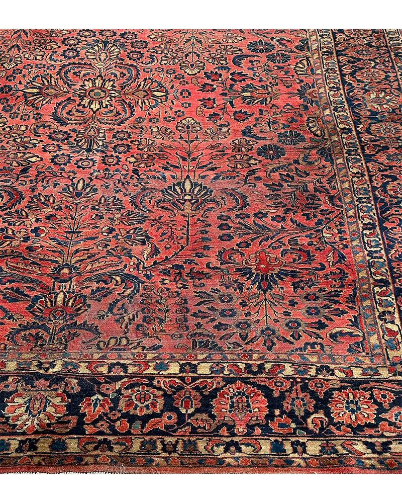 Step into a world of enduring beauty with this exquisite 8x11 Antique Persian Sarouk area rug. Hand-knotted with care in Persia, this piece features a captivating all-over floral pattern that fills the entire field with intricate design and detail. The dominant colors are a rich red, pink, and a deep blue, creating a classic and harmonious combination that speaks to the artistry of traditional Persian weaving. Crafted from fine wool, this Sarouk rug offers both durability and a soft underfoot feel, perfect for adding warmth and character to your living room, dining room, or entryway. Its substantial size makes it an ideal anchor for various furniture arrangements. Enjoy the convenience of free US shipping.