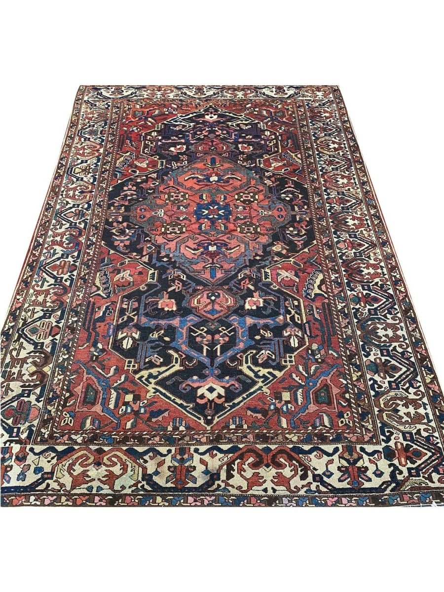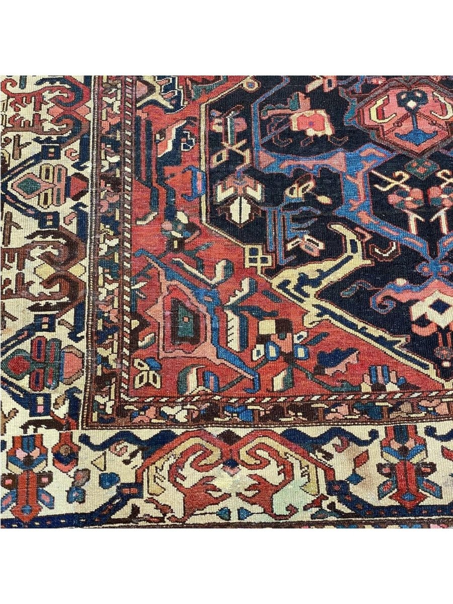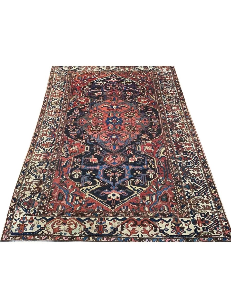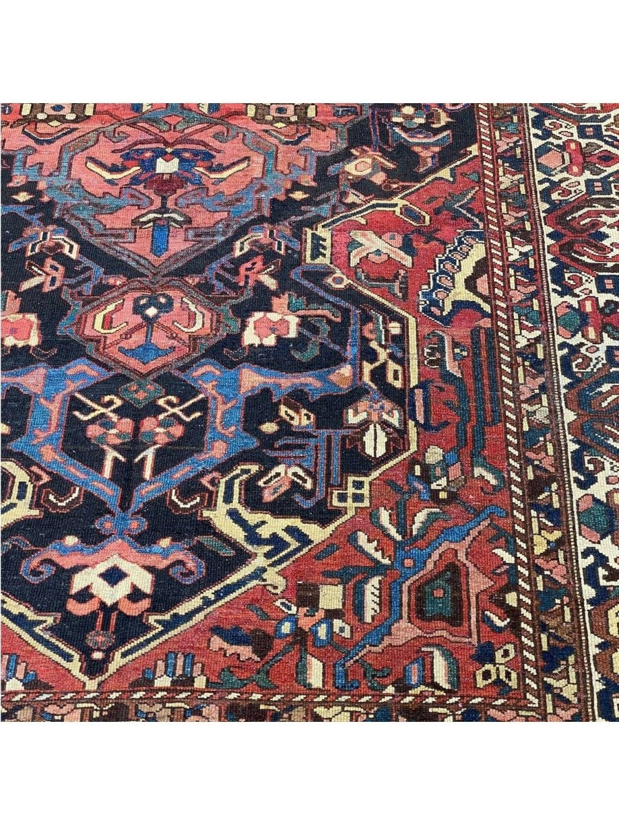 Add a touch of casual style to your home with 8x12 Antique Persian Bakhtiari Area Rug, crafted in Persia. This traditional rug features a captivating medallion pattern, showcasing a simple yet effective design in a red, navy blue, soft ivory, and black palette. Its durable wool construction ensures longevity and easy care, perfect for living rooms, bedrooms, and dining spaces. The clean finish reflects quality craftsmanship and design. This piece effortlessly brightens, adding warmth, texture, and a relaxed feel. A blend of simple design and function, it easily enhances any space. Enjoy the benefit of free shipping across the United States. Each rug offers a distinct look, with subtle variations inherent to its creation.