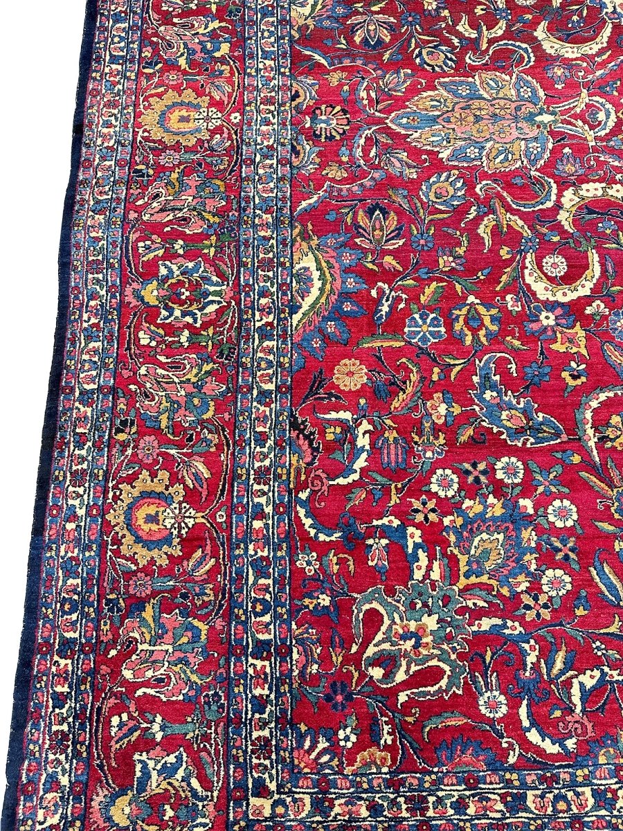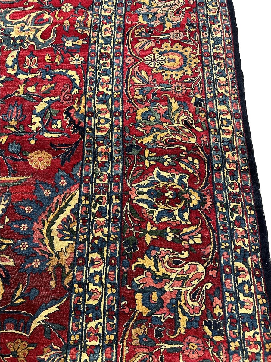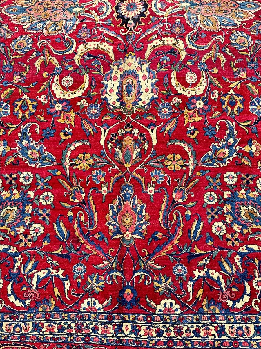 Discover the timeless elegance of this 10x13 Antique Persian Yazd area rug, expertly crafted in Persia. This rug has a traditional central medallion design, nicely framed by floral and vine patterns throughout the field and border. The rich and classic color palette is dominated by red, and intricate motifs are featured in blue, ivory, and gold. Made of high-quality wool, this rug provides remarkable durability and a high-quality feel against your feet. The medallion design is a classic symbol of Persian carpet art, ideal for adding drama to a living room, dining room, or large bedroom. Its large size and elegant finish make it an important addition to any decor. This antique Yazd rug showcases traditional craftsmanship and timeless beauty from Persia. Take advantage of free shipping to the US.
